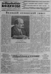 I \ \ ь Пролетарии, всех' стран, соединяйтесь! ыШте^иеЯскЬе КОЛХОЗЫ Орган Северного РК ВКП(б) и районного Совета депутатов трудящихся Новосибирской области М» 33 (1434) ■ I ВТОРНИК, 22 АПРЕЛЯ 1952 года | Цена 10 коп. ПОМНИТЕ, любите, изучайте Ильича, нашего учителя, нашего вождя. Боритесь и побеждайте врагов, внутренних и внешних,— по Ильичу. Стройте новую жи!нь, новый быт, новую культуру , — по Ильичу. Никогда не отказывайтесь от малого в работе, ибо из малого строится великое— в этом один из важных заветов Ильича. И. СТАЛИН. Великий ленинский завет В. И. ЛЕНИН 22 апреля 1870 года родился Владимир Ильич ЛЕНИН этом свидетельствует вся и л н с и о т - з о п м р о а и л я и в ти н ч с а е т ш с р к о е и й и й тел с ь т с с р о т а ю в н а з е. со В р ц о а и б е а н о чих и крестьян способствовал победе Красной Армии над Д зя е й н с и т к в и е н н ы н м ое и К с о о л тр ч у а д к н о и м ч . ест Х в о о м м сп е а е ж ч в д и у л н о г а о ш р п о е о д й с о т м р с о т е р и н ан и д е е е . ре с в о н ц е и й ал о и бе з ю ва з р н В я о ы м ст 1 с у 9 ъ п 2 е а 4 з я де н [С г а о о д в В а е т т о о п р в о ом 2 п В 6 о с в е я о с н д о у р л см и и щ е к р и т й С и т в а В о л ж и . д н ь И. г и ов Л о е р н у и ч и л и н : т а е , ль наш тов в а е «Уходя от нас, товарищ Ленин завещал нам укреплять всеми силами союз рабочих и к ва р р е и с щ тья Л н е . н К ин л , ян ч е то мс м я ы с те ч б е е с , ть т ю о в в е ы С д п о ь о в !» л ет н с и к м ий и на э р т о у д п т од вою руко з в а о п д о ством большевистской партии, товарища Сталина неуклонно выполняет великий ленинский завет об укреплении союза рабочих и крестьян. Рабочий касс СССР помог с п о и в т е ь тск н о а м п у ут к ь ре к с р т у ь п ян но ст г в о у к в о с л т л у е^ ктивного социалистического с ельского хозяйства. Победа колхозного строя сделала союз рабочих и крестьян еще более прочным. Был ликвидирован самый с с п тр л а у н ат е— ато к р у м с л н к а о и ч г й е о с ч т к и в л с о л а . е с н с С н о в ы ве й н т а с ш ка е э я й к в ч н л е о а с й с к т у и ь ю ж п б и о а з л н з у у е ч н и н в л о а сам н с о е о й о ц б и х а о о л д б и и ш с м т и о и й р области народного хозяйства— в ш ра е л с й е ь л н с ь о т с - р п к а о о н м л е ити хо у ч т з е в я с е к й р о с д е т и в л е е о . д с и ь В нст м в н о о а всего общества. лен С н о о ц с и ть алис с т н и а ч б е ж с а к е а т я п се р л о ь м с ы к ш ое х ш о и з н я а й м ст и в . о п С е о р в в е о т к с л к а и с е сным у и чен м ы ае п ж е е р н Н е и д е я а р ю аз а т р г ы р к о в о н н л о ы х м о й и зн ч с е и о с к ю к а о з м й ра н б д а о о у ч с к т е и г и о . к ст л в а а сса яви и л к ся олхо о з с н н о о г в о ой кре п с о т б ь е я д н ы советского народа в Великой Отечественной войне. С помощью рабочего класса к в н и о о д в лх и ан л о о з но но к е о р р к а о р з т е о к с р и т е ь й н я н н с о с р е т о в к о в в о о в с й ст н н а о е й сельское хозяйство. На наших глазах выполняется великий л н т с ю т а и а ^ я л к в и р Д п н е р а с с г и т к о р ь и й о я й , д н ы и п . с н л п а а В а н — с е т к н и о п а в р п е у е о ч р о и н о б т а ж р ь я а а з й м з о е в е м о ч а т губительных ществляется бла с г у о х д о ар в я еев о — гр о о с м у - [ ной помощи государства, со-' цпалистпческой нос П т р и е . образилась п н р е омы т ш о л л е ь н к о э в к е о тс н к о о м й ика, де н р о ев и ни к . уль В тур н а аш со ей стране крестьянин не имеет т н к е а ы п м е и р , ь к з у а н л б и и а ч т к е ы а г , м о к р а о а к б б и щ о м м его бы п с л оме т к щ е р м и е с в с с к я т о о ь л й я ю и н ц и п и н о и , с д о о ц с и е 