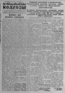 Пролетарии всех стран, соединяйтесь! ЗйМшие&ис/пскЬе КОЛХОЗЫ Орган Северного РК ВКП(б) и районного Совета депутатов трудящихся Новосибирской области № 49 (1450) 1 ЧЕТВЕРГ, 19 ИЮНЯ 1952 года [ Цена 10 коп. Выполнить план колнхгоозстроительства Строительство в колхозах, особенно на современном эта пе колхозного движения, при обретает первостепенное зна чение. Теперь, при укреплении артелей, немыслимо без типо вого п широкого строитель ства успешно развивать об щественное животноводство, применять механизацию п электрификацию, сохранять богатые урожаи, полностью удовлетворять бытовые и куль турные запросы колхозников. В колхозах нашего района на 1952 год намечена боль шая и ответственная програм ма строительства животновод ческих и производственных помещений, значительно рас ширяется производство.' мест ных строительных материалов. Для выполнения этого ответ ственного плана мы имеем все возможности. Наше Советское государство оказывает огром ную помощь кредитами на строительство и механизацию, каждый колхоз имеет свои лесные дачи и полностью обеспечен лесоматериалами на местах, каждая артель распо лагает мощной техникой, кол хозники горят желанием по строить добротные типовые помещения в своих артелях. Ряд колхозов района, пони мая всю важность строитель ства, создали работоспособные постоянные строительные бригады и организовали их бесперебойную работу. Уже в этом году построены "электро станции в колхозах «Заря коммунизма», «Память Ленина» «Память Кирова», «Вторая пятилетка», «Новый путь», имени Калинина. На днях за канчивают строительство элек тростанций в колхозах имени Жданова,«Красный Октябрь», им. Крупской. Построены и сданы в экенлоатацпю радио узлы в колхозах «Заря ком мунизма» и им. Молотова. В колхозе имени Калинина (бригадир строительной брига ды тов. Лисов) уже со оружено помещение типового телятника на 95 голов, успеш но выполняется план стро ительства. Здесь заготовлено более 20 тыс. штук красного кирпича, 40 тыс. штук фин ской стружки. Сейчас в этом колхозе при кирпичном заводе оборудован механизированный станок с большой производи тельностью, с приводом от локомобиля. Хорошо работает строительная бригада в колхо зе «Украинец» — инициатор районного соревнования стро ительных бригад. Быстрыми темпами развернуто строитель ство типовых зерносушилок в колхозах имени Маленкова и имени 7-го съезда Советов. Но не все правления кол хозов и их председатели, пар тнГшый и советский актив па местах по-серьезному занима ются вопросами строитель ства. Нот, например, колхоз «Путь Сталина» (председатель правления т. л ушов и его заместители тт. Залиппа и Егоров), где из года в год срывают план строительства, однако выводов из этого до сих пор не сделано. Б про шедшем году был заложен свинарник в деревне Мало-Ка- рагаевка, но до сих пор стро ительство не закончено: стоят голые стены. Телятник в де ревни Ичкала и коровник в деревни Еергуль также ше* до строены. Б деревни Мало-Ка- рагаевка уже третий год по вине т. Залиппа стоит без дей ствия и портится колхозная пилорама, за которую упла тили 19 тыс. рублей. Имею щиеся два кирпичных завода в этой артели не работают, а колхозу доведен олыной план производства местных строи тельных материалов. Правле ние колхоза формально вы делило лишь людей в состав строительной бригады, кото рая факти