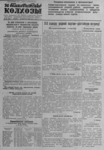 Пролетарии всех стран, соединяйтесь! КОЛХОЗЫ Орган Северного РК ВКП(б) и районного Совета депутатов трудящихся Новосибирской области _ № 6 9 П 1 4 7 0 ) | ЧЕТВЕРГ. 28 АВГУСТА 1952~года | Цена 10 коп Ко всемколхозникам и колхозницам, механизаторам и специалистам сельского хозяйства, ко всем трудящимся района ОБРАЩЕНИЕ участников митинга трудящихся районного центра Товарищи колхозники и колхозницы, трактористы и комбайнеры, рабочие и интеллигенция! ч ст е а с 5 к н о о й о в к к т е п я , а б р ^ р т к я н о п г в д н а а э ш то е м н й а г ш с о т а д р у ан с с ы т о р . з а ы н С в а ъ а е е з т и д ся о б д у X д I р е X у т ко с п в ъ р о е о д з х с д о т д в К и о т о м ь мму в п н а и р с о т ти б и и Ленина—Сталина вступила на путь постепенного перехода от социализма к коммунизму. Громадным шагом вперед к к т о о м р м о у й н д и о з с м ти у гн я у в т и ы лас г ь ран 4 д -я иоз с н та ы л е ин у с с к п а е я хи пяти в лет х к о а зя , й в ств г е о н д но ы м ко и культурном строительстве. ти З и а п д о ач и и я , ти п л о е ст т а н в е л м е у нн п ы л е ану в п го р в о о е р к я т т е д о ир то е м к , тив ч X т I о X с в ъ ы е п з о д л а не п н а и р е и м х у М—з ы н к ач п к н р о т и м е з л м ы н у в о н а и е п м зм ри у в . б с л е и х зи т т ру н д а я ш щ у ихс с я тра р н а у йон к а с о в з е н т а л м о е м н у ова б т у ь ду 5 щ -о е е о в н к е ы н т м и я е б и м р т я р и —уд д п о е е в н р ы е ь м вы и с п о у з о ы с л п н в е е а х н а и X м е I м и X н п с а р ъ о е и в з з с д в е а о х д н с а у т ш ч в а е е с й н т н к р ы а о х х дно п р л й а а б н п о о т а в р , . тии вып н о о л В ближайшие дни н без потерь закончить уборку урожая, к 15 сентября выполнить план хлебопоставок государству, в сентябре рассчитаться с государством по всем видам поста- ^ вок продуктов жчшотноводства. На высоком агротехническом уровне провести сев озимых. * В целях повышения урожайности всех сельскохозяйственных л в к и о у т т л К н ь ь о т в з 5 у о а р г д о , о с к т т з т о в а я в а г б , к о р у т д я о о к в б в и о ы р и т в м ь п а о о я в л з с н я ь д б и о ь т п ь о п н в о п а ы л л н ш в а о е е н г с н о ь р и а я п в з в ы л и а п е т н о г и о л я с н е е о в н п б а и р щ о я 1 е д 9 с у т п 5 к в 3 л т е а н и н г в н а о н о . д г о о а с , т и У . ж с и и щен Ш и и й р , о к к о о лх р о а з зв н е ы р х нут э ь лек с т т р р о о с и т т а е н л ц ь и с й тво и ж ра и д в и о о т у н з о л в о о в д . чес В ких ка п ж о д м о е м к с о к л ох х о о з з я е йс з т а в ве е р н шно и г т о ь п м р е о х и а з н в и о з д а с ц т и ва ю . трудоёмких процессов сель Труженики колхозных полей! д г п о а о д п л ы н а . е р н т и нп я п з о а п д я а т ч и , д п е о тн ст е а м в у ле п н л н а ы ну х р в аз п в р и о т е и к я те С Е С д е С и Р р п е н о к ж а т а 1 и л 9 в е X 5 е 1 м IX — с 1 с и 9 ъ л 5 е 5 з д ля вы Под знаменем Ленина, под водительством Сталина— вперед, к победе коммунизма. МИТИНГ В ЧЕСТЬ СОЗЫВА XIX СЪЕЗДА КОММУНИСТИЧЕСКОЙ ПАРТИИ 25 августа в районном Доме культуры состоялся митинг трудящихся районного центра. С сообщением об открытии 19 с т ъ ии езд и а о Ком з м а у д н а и ч с а т х и , ч н е а ск м о е й чен п н а ы рх л д в ш ы е е т п й н р в е о ы с м е т с у к р т т а у а п н п х ы л и а л д н н и у с а р е е к 1 к р 9 т р е 5 и а т в 1 з а в — р п и ь т о 1 и 9 р я 5 а п 5 й я к г т н о о и а ма партии т. Коробейников. Он призвал трудящихся к самоотверженному труду, к с д к о о с й той д н ат ойы. С приветс в т с в т е р н е н ч ы е ми ис с т л о о р в и ам че и от предприятий и учреждений, р с п о о т о и м в л а о к и , л ол ь Б ц л т е е е т р в к . е т з - и ц о в в о м К с в