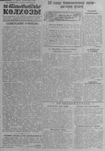 Пролетарии всех стран, соединяйтесь! ыШшие^истШ/е колхозы Орган Северно го Р К БНП (б ) и районного Сове та деп у та тов тр уд ящ и хся ’ Новосибирской области № 70 (Т471~)~ 1 ВОСКРЕСЕНЬЕ. 31 АВГУСТА 1952~годгГ | Цена 10 коп СОВЕТСКИЙ УЧИТЕЛЬ Ведущая п решающая роль в воспитания подрастающего поколения принадлежит учи телю. Это—огромное доверие, которое возлагает на учителя великую 'ответственность. Советский учитель является непосредственным проводни ком политики коммунистиче ской партии исоветского госу дарства в области народного образования. Это боец много численной армии работников идеологического фронта. Они призваны воспитывать муже ственных и стойких людей, владеющих основами наук, высоко идейных и культур ных, умеющих преодолевать любые трудности, беспредель но преданных своей Родине, партии Ленина—Сталина, спо собных завершить построение коммунизма в нашей стране ?■) % Для того, чтобы оправдать высокое и почётное звание учителя, советское учитель ство должно обладать высоки ми морально-политическими качествами и высокой куль турой. Учебно - воспитатель ная работа шыколы зави сит от уровня сознательности учителя, его идейной убеж денности, от понимания им политики советского государ ства п своего долга перед' страной, перед народом. Без знания предмета или при слабом его знании учитель не будет иметь успеха. Он должен постоянно совершен ствоваться в своём пред мете, знать качество учеб ников, быть специалистом своего дела,повышать система тически деловуюквалификацию. Чем выше знания учителя, тем выше его авторитет в глазах учащихся, тем силь нее его влияние на них. Сре ди учителей нашего района систематически повышают идей ный уровень и квалификацию .тт.Копылов И.Е.(директор ГТово- Тропцкой семилетней школы), БеловаУ.И.(учительница Боль ше-Куликовской семилстпей школы), Чалков Е. А. (дирек тор Остяцкой ( Ч МП Л С Т ШГ : школы). В учебно-воспитательной ра боте недопустимы шаблон, ру тина, трусость мысли и сле пое подражание, недопустимо применение одних и тех же методов, одних и тех приемов. Советский учитель должен проявлять творческую инициа тиву, пытливость, смелость .и неустанно искать новые пути совершенствования педагоги ческой работы. Учитель дол жен брать все лучшее от на рода, жизни, науки и это луч шее отдавать детям. Важнейшим средством повы шения идейного уровня являет ся овладение марксистско-ле нинской теорией. М, И. Кали нин постоянно призывал . со ветских учителей глубоко изу чать марксистско-ленинскую теорию. Причём’, изучать не по книжному, а на основе сочетания теоретичёских зна ний с практической деятель ностью. Советский учитель должен иметь моральный вес н моральное значение в соци алистическом государстве. Чтобы правильно воспиты вать детей и юношество учи- •теля сами должны быть вос питаны. Решающее влияние на формирование сознания, характера детей и юношества оказывает личность учителя, его мировоззрение и поведе- * ние. Советские учителя дол жны быть людьми высокооб разованными. Особенно боль шое значение М. И. Калинин придавал таким качествам учителя, как честность п не подкупность. Основой успешного обуче ния является п хорошее зна ние преподаваемого предмета. Но нельзя добиться Серьез ных успехов в обучении и воспитании детей и молодёжи, если сам учитель будет с узким кругозором, с низкой культур