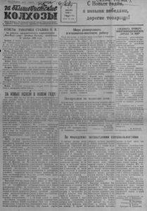 Пролетарии всех стран, со колхозы Орган Северного РК Коммунистической партии Советского Союза и районного Совета депутатов трудящихся Новосибирской области ЯНВАРЯ 1953 г. №|-g(1506) Цена 20 коп. t НоВшггодом,— с новыми победами, дорогие товарищ? ? i ОТВЕТЫ ТОВАРИЩА СТАЛИНА И . В. на вопросы дипломатического корреспондента „Нью-Йорк тайме“ Джеймса Рестона, полученные 21 декабря 1952 года л в и ой Во В п а ы д р м о е и щ с н . ё ис В т с р в а м о ц е о и г м и ё о н в у т б С н еж о а е с д д т е и у н п н и л ё я н ен н о и ы я х том Ш~ н 7 о т в а о т ч г а о т х о , год С п а о р ю и и з де п р р ж С и и о х в в о а е д е т а т с е к с н и ь о х Социалистических Республик и Соединённые Штаты могут в предстоящих годах жить мирно? н н е ы и м О з и т бе в Шж е н т т о а . т й Я а , м ч и п т р о о А д м н о е л а р ш ж и а и к ю и ст и в р е а р С н и ы о т в ь е м , т о с ч к г т у и о т м и в С о о й в ю н п з у р о е м д м ь е н ж ж ел д и ь у т з ь я С в о с е чи д м и т и а н р т ё е ь н . Вопрос. Где по Вашему мнению, источники современного международного напряжения? Ответ. с С и о в в н ет ы с е ко д го ейс С т о В в ю е и з з я д а е . пол и ит в и о ки всё « м хо , ло г д д н е ой то в л о ь й к н о ы», пр в о е я д в о л м я о ю й тс п я рот а ив гресВопрос. р г д о а л в л я о о р м р ы а Э сс с й м з о е п т н р р х е е а д н у П с и э т р р я а и о в в м и в е о т т е з п с м л о т я о в м ж о в и в н о а о п л с н р и т о о и с в у о л й в и о с а б т д б р м е ы о и ч с и н л В и а ы б ст л м р е д е а н и ж ц и п д и и л у и ом м а е Э В т ж и й а д ч з м у е е н с н и а к х и р и а о е у г д э е н р н п о а е е рего напряжения? Ответ. Я отношусь к такому предложению положительно'. Вопрос. Будете ли Вы сотрудничать в каком либо новом д н и е п ц ло в м о а й т н и е че в ск К о о м ре м е е ? роприятии, имеющем целью положить коОтвет. сован в ликви Я дац со и г и ла в с о е й н ны со в тр К у о д р н е и е ч . ать, так¿как СССР заинтереЗА НОВЫЕ УСПЕХИ В НОВОМ ГОДУ! Ш и р е р а з в е р т ы в а т ь а г и т а ц и о н н о - м а с с о в у ю р а б о т у л п и ех к З о и а в х ко в н т о р ч у в е д н с о е в х 1 ы 9 х 5 о 2 т п р г а о о б с д е л , я д х г и од п у р в с о е з с м я т ы в й ш о с м т л в ен а п . н ар о П с ти т о и д и м Л и е уд н р и с ы н ел а м — ьск р С о у т к г а о о л в и о х н д о а наш народ вписал в историю ещё одну славную страницу. XIX съезд б ск о о т й ы п за арти и и ст п ек о ш дв и ё К й л омм и п у т е н о р г и и и с о т д и р ч а и е наметил грандиозные задачи на новое пятилетие. Трудящиеся советской страны с огромным воодушевлением восприняли д н и у ре и кт в ивы отв п е о т пя н т а плет ст н а е л м и у н п ск л у аю з н н а о о б е в о а т н у и с е р о . а ц з и в а е л р и н с у т л и и чес н к о о в е ое, с м о о р щ ев Вместе со всем советским народом большой трудовой в г к о ла р д ай в о н н е а с . ли До т с р р у о ж чн е о ни в к ы и по н л а н ш е е н план хлебозаготовок, ряд к ш о е л в х а о » з , ов « , В к т а о к рая «Пам п я я т ти ь ле К т у к й а» бы и д д в а о р р к у с г т и п в е р о о м ду р к п а т о с о с в ч в и с ж т ем а и л в и о в т с и ь н д о а в м с од п с о г т с о в т с а а у . л С к к е о е е н л л л к х ь » о о х , в з о ы а з и а м р и . т Б « е о ЖП л л и у д ь т а ш ь н е « о к - К в К с р а о у , а л ц с и и н к а ы н л о м й в и . с з к м о у ф М г » о а , а сельсовета рассчитались по поставкам молока.В результате успешного с т п о е во ч к или ма с с в л е о р за х в п п о л р д а о ы н в о е р в д а о е й е н о и н я а пр з о о а б и г е з о водстве масла. н бо ов М т ал и с н я у н в о шш и и р й о э к л 1 и е 9 к м 5 т 2 р р и а г ф з о м и д к а а х о ц о з и м н и а р 
