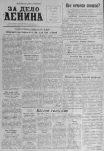 2 „ З А ' Д Е Л О Л Е Н И Н А " 2 5 июня 1 9 6 5 года ПАРТИЙНАЯ ГРУППА И ПРОИЗВОДСТВО Д е р е в н я У к р а и н к а , п о ж а л у й , с а м а я о т д а л е н н а я от р а й о н н о г о ц е н т р а . Но э т о н е з а х о л у с т ь е . З д е с ь к л ю ч о м б ь е т о б щ е с т в е и н а я ж и з н ь . I I в с е м у г о л о в а — п а р т и й н а я г р у п п а . П а р т г р у п п о р г А н а т о л и й П а в л о в и ч Г л а м а з д и н о ч е н ь з а г р у ж е н р а б о т о й в ш к о л е —о н и з а в е д у ю щ и й , и у ч и т е л ь . ; Д е л в с е г д а м н о г о . А к о м м у н и с т ы и з б р а л и е г о с в о и м в о ж а к о м , з н а ч и т н а д о в ы к р а и в а т ь в р е м я и н а о б щ е с т в е н н у ю д е я т е л ь - н о с т ь . И А н а т о л и й П а в л о в и ч „ в ы к р а и в а е т " : р е г у л я р н о , р а з в м е с я ц , а и н о г д а и д в а р а з а , к о м м у н и с т ы с о б и р а ю т с я в м е с т е , ч т о б ы о б с у д и т ь д е л а в б р и г а д е . Т о н е п о л а д к и н а ж и в о т н о в о д ч е с к о й ф е р м е , т о в п о л е . К о м м у н и с т а м обо в с е м н а д о п о с о в е т о в а т ь с я , к о л л е к т и в н о о б с у д и т ь , к а к у с т р а н и т ь н е д о с т а т к и , к а к л у ч ш е н а л а д и т ь р а б о т у . К о м м у н и с т ы т р у д я т с я н а в с е х о с н о в н ы х у ч а с т к а х п р о и з в о д с т в а . Н а п р и м е р , с к о т н и к о м - п а с т у х о м д о й н о г о г у р т а р а б о т а е т М. I I . Л а х т ю к , с к о т н и к о м - п а с т у - х о м н а г у л ь н о г о г у р т а —е г о б р а т П . П. Л а х т ю к , з а в е д у ю щ и м м о л о ч н о т о в а р н о й ф е р м о й И . С . К о с с . А н т о н М и х а л ь ч у к , Г р и г о р и й З а л и п п а , М и х а и л М и х а л е в и ч —т р а к т о р и с т ы и т . д . П о э т о м у - т о к о м м у н и с т ы х о р о ш о з н а ю т , г д е к а к и е н е д о с т а т к и , ч т о м е ш а е т , в ч е м п р и ч и н а . Т а к и м о б р а з о м п а р т г р у п п а п о в с е д н е в н о , к о н к р е т н о в л и я е т н а п р о и з в о д с т в е н н ы е д е л а б р и г а д ы . И н а д о с к а з а т ь , ч т о м н о г о г о д о б и л а с ь . З и м о в к у с к о т а б р и г а д а з а к о н ч и л а о р г а н и з о в а н н о , с в ы с о к и м и н а д о я м и . С е й ч а с к о р о в п а с у т к р у г л ы е с у т к и , о н и о б е с п е ч е н ы х о р о ш и м и в о д о п о я м и и м и н е р а л ь н о й п о д к о р м к о й . С у т о ч н ы й н а д о й н а к о р о в у с о с т а в л я е т 9 л и т р о в . Д л я у с л о в и й У к р а и н к и —э т о х о р о ш и й п о к а з а т е л ь . У с п е ш н о п р о в е л а б р и г а д а и в е с е н н и й с е в . Б ы л а р а з в е р н у т а п о д л и н н а я б о р ь б а з а в ы с о к о е к а ч е с т в о п о л е в ы х р а б о т , п р а в и л ь н у ю з а д е л к у с е м я н . С е й ч а с п о с е в ы д а л и д р у ж н ы е в с х о д ы . М о ж н о с у в е р е н н о с т ь ю с к а з а т ь , ч т о у р о ж а й б у д е т . П а р т г р у п п о р г т . Г л а м а з д и н н е з а б ы в а е т о в о с п и т а т е л ь н о й р а б о т е с к о л х о з н и к а м и . Он м н о г о в ы с т у п а е т с д о к л а д а м и и л е к ц и я м и , о р г а н и з у е т к о н ц е р т ы х у д о ж е с т в е н н о й с а м о д е я т е л ь н о с т и . Б о л е е т о г о , А н а т о л и й П а в л о в и ч в к а н и к у л я р н о е в р е м я и д ё т в н о л е ' и б е р е т в р у к и в и л ы , п о к а з ы в а я п р и м е р " д о б р о с о в е с т и о г о т р у д а . И. Л у н ь я н ч у н , и н с т р у к т о р р ай к ом а КПСС. П Е Р В ы И Р О Д И Т Е Л Ь С Н И Й С Ъ Е З Д Н а д н я х с о с т о я л с я п е р в ы й р о д и т е л ь с к и й с ъ е з д р а й о н а . Н а с ъ е з д е п р и с у т с т в о в а л и б о л е е 200 ^ л е г а т о в —р о д и т е л е й у ч а щ и х с я ш к о л , п р е д с т а в и т е л е й п а р т и й н ы х , п р о ф с о ю з н ы х * и д р у г и х , о б щ е с т в е н н ы х о р г а н и з а ц и й . Д о к л а д о к о м м у н и с т и ч е с к о м в о с п и т а н и и д е т е й в с е м ь е и ш 