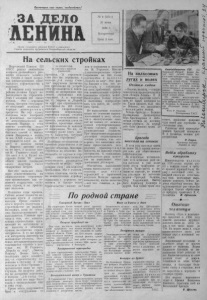 ЗА ДЕЛО ЛЕНИНА О р г а н С е в е р н о г о р а й к о м а К П С С и р а й о н н о г о С о в е т а д е п у т а т о в т р у д я щ и х с я Н о в о с и б и р с к о й о б л а с т и № 6 (2711) 2 7 И Ю Н Я 1965 Г. Во с к р е с е н ь е Ц е н а 2 коп. На сельских стройках М а р т о в с к и й П л е н у м ЦК К П С С р е ш и л в а ж н е й ш и е в о п р о с ы д а л ь н е й ш е г о р а з в и т и я с е л ь с к о г о х о з я й с т в а . Р е ш ё н и т а к о й в о п р о с , к а к ф и н а н с и р о в а н и е к а п и т а л ь н о г о с т р о и т е л ь с т в а в к о л х о з а х . В т е к у щ е м г о д у к о л х о з ы р а й о н а д о л ж н ы б у д у т и з р а с х о д о в а т ь н а с т р о и т е л ь с т в о 1 м и л л и о н 100 т ы с я ч р у б л е й . Это — о г р о м н а я с у м м а , к о т о р ую г о с у д а р с т во о т п у с к а е т " к о л х о з а м в п о р я д к е д о л г о е р о ч н ы х к р е д и т о в . Н а э т у с у м м у к о л х о з а м н ад о п о с т р о и т ь 4 р е м о н т н ы х м а с т е р с к и х , 18 ж и в о т н о в о д ч е с к и х п о м ещ е н и й . Н а р я д у с этим м н о г и е х о з я й с т в а в е д у т с т р о и т е л ь с т в о к у л ь т у р н о - б ы т о в ы х з д а н и й и ж и л ы х д ом о в . Н а п р и м е р , в к о л х о з е им . X X U с ъ е з д а КПСС с о о р у ж а е т с я к л у б н а 200 м е с т , в к о л х о з е имени К . М а р к с а — д е т с к и е я с л и н а 50 м е с т , в к о л х о з е и м е ни М. Г о р ь к о г о —к л у б на 150 м е с т и т . д . Б у д е т п о с т р о е н о б о л ее 30 домов, о бщ е й ж и л о й п л о щ а д ь ю около п о л у т о р а т ы с я ч к в а д р а т н ы х м е т р о в . Всё э то н а л а г а е т б о л ь ш у ю о т в е т с т в е н н о с т ь н а м е ж к о л х о з н у ю с т р о и т е л ь н у ю о р г а н и з а ц и ю , к а к осно в н о г о п о д р я д ч и к а с е л ь с к и х с т р о е к , и н а п р а в л е н и я к о л х о з о в . П о л о в и н а г о д а п р о ш л а . С е й ч а с м ожно п о д в е с т и н е к о т о р ы е и т о г и и с д е л а т ь в ы в о д ы . П р я м о с к а ж е м — и т о г и п е р в о г о п о л у г о д и я в с т р о и т е л ь с т в е не р а д у ю т . В о - п е р в ы х , п л а н по о с в о е нию к а п и т а л о в л о ж е н и й не в ы п о л н я е т с я . Г л а в н а я п р и ч и н а в т ом , ч т о м е ж к о л х о з н а я с т р о и т е л ь н а я о р г а н и з а ц и я н е з а г о т о в и л а и не в ы в е з л а к о б ъ е к т а м н у ж н о е к о л и ч е с т в о с т р о й м а т е р и а л о в . В то ж е в р е м я э т и м а т е р и а л ы з а в е з е н ы н а н е п л а н о в ы е о б ъ е к т ы . О со бенно н е у д о в л е т в о р и т е л ь н о с н а б ж а ю т с я с т р о й к и в к о л х о з а х им. М. Г о р ь к о г о , „ Б о р ь б а з а м и р “ , „ З а в е т ы И л ь и ч а " . Б о л е е т о г о , в п о с л е д н и х д в у х х о з я й с т в а х —к с т р о и т е л ь с т в у к о р о в н и к а в О с т я ц к е и з е р н о с к л а д а в Н о в о - Т р о и ц к е — о р г а н и з а ц и я д а ж е н е п р и с т у п и л а . Не в е д у т с я р а б о т ы по д о с т р о й к е к о р о в н и к а в к о л х о з е „7-й с ъ е з д Со в е т о в " , х о т я е г о н а д о было с д а т ь в э к с п л у а т а ц и ю ещ е в 1964 г о д у . К р о м е э т о г о , д о п у с к а ю т с я б р а к и о т с т у п л е н и я от и . Ш О Л О Х О В , гл. и н ж е н е р - с т р о и т е л ь у п р а в л е н и я п р о е к т о в . В с т р о и т е л ь с т в е того ж е к о р о в н и к а в к о л х о з е „ 7 - й с ъ е з д С о в е т о в " н а р у ш е н ы т е х н и ч е с к и е т р е б о в а н и я по у с т р о й с т в у ф у н д а м е н т о в и в е н т и л я ц и и , не п р о и з в е д е н а и з о л я ц и я д е р е в я н н ы х к о н с т р у к ц и й . А в к о л х о з а х им. К. М а р к с а и „ Б о р ь б а з а м ир" п р и с т р о и т е л ь с т в е т е л я т н и к о в н а 200 го л о в к а ж д ы й г и д р о и з о л я ц и я выпоЛнена н е п р а в ил ьн о , к и р п и ч н а я к л а д к а столбов в е д е т с я с о т с т у п л е н и е м от п р о е к т а , р а с ш и в к а ш в о в не д 