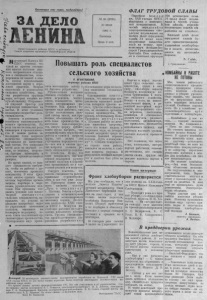 ЗА ДЕЛО № 20 (2725) 30 ИЮЛЯ 1965 Г . П я т н и ц а Ц е н а 2 коп. О р г а н С е в е р н о г о р а й к о м а К П С С и р а й о н н о г о С о в е т а д е п у т а т о в т р у д я щ и х с я Н о в о с и б и р с к о й о б л а с т и П а р т к о м к о лх о з а им. XXII с ъ е з д а КПСС в Ы с т у п и л с и н т е р е с ной и н и ц и а т и в о й . Б ч е с т Ь п е р е д о в и к о в с о ц с о р е в н о в а н и я е ж е д н е в н о п о д н и м а ю т на м а ч т е ф л а г т р у д о в о й славЫ. 2 4 июл я а л о е п о л о т н и щ е з а п л е с к а л о с ь на в е т р у , п р и в е т с т в у я Же нщин - ко - с а р е й Г р а ж д а н ц е в с к о й б риг а дЫ. Они н а к о с и ли и с м е т а л и в р у ч н у ю Ма р т о в с к и й П л е н у м ЦК КПСС о тме т и л , что о дной из п р и ч и н о т с т а в а - н и я м н о г и х к о л х о з о в я в и - ^ \ л о с ь н е п р а в и л ь н о е о т н о ш е - ^ н и е к с п е ц и а л и с т а м , и г н о - ^ р и р о в а н и е и х з н а н и й и опы- т а , п л о х о е и с п о л ь з о в а н и е ф д о с т и ж е н и й н а у к и и п е р е д о в о й п р а к т и к и . В с к р ы в н е д о с т а т к и в р у к о в о д с т в е с е л ь с к и м х о з я й с т в о м , п а р т и я р а з р а б о т а л а к р у п н ы е м ер ы , к о т о р ы е с о з д а ю т н о в у ю о б с т а н о в к у . О т к р ы в а е т с я ш и р о к и й п р о с т о р д л я т в о р ч е с к о й и н и ц и а т и в ы на м е с т а х . В э т и х у с л о в и я х н е и з ме р и м о в о з р а с т а е т р о л ь с п е ц и а л и с т о в . А г р о н ом и з о о т е х н и к — т е х н о л о г и с е л ь с к о х о з я й с т в е н н о г о п р о и з в о д с т в а . И х р о л ь т а к ж е в е л и к а , к а к р о л ь и н ж е н е р о в в п р о м ы ш л е н н о с т и . В н а ш е м р а й о н е з а п о с л е д н и е г о д ы в о з р о с л о к о л и ч е с т в о с п е ц и а л и с т о в , у л у ч ш и л с я и х к а ч е с т в е н - ^ н ы й - состав . Это п о з в о л я е т **4 в е с т и д е л о н а н а у ч н о й о с нове, со з н а н и е м , т в о р ч е с к и , б ы с т р е е п р и в о д и т ь в д е й с т в и е п р о и з в о д с т в е н н ы е р е з е р в ы . Но к р оме з н а н и й , от к а ж д о г о с п е ц и а л и с т а т р е б у е т с я , ч т о б ы он р а б о т а л с д у ш о й , п о с т о я н н о п р о я в л я л и н и ц и а т и в у . В этом п р е д с т о и т мно г о е с д е л а т ь п е р в и ч н ы м п а р т и й н ы м о р г а н и з а ц и я м , п а р т бюр о и п а р т комам, р у к о в о д и т е л я м к о л х о з о в . Они п р и з в а н ы с о з д а в а т ь у с л о в и я д л я п л о д о т в о р н о й д е я т е л ь н о с т и с е л ь с к и х с п е ц и а л и с т о в , н а п р а в л я т ь и х у с и л и я н а р е ш е н и е к о н к р е т н ы х з а д а ч п о у к р е п л е н и ю э кон оми к и к о л х о з о в , о к а з ы в а т ь им в с е м е р н у ю п о д д е р ж к у , п о мочь с т а т ь п о д л и н н ы м и о р г а н и з а т о р а м и п р о и з в о д с т в а . О д н о в р е м е н н о н а д о п р о я в - Повышать роль специалистов сельского хозяйства 7 0 0 ц е н т н е р о в с е н а . 2 5 и ю л я ф л а г п о д н и м а л и в ч е с т Ь у ч е н и к ов школЬц п е р е в ы п о л н я ю щ и х нормЫ выр а б о т к и н а с е н о к о с е . К а ж д ы й д е н Ь ф л а г т р у д о в о й с ла вЫ б у д е т п р и в е т с т в о в а т ь у д а р н и к о в х л е б о у б о р ки и л ю д е й , о т л и ч и в ш и х с я на з а г о т о в к е к о р м о в . Б. СмЫк, с е л ь к о р . с. Г р а ж д а н ц е в о . п . Иг н а т о в о й и й, с е н р е т а р ь р а й н о м а Н П С С л я т ь п о с т о я н н у ю з а б о т у о и х бытовом у с т р о й с т в е . ' Р у к о в о д и т е л и к о л х о з о в о б я з а н ы с ч и т а т ь с я с мн е ни е м а г р о н омо в , з о о т е х ни к о в , э к о н о м и с т о в , м е х а ни к о в , в е т е р и н а р н ы х р а б о т н и к о в . Н а д к а к и м и в о п р о с а м и н а д о р а б о т а т ь , к а к л у ч ш е и с п о л ь з о в а т ь к а ж д ы й г е к т а р з е м л и , к а к п р а в и л ь н о , о б о с но в а нно с о с т а в и 