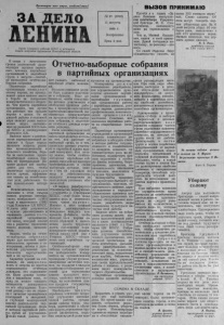 ЗА ДЕ Л О № 27 ( 2 7 3 2 ) 15 а в г у с т а 1 96 5 г . В о с к р е с е н ь е Ц е н а 2 к о п . О р г а н С е в е р н о г о р а й к о м а К П С С и р а й о н н о г о С о в е т а д е п у т а т о в т р у д я щ и х с я Н о в о с и б и р с к о й о б л а с т и П р о ч ё л я в г а з е т е « З а д е л о Л е н и н а » в ы с т у п л е н и е к о м б а й н е р а У д а р н и ц - к о й б р и г а д ы М . Я . С л о - б о д ч и к о в а , в ы з в а в ш е г о м е н я н а с о р е в н о в а н и е с н и м . Ч т о ж , М а т в е й Я к о в л е в и ч , в ы з о в я т в о й п р и н и м а ю . Д а в а й п о б о р е м с я п о - ч е с т н о м у , п о - р а в н о м у — к т о к о г о . С о с в о е й с т о р о н ы б е р у о б я з а т е л ь с т в о с к о с и т ь н е В с в я з и с и с т е ч е н и е м с р о к о в п о л н о м о ч и й р у к о в о д я щ и х о р г а н о в п е р в и ч н ы х , ц е х о в ы х п а р т и й н ы х о р г а н и з а ц и й и п а р т и й н ы х г р у п п , в а в г у с т е — с е н т я б р е п р о в о д я т с я о т ч ё т н о - в ы б о р н ы е с о б р а н и я . П е р в и ч н ы е п а р т и й н ы е о р г а н и з а ц и и с о с т а в л я ю т о с н о в у п а р т и и , и м п р и н а д л е ж и т с а м о е в а ж н о е м е с т о в б о р ь б е з а п о с т р о е н и е к о м м у н и с т и ч е с к о г о о б щ е с т в а . Ч е м к р е п ч е п а р т и й н а я о р г а н и з а ц и я , ч е м л у ч ш е о н а р а б о т а е т , т е м с и л ь н е е п а р т и я в ц е л о м . О т и х у м е л о й р а б о т ы в о г р о м н о й м е р е з а в и с и т у с п е х в ы п о л н е н и я з а д а ч , в ы т е к а ю щ и х и з р е ш е н и й X X I I с ъ е з д а К П С С и п о с л е д у ю щ и х П л е н у м о в Ц К . В а ж н о е м е с т о в д е я т е л ь н о с т и п а р т о р г а н и з а ц и й з а н и м а ю т и б у д у т в п р е д ь з а н и м а т ь в о п р о с ы р а з в и т и я п р о м ы ш л е н н о с т и и с е л ь с к о г о х о з я й с т в а , б о р ь б ы з а в ы п о л н е н и е п р о и з в о д с т в е н н ы х п л а н о в . П а р т и я , е ё Ц е н т р а л ь н ы й К о м и т е т д е л а ю т в с ё н е о б х о д и м о е д л я т о г о , ч т о б ы п е р в и ч н ы е о р г а н и з а ц и и м о г л и л у ч ш е , э ф ф е к т и в н е е в л и я т ь н а х о з я й с т в е н н ы е д е л а , д е й с т в о в а т ь б о л е е п р а в и л ь н ы м и м е т о д а м и И с к л ю ч и т е л ь н о в а ж н о е з н а ч е н и е в э т о м с м ы с л е и м е ю т р е ш е н и я о к т я б р ь с к о г о , н о я б р ь с к о г о ( 1 9 6 4 г о д а ) и м а р т о в с к о г о ( 1 9 6 5 г о д а ) П л е н у м о в Ц К К П С С . В р е в е т е э т и х д о к у м е н т о в и н у ж н о р а с с м а т р и в а т ь и о ц е н и в а т ь д е я т е л ь н о с т ь п а р т и й н о й о р г а н и з а ц и и , т о т в к л а д , к о т о р ы й в н о с и т о н а в р а з в и т и е э к о н о м и к и с в о е г о к о л х о з а , п р е д п р и я т и я . В а ж н о , ч т о б ы н а о т ч е т н о - в ы б о р н ы х с о б р а н и я х ц а р и л д у х в ы с о к о й т р е б о в а т е л ь н о с т и , к р и т и к и и с а м о к р и т и к и , з а б о т ы о д а л ь н е й ш е м у л у ч ш е н и и д е я т е л ь н о с т и п а р т о р г а н и з а ц и й и и х о р г а н о в . Х а р а к т е р п р е н и й н а с о б р а н и я х , и х н а п р а в л е н - н о с т ь и о с т р о т а в о м н о г о м о п р е д е л я ю т с я о т ч ё т н ы м д о к л а д о м , е г о с о д е р ж а н и е м . Е с л и д о к л а д с о с т а в л е н в х в а л е б н о м т о н е , т о в р я д л и м о ж н о о ж и д а т ь а к т и в н о с т и к о м м у н и с т о в п о е г о о б с у ж д е н и ю . Х о р о ш и й д о к л а д — э т о н е с п р а в к а о к а ч е с т в е п р о в е д ё н н ы х с о в е щ а н и й и з а с е д а н и й , а г л у б о к и й в с е с т о р о н н и й а н а л и з д е я т е л ь н о с т и п а р т и й н о й о р г а н и з а ц и и , ф о р м и м е т о д о в п а р т и й н о й р а б о т ы , п у т е й е ё у л у ч ш е н и я . Т о л ь к о т а к о й д о к л а д м о Отчетно-выборные собрания в партийных организациях м е н е е 3 5 0 г е к т а р о в з е р н о ' в ы х . 