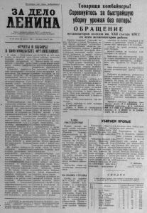 П р о л е т а р и и в с е х с т р а н , с о е д и н я й т е с ь ! З А Д Е Л О ЛЕНИНА О р г а н С е в е р н о г о р а й к о м а К П С С и р а й о н н о г о С о в е т а д е п у т а т о в т р у д я щ и х с я Н о в о с и б и р с к о й о б л а с т и № 2 9 ( 2 7 3 4 ) 2 0 а в г у с т а 1965 г. П я т н и ц а . Ц е н а 2 к о п . ОТЧЕТЫ И ВЫБОРЫ В КОМСОМОЛЬСКИХ ОРГАНИЗАЦИЯХ В с в я з и с [ " и с т е ч е н и е м с р о к о в п о л н о м о ч и й р у к о в о д я щ и х о р г а н о в к о м с о м о л ь с к и х о р г а н и з а ц и й , в а в г у с т е — с е н т я б р е п р о в о д я т с я о т ч ё т н о - в ы б о р н ы е с о б р а н и я . П е р в и ч н а я к о м с о м о л ь с к а я о р г а н и з а ц и я — о с н о в а к о м с о м о л а . Т а к з а п и с а н о в У с т а в е В Л К С М . И е й п р и н а д л е ж и т в а ж н о е м е с т о в п о с т р о е н и и к о м м у н и с т и ч е с к о г о о б щ е с т в а , в в о с п и т а н и и н о в о г о ч е л о в е к а , ч е л о в е к а к о м м у н и с т и ч е с к о й м о р а л и . О т ч ё т н о - в ы б о р н ы м к о м с о м о л ь с к и м с о б р а н и я м д о л ж н ы п р е д ш е с т в о в а т ь о т ч ё т ы и в ы б о р ы в ц е х о в ы х к о м с о м о л ь с к и х о р г а н и з а ц и я х и г р у п п а х . О т ч ё т н о - в ы б о р н ы е к о м с о м о л ь с к и е с о б р а н и я п р и з в а н ы м о б и л и з о в а т ь к о м с о м о л ь ц е в н а в ы п о л н е н и е р е ш е н и й п а р т и и и п р а в и т е л ь с т в а п о с о з д а н и ю м а т е р и а л ь н о - т е х н и ч е с к о й б а з ы к о м м у н и з м а , у ч а с т и ю в в ы п о л н е н и и г о с у д а р с т в е н н о г о п л а н а , р о с т у п р о и з в о д и т е л ь н о с т и т р у д а , л у ч ш е м у и с п о л ь з о в а н и ю в н у т р е н н и х р е з е р в о в . В х о д е п о д г о т о в к и и п р о в е д е н и я о т ч ё т н о - в ы б о р н ы х к о м с о м о л ь с к и х с о б р а н и й в ц е н т р е в н и м а н и я д о л ж н ы б ы т ь в о п р о с ы в ы п о л н е н и я к о м с о м о л ь ц а м и т р е б о в а н и й У с т а в а В Л К С М и р е ш е н и й м а р т о в с к о г о П л е н у м а Ц К К П С С . Н а о т ч ё т н о - в ы б о р н ы х с о б р а н и я х к о м с о м о л ь ц ы д о л ж н ы р а с с м о т р е т ь в с ю д е я т е л ь н о с т ь к о м с о м о л ь с к о й о р г а н и з а ц и и и о р г а н и з а т о р с к у ю , и в о с п и т а т е л ь н у ю р а б о т у — в с в е т е в ы с о к и х т р е б о в а н и й , п р е д ъ я в л я е м ы х к п е р в и ч н ы м к о м с о м о л ь с к и м о р г а н и з а ц и я м , к а ж д о м у к о м с о м о л ь ц у . В о в р е м я о т ч ё т о в и в ы б о р о в в ц е х о в ы х о р г а н и з а ц и я х н е о б х о д и м о о р г а н и з о в а т ь о т ч ё т ы к о м с о м о л ь ц е в о и х р а б о т е , о в ы п о л н е н и и о б щ е с т в е н н ы х п о р у ч е н и й , о п о в ы ш е н и и о б щ е о б р а з о в а т е л ь н о г о , п о л и т и ч е с к о г о и к у л ь т у р н о - т е х н и ч е с к о г о у р о в н я . Н а д о у д е л и т ь с е р ь ё з н о е в н и м а н и е р а б о т е с н е с о ю з н о й м о л о д ё ж ь ю , р о с т у р я д о в В Л К С М з а с ч ё т п е р е д о в ы х р а б о ч и х , к о л х о з н и к о в , и н т е л л и г е н ц и и . В а ж н о е м е с т о н а с о б р а н и я х д о л ж н ы з а н я т ь в о п р о с ы и д е о л о г и ч е с к о й р а б о т ы , п о в ы ш е н и я о т в е т с т в е н н о с т и к о м и т е т о в к о м с о м о л а з а к о м м у н и с т и ч е с к о е в о с п и т а н и е м о л о д ё ж и , з а о с у щ е с т в л е н и е н а д е л е п р и н ц и п о в м о р а л ь н о г о к о д е к с а , п о в ы ш е н и я а к т и в н о с т и к о м с о м о л ь ц е в . О т ч ё т н о - в ы б о р - н ы е с о б р а н и я д о л ж н ы с п о - : с о б с т в о в а т ь у л у ч ш е н и ю р а - ' б о т ы к р у ж к о в п о л и т и ч е с к о г о п р о с в е щ е н и я , л е к ц и о н н о й п р о п а г а н д ы , р а б о т ы а г и т а т о р о в , п о в ы ш е н и ю р о л и к л у б о в , б и б л и о т е к , с п о р т и в н ы х о р г а н и з а ц и й в в о с п и т а н и и