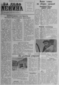 П р о л е т а р и и в с е х с т р а н , с о е д и н я й т е с ь ! ЗА Д Е Л О Н И М № 3 0 ( 2 7 3 5 ) 22 а в г у с т а 1 9 6 5 Г . В о с к р е с е н ь е Ц е н а 2 коп . О р г а н С е в е р н о г о р а й к о м а К П С С и р а й о н н о г о С о в е т а д е п у т а т о в т р у д я щ и х с я Н о в о с и б и р с к о й о б л а с т и Н Е П Р Е Р Ы В Н О У Л У Ч Ш А Т Ь б ы т о в о е о б с л у ж и в а н и е населения Выше темпы на уборке урожая! v Комбайнер Перцев держит слово З а п о с л е д н и е г о д ы п а р т и я и п р а в и т е л ь с т в о п р и н я л о с е р ь ё з н ы е м е р ы но у к р е п л е н и ю м а т е р и а л ь н о й б а з ы с л у ж б ы б ы т а , по с о в е р ш е н с т в о в а н и ю е ё о р г а н и з а ци и . О б ъ ё м р а б о т по б ы т о в о м у о б с л у ж и в а н и ю н а с е л е н и я з а т р и г о д а в о з р о с п о ч т и в п о л т о р а р а з а , а н а с е л е . б о л е е чем в д в о е . У л у ч ш и л о с ь б ы т о в о е о б с л у ж и в а н и е н а с е л е н и я и в н а ш е м р а й о н е . К т а к и м п р е д п р и я т и я м б ы т а , к а к б а н я , п а р и к м а х е р с к а я , м а с т е р с к а я и н п о ш и в а , п р и б а в и л и с ь ч а с о в а я м а с т е р с к а я , м а с т е р с к а я по р е м о н т у с л о ж н о й б ы т о в о й т е х н и к и . Р а б о т н и к и п о ш и в о ч н о г о ц е х а с т а л и ч а щ е в ы е з ж а т ь в с ё л а д л я п р и ё м а з а к а з о в у н а с е л е н и я . О д н а к о в с ё э то н е д а ё т н и к а к о г о п р а в а у с п о к а и в а т ь с я . В р а б о т е бы т - к о м б и н а т а и м е е т с я р я д с у щ е с т в е н н ы х н е д о с т а т к ов . В е р н о , б ы т к о м б и - н а т с е м и м е с я ч н ы й п л а н по в а л о в о й п р о д у к ц и и в ы п о л н и л н а 1 0 3 п р о ц е н т а . Н о п л а н б ы т о в о г о о б с л у ж и в а н и я н а с е л е н и я и з м е с я ц а в м е с я ц н е в ы п о л н я е т с я , а 7- м е с я ч н ы й п л а н в ы п о л н е н в с е г о н а 70 п р о ц е н т о в . О с о б е н н о п л о х о о б с т о и т д е л о с т а к и м и у с л у г а м и н а с е л е н и ю , к а к р е м о н т к в а р т и р , в с п а ш к а о г о р о д о в , п о д в о з д р о в и о т д е л ь н ы е в и д ы с т о л я р н ы х и з д е л и й . Б ы т к о м б и н а т в с ё е щ ё н е и м е е т ф о т о г р а ф и и , ц е х а х и м и ч е с к о й ч и с т к и о д е ж д ы , не. и з г о т о в л я е т ф а н е р о в а н н у ю м е б е л ь , х о т я в э т о м н а с е л е н и е о ч е н ь н у ж д а е т с я . П р и б ы т к о м б и н а т е не о т к р ы т м а г а з и н - с а л о н д л я д е м о н с т р а ц и и и п р о д а ж и н а с е л е н и ю с в о е й п р о д у к ц и и . Д а л е к о не у д о в л е т в о р я е т п о т р е б н о с т и н а с е л е н и я с а п о ж н а я м а с т е р с к а я . В н е й р а б о т а е т т о л ь к о о д и н м а с т е р и т о т м о ж е т т о л ь к о р е м о н т и р о в а т ь о б у в ь , а ш и т ь н о в у ю н е к о м у . Д и р е к т о р у б ы т к о м б и - н а т а т. Р о г о в у , п а р т и й н о й о р г а н и з а ц и и н е о б х о д и м о о б р а т и т ь с е р ь ё з н о е - в н и м а н и е н а п о д г о т о в к у н е д о с т а ю щ и х к а д р о в с п е ц и а л и с т о в , п о в ы ш е н и е к в а л и ф и к а ц и и Н. Ч Е Р Н Ы Ш О В , з а м . п р е д с е д а т е л я р а й и с п о л н о м а и м е ю щ и х с я . И м е н н о и з - з а н е д о с т а т к а в ы с о к о к в а л и ф и ц и р о в а н н ы х к а д р о в и м е ю т с я с п р а в е д л и в ы е н а р е к а н и я н а с е л е н и я н а н и з к о е к а ч е с т в о в ы п у с к а е м о й к о м б и н а т о м п р о д у к ц и и , о с о б е н н о с т о л я р н ы х и з д е л и й и к и р п и ч а . В е д ь ф а к т , ч т о и н о г д а с т у л ь я , д и в а н ы , с д е л а н н ы е быт - к о м б и н а т о м ( н а ч а л ь н и к с т о л я р н о г о ц е х а т. Л и т в и н о в ) , н е п р о с л у ж и в 2 —3 м е с я ц е в , п р и х о д я т в н е г о д н о с т ь . К р о м е т о г о , н е к о т о р ы е и н д и в и д у а л ь н ы е з а к а з ы н а с е л е н и я не в ы п о л н я ю 