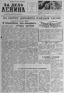 П р ол ет арии в с е х стран, с о е д и н я й т е с ь ! З А Д Е Л О № 40 ( 2 7 4 5 ) 15 с е н т я б р я 1965 г . С р е д а Ц е н а 2 к о п . О р г а н С е в е р н о г о р а й к о м а К П С С и р а й о н н о г о С о в е т а д е п у т а т о в т р у д я щ и х с я Н о в о с и б и р с к о й о б л а с т и Х о р о ш и м с п р о с о м у п о к у п а т е л е й п о л ь з у ю т с я ч а с ы П е н з е н с к о г о з а в о д а . С в о ю п р о д у к ц и ю п р е д п р и я т и е о т п р а в л я е т б о л е е ч е м в 50 с т р а н м и р а . Н а с н и м к а х в ы в и д и т е н о в ы е м у ж с к и е ч а с ы „ В е с н а " и о д н у из т е х , ч ь и у м е л ы е р у к и с о б и р а ю т т а к и е ч а с ы — к о м с о м о л к у Г а л и н у Ш а р о в у . Ф о т о Н. А к и м о в а . Ф о т о х р о н и к а Т А С С НА УБОР К Е ДОРОЖИТЬ КАЖ Д Ы М ЧАСОМ! В р а й о н н о м к о м и т е т е КПСС В ближайшие дни завершить Б ю р о р а й о н н о г о к о м и т е т а К П С С о б с у д и л о в о п р о с о х о д е у б о р к и у р о ж а я и о т м е т и л о , ч т о н е с м о т р я н а т р у д н ы е п о г о д н ы е у с л о в и я , р я д к о л х о з о в р а й о н а о р г а н и з о в а н н о в е д у т у б о р к у у р о ж а я , в с п а ш к у з я б и и з а с ы п к у с е м я н . Т а к , к о л х о з и м . К . М а р к с а н а 10 с е н т я б р я з а в е р ш и л к о с о в и ц у х л е б о в , с и л о с н ы х к у л ь т у р , в ы п о л н и л п л а н з а с ы п - ■ и с е м я н н а 5 0 п р о ц е н т о в , в с п а ш к и з я б и н а 2 5 п р о ц е н т о в . О р г а н и з о в а н а с к и р - д о в к а с о л о м ы . Э т о г о у с п е х а п а р т и й н а я и п р о ф с о ю з н а я о р г а н и з а ц и и , п р а в л е н и е к о л х о з а д о б и л и с ь п у т ё м р а з в ё р т ы в а н и я ш и р о к о г о с о ц и а л и с т и ч е с к о г о с о р е в н о в а н и я с р е - ^ д и м е х а н и з а т о р о в , п р а в и л ь н о й р а с с т а н о в к и т е х н и к и , у м е л о й о р г а н и з а ц и и т р у д а н а у б о р о ч н ы х р а б о т а х . О р г а н и з о в а н н о в е д у т у б о р к у у р о ж а я к о л х о з ы « 7 - й с ъ е з д С о в е т о в » , « П у т ь к к о м м у н и з м у » и д р у г и е . В м е с т е с э т и м н е к о т о р ы е к о л х о з ы н е о б е с п е ч и в а ю т н о р м а л ь н у ю р а б о т у к о м б а й н о в , с у ш и л о к , з е р н о о ч и с т и т е л ь н ы х м а ш и н , ч е м з а т я г и в а ю т х л е б о у б о р о ч н ы е р а б о т ы . Н а к о п и в ш е е с я н а т о к а х з е р н о о ч и щ а е т с я н е с в о е в р е м е н н о , н е п р о с у ш и в а е т с я , ч е м з а д е р ж и в а е т с я з а с ы п к а с е м я н . Н а п р и м е р , в к о л х о з е « З а в е т ы И л ь и ч а » з е р н о в ы х у б р а н о в с е г о 5 0 п р о ц е н т о в , н а т о к а х с к о п и л о с ь б о л е е 4 т ы с я ч з е р н а , к о т о р о е н е д о в о д и т с я д о н е о б х о д и м ы х к о н д и ц и й д л я ' з а с ы п к и н а с е м е н а и м о ж е т п о д в е р г н у т ь с я п о р ч е . М е ж д у т е м с е м я н з а с ы п а н о в с е г о 7 0 0 ц е н т н е р о в . В м е с т е с э т и м в к о л х о з е е щ ё н е з а к о н ч е н а у б о р к а с и л о с н ы х к у л ь т у р , м е д л е н н ы м и т е м п а м и и д ё т в с п а ш к а з я б и . Т а к ж е н е у д о в л е т в о р и- т е л ь н о и д ё т у б о р к а у р о ж а я в к о л х о з е « П а м я т ь Л е н и н а » , г д е з е р н о в ы х с к о ш е н о 51 п р о ц е н т , а п л а н в с п а ш к и з я б и в ы п о л н е н н а 3 4 , 7 п р о ц е н т а . Д о п у с к а е т с я м е д л и т е л ь н о с т ь н а в с п а ш к е з я б и , н а с к и р д о в а н и и с о л о м ы . М е д л е н н о и д у т у б о р о ч н ы е р а б о т ы , в с п а ш к а з я б и и з а с ы п к а с е м я н в к о л х о з а х и м . М. Г о р ь к о г о , и м . * X X I I с ъ е з д а К П С С и « Б о р ь б а з а м и р » . у б о р к у у р ож а я Г л а в н ы м и п р и ч и н а м и с д е р ж и в а н и я т е м п о в у б о р к и у р о ж а я я в л я е т с я н е п о л н о е и с п о л ь з о в а н и е т е х н и к и . Т а к , в к о л х о з е « П а м я т ь Л 