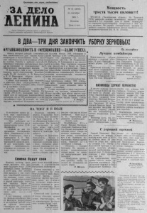 ЗА ДЕЛО ЛЕНИНА Орган С е в е р н о г о райкома КПСС и р а й о н н о г о ^Со ве т а д е п у т а т о в тр у д ящи х с я Н о в о с и б и р с к о й о б л а с т и № 4 4 ( 2 7 4 9 ) 24 с е н т я б р я 1 9 6 5 Г. П я т н и ца . Ц е н а 2 коп. Мощность триста тысяч киловатт! Т Р О И Ц К . ( Ч е л я б и н с к а я о б л а с т ь ) . Н а Т р о и ц к о й Г Р Э С з а в е р ш ё н м о н т а ж г и г а н т с к о г о п а р о в о г о к о т л а в ы с о т о й с 14 - э т а ж н ы й д о м . В б л о к е м о н т и р у е т с я о ч е р е д н о й т у р б о г е н е р а т о р м о щ н о с т ь ю в 3 0 0 т ы с я ч к и л о в а т т . Это п е р в а я э л е к т р и ч е с к а я м а ш и н а с е р и й н о г о в ы п у с к а Х а р ь к о в с к о г о з а в о д а т я ж ё л о г о э л е к т р о м а ш и н о с т р о е н и я им . В. И . Л е н и н а . ТРИ ДНЯ ЗАКОНЧИТЬ УБОРКУЗЕРНОВЫХ! ОРГАНИЗОВАННОСТЬИ СОРЕВНОВАНИЕ— ЗАЛОГУСПЕХА К о н е ц в т о р о й д е к а д Ы с е н т я б р я 6biA з н а м е н а т е л е н д л я н а ш и х м е х а н и з а т о р о в и к о л х о з н и к о в т е м , ч т о о н и з а к о н ч и л и н а в с е й п л о щ а д и у б о р к у х л е б о в . У с п е х у в р а б о т е с п о с о б с т в о в а л и х о р о ш а я о р г а н и з а ц и я т р у д а н а к о с о в и ц е и с о р е в н о в а н и е з а б ы с т р е й ш е е з а в е р ш е н и е Ж а т в Ы . В а в а н г а р д е , к а к и п а з а г о т о в к е к о р м о в , и д у т с у р г у т о в ц Ы . К о м б а й - н е р Ы М . Л\ . А е г а ч ё в , А . В. В а с и л Ь е в и Н. Я. В а р л а м о в у б р а л и х л е б а в б р и г а д е у Ж е 16 с е н т я б р я . С е й ч а с с у р г у т о в ц Ы в с ю т е х н и к у и р а б о ч у ю с и л у с о с р е д о т о ч и л и н а у б о р к е с о л о м Ы , в с п а ш к е з я б и , о ч и с т к е и з а с Ь т к е с е м я н . С о л о м у с в о л а к и в а е т о п Ы т н Ы й м е х а н и з а т о р В л а д и м и р Ч е р н о в . Н а с в о ё м « М Т З - 5 0 » , k o m o p b m в о т у Ж е п я т Ь л е т н е п р о х о д и л к а п и т а л ь н о г о р е м о н т а , о н д о 5 0 0 ц е н т н е р о в в д е н Ь с в о л а к и в а л с е н а . И т е п е р Ь з а н и м т р у д н о у г н а т Ь с я . В л а д и м и р о ч и с т и л По т е л е ф о н у Л у ч ш и е к о м б а й н е р ы З а к а н ч и в а е т с я у б о р к а о т с о л о м Ы б о л е е 2 0 0 г е к т а р о в в с в о е й б р и г а д е и 5 0 — в Ф ё д о р о в с к о й . Й У х о д и т е г о т р а к т о р — н а п о л о с е | п о я в л я ю т с я « Д Т - 5 4 » . И. Л е щ и н с к и й , | з е р н о в ы х в к о л х о з е « B e e - В. Б р Ы л ё в , Н. С т е п а н о в и д р . п а ш у т g x o ^ >;>- В ДВУХ б р и г а д а х ос- д н ё м и н о ч Ь ю . П р и с м е н н о м з а д а н и и | т а л о с ь Убрать 150 г е к т а - 5 , о н и п а ш у т п о 6 и б о л е е г а . Н е л Ь - | Р о в - з я у п р е к н у т Ь и х и в к а ч е с т в е . П р а в - | П р а в л е н и е к о л х о з а , под- д а , о т д е л Ь н Ы е п о л о с Ы п е р в о е в р е м я Й[ В0ДЯ и т о г и с о ц и а л и с т а чес- н е а к к у р а т н о о п а х и в а л и с Ь . П о с л е з а - $ К0Г0 с о Р е в н о в а н и я , о т ме - м е ч а н и я м е х а н и з а т о р Ы и с п р а в и л и 1 ™ л 0 Х0 Р ° ш у ю р а б о т у к о м - э т о т н е д о с т а т о к . g б а и н е р а Ч е б а к о в с к о й б р и - Н а 2 0 с е н т я б р я С у р г у т о в с к а я б р и - | г а ^ ы В а с и л и я Ф ё д о р о в и ч а г а д а з а г о т о в и л а с в Ы ш е 3 0 0 г е к т а - й ---------------------------- р о в з я б и . Т р а к т о р и с т ы н а с т р о е н ы g в Ь т о л н и т Ь п л а н в с п а ш к и з я б и к § МАЛИКОВЦЫ ДЕРЖАТ ПЕРВЕНСТВО А ф а н а с ь е в а и к о м б а й н е р а i В и т и н с к о й б р и г а д ы А р с е н - т а я П а в л о в и ч а С е д а к о в а . ' Э т и к о м б а й н е р ы к 2 2 с е н т я б р я у б р а л и по 3 0 0 г е к т а р о в к а ж д ы й , н е д о п у с т и в п о т е р ь з е р н а . С е й ч а с н а и х к о м б а й н а х к р а с н ы е ф л а ж к и п е р е д о в и к о в . В . Г о р л о в , а г р о н о м к о л х о з а . к о н ц у с е н т я б р я . „ С е м я н п ш е н и ц Ы и о в с а и м е е 