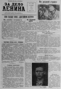 П р о л е т а р и и в с е х с т р а н , с о е д и н я й т е с ь ! ЗА ДЕЛО НИНА № 55 ( 2760) 20 О К Т Я б р Я 1965 Г. С р е д а Ц е н а 2 коп . По родной стране О р г а н С е в е р н о г о р а й к о м а К П С С и р а й о н н о г о С о в е т а д е п у т а т о в т р у д я щ и х с я Н о в о с и б и р с к о й о б л а с т и XII СЪЕЗДУ КПС—С ДОСТОЙНУЮВСТРЕЧУ На линейке г о т о в н о с т и В ч е с т ь В е л и к о г о О к т я б р я и п р е д с т о я щ е г о X X I I I с ъ е з д а К П С С н е о с л а б е в а е т т р у д о в о е н а п р я ж е н и е к о л х о з н и к о в и м е х а н и з а т о р о в н а ш е й с е л ь х о з а р т е л и . П о л н ы м х о д о м и д ё т п о д г о т о в к а ж и в о т н о в о д ч е с к и х п о м е щ е н и й к з и м о в к е с к о т а . Р е м о н т и р у е т с я т е х н и к а , й, К о м б а й н е р И . К у м и н о в с т а р а е т с я б ы т ь в е з д е п е р в ы м . Н а х л е б о у б о р к е у н е г о б ы л и с а м ы е в ы с о к и е п о к а з а т е л и . С е й ч а с о н п е р в ы м п р и в ё л с в о й к о м б а й н в г о т о в н о с т ь . З а к а н ч и в а ю т п о д г о т о в к у м а ш и н к о м б а й н е р ы А . П е р ц е в и С . К и р г и з о в . К у р с а н т ы Б а р а б и н с к о г о у ч и л и щ а м е х а н и з а ц и и Н и к о л а й Д м и т р и е в и П ё т р Г р и г о р ь е в о т р е м о н т и р о в а л и в П р и б е л и н с к о й б р и г а д е з е р н о в у ю с е я л к у и л у щ и л ь н и к . Д в е с е я л к и в ы ш л и и з р е м о н т а в Ч у в а ш и н - с к о й б р и г а д е . З д е с ь ж е к у з н е ц ы Л е о н и д Я к о в л е в и ч С а п р ы г и н и В а с и л и й М а к у ш е н к о п о д г о т о в и л и с ц е п к и и б о р о н ы . Р е м о н т с е л ь х о з и н в е н т а р я м о г б ы и д т и л у ч ш е , н о н е х в а т а е т н е к о т о р ы х з а п а с н ы х ч а с т е й . Т о р г о в ы й То т д е л о б ъ е д и н е н и я « С е л ь х о з т е х н и к и » н е з а б о т и т с я о и х з а в о з е . М. И л ь д в р о в , а г р о н о м к о л х о з а „ Н о в а я ж и з н ь " . РАБОТНИКИ СЛУЖБЫ БЫТА— ПРАЗДНИКУ К о л л е к т и в б ы т к о м б и н а т а в с т р е ч а е т н а с т у п а ю щ и й п р а з д н и к х о р о ш и м и т р у д о в ы м и п о к а з а т е л я м и . Т а к , р а б о ч и е с т о л я р н о г о ц е х а о б е щ а л и в ч е с т ь О к т я б р я пл ' ан д е с я т и м е с я ц е в п о в ы п у с к у п р о д у к ц и и в ы п о л н и т ь н а 1 2 0 п р о ц е н т о в . П р и э т о м н е з а б ы т о и к а ч е с т в о и з д е л и й . А б р и г а д ы И . Г е р г е р т а и Л . Т и м о ш е н к о р е ш и л и в ы п о л н и т ь о к т я б р р с к и й п л а н н а 1 4 0 п р о ц е н т о в . С е й ч а с в э т и х б р и г а д а х о т л и ч н о т р у д я т с я с т о л я р ы И в а н М и р о н ч и к о в и к о м с о м о л е ц Н и к о л а й Г р и г о р ь е в . О д р у г и х ц е х а х с х о р о ш и м и п о к а з а т е л я м и в т р у д е р а с с к а з а л п р е д с е д а т е л ь ! м е с т к о м а Т. А . Т е м е н е в . — П и л о р а м н ы й ц е х в з я л о б я з а т е л ь с т в о к 7 н о я б р я в ы п о л н и т ь г о д о в о й п л а н п о р а с п и л о в к е к р у г л о г о л е с а . У ж е с е й ч а с и з з а п л а н и р о в а н н ы х 3 5 0 0 к у б о м е т р о в р а с п и л е н о б о л е е 3 3 0 0 . О с о б е н н о х о р о ш о п о р а б о т а л и п и л о р а м щ и к Г . В у р - м а т о в , р а б о ч и е Н . К о т о в , П о л о в н ё в а , Е . К о н д - р а ш к и н а , П . Б о н д а р е н к о . И е щ ё х о ч е т с я с к а з а т ь о р а б о т е ч а с о в о й м а с т е р с к о й . М а с т е р П . Г . Р я б и ч е в е ж е м е с я ч н ы й п л а н в ы п о л н я е т н а 1 3 0 — 1 4 0 п р о ц е н т о в п р и х о р о ш е м к а ч е с т в е р е м о н т а . Ю . В о л о д и н . Семинар а г р о н о м о в П р и с е л ь х о з у п р а в л е н и и п р о в е д е н с е м и н а р к о л х о з н ы х а г р о н о м о в . З а в е д у ю щ и й С е в е р н ы м г о с с о р т о у ч а с т к о м В . Г . С а ф р о н о в в ы с т у п и л п е р е д е г о у ч а с т н и к а м и с д о к л а д о м « О б и т о г 