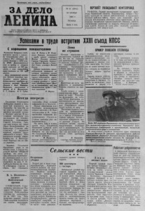 ЗА ДЕЛО ЛЕНИНА Орган С е в е р н о г о райкома КПСС и р а й о н н о г о С ов ет а д е п у т а т о в тр удящ и хся Н о в о с и б и р с к о й о б л а сти № 56 (2761) 22 ОК ТЯ бр я 1965 Г. П я т н и ц а Ц е н а 2 к о п . ВЕРТОЛЁТ УКЛАДЫВАЕТ НЕФТЕПРОВОД Т Ю М Е Н Ь . Р е д к и й э к с п е р и м е н т о с у щ е с т в и л и а в и а т о р ы Т ю м е н с к о й о б л а с т и . Н е ф т е п р о в о д Ш а и м — Т ю ме н ь п р о х о д и т по с и л ь н о з а б о л о ч е н н ы м и т р у д н о д о с т у п н ы м р а й о н а м т а й г и . З д е с ь д л я п о д в о з к и т р у б н е л ь з я и с п о л ь з о в а т ь о б ы ч н ы е в и д ы т р а н с п о р т а . И н а п о м о щ ь с т р о и т е л я м п р и ш ё л в е р т о л ё т . Э к и п а ж « М И - 6 » о р г а н и з о в а л п е р е в о з к у по в о з д у х у с т а л ь н ы х 3 5 - м е т р о в ы х п л е т е й . Т о л ь к о з а о д и н д е н ь в е р т о л ё т д о с т а в и л с т р о и т е л я м 3 5 0 метров т р у б . Т А С С Успехами в труде встретим XXIII съезд КПСС С х о р о ш и м и п о к а з а т е л я м и Нолл ент ив Северного х л е б о при ём н ого пуннта с х о р о ш и м и п о н а з ат в л ям и и д ёт н а в с т р е ч у 4 8 - й годовщине Б е линого Октября и Х Х Ш с ъ е з д у К П С С . Д е в я т и м е с я ч н ы й пл ан по при ём у и отгрузке зе р н а вы п о л н е н на 102 пр о цента, а пл ан переработки зе рна выполнен на 13 0 прЬ* центов. Эт их п о к а з а т е л е й к о л л е к тив д о б и л с я бл агодаря труд о л ю б и ю многих рабочих. До б р о со в ест н о т р уд ят ся с у шильные ма ст ера З и н а и д а Л е о н о в а и Иван Нлвпиков. П ост оя нн о от л и ч а ю т с я в р а б о т е Д. А. Меньшикова, Е. Т. Егорова , И. С. Тудвасова, И. Лоб к ов и М. Линар- пвнно. Хорошие по ка зат ели в труде имеют каменщ и к М а к сим Палинов, мел ьник Г е р а с и м Гер ас и м о в , д и з е л и с ты В а с и л и й М асл ов и Г е н н а - дий Г а в и н , э л е к т р и к Л е о н и д Осипов. Недавно со ст оя ло сь п р о и з во дственное совещание , на котором коллектив пункта р еш ил к п р а з д н и к у Октября х орош о подготовить п ро из во дст венные цеха к работе в зим н и х у с л о в и я х и з а к о н чить обработку зерна. М о ж но не сомн е ват ься , что это обязательство будет с ч е с тью выполнено. Л. М ир н ая . В с е г д а впер еди Е в л а м п и я И з о т о в и ч а Л е б е д е в а з н а ю т в к о л х о з е к а к х о р о ш е г о р а б о т н и к а . З а ч т о 6 b i он ни в з я л с я , в с е г д а с т а р а е т с я с д е л а т Ь л у ч ш е и б о л Ь ш е д р у г и х . Б в е с е н н ю ю п о с е в н у ю е г о п о с т а в и л и н а с е я л к у , к о т о р у ю б у к с и р о в а л С е р г е й Ш у с т о в . Т а м , г д е о н и с е я л и , н е н а д о б Ьт ло б е с п о к о и т Ь с я з а к а ч е с т в о . С е м е н а в Ы- с е в а л и с Ь с з а д а н н о й н о р м о й , х о р о ш о з а д е - л Ь т а л и с Ь в п о ч в у . Ч т о к а с а е т с я н о р м Ы в Ь т р а - б о т к и , т о в В е с е л о в с к о й б р и г а д е и м н е 6bi - л о р а в н Ы х . З а д а в а л Е в л а м п и й И з о т о в и ч т о н и н а м е т к е с е н а . А к о г д а п о д о ш л о в р е м я у б и р а т Ь у р о Ж а й , т о т у т е г о с п о с о б н о с т и к о м б а й н е р а р а з в е р н у л и с ь в п о л н у ю с и л у . Н и к т о н е м о г у г н а т Ь с я з а н и м . Е. И. Л е б е д е в с к о с и л н а с в а л 5 5 г е к т а р о в г о р о х а и у б р а л 3 6 7 г е к т а р о в М. А. Ш о л о х о в — л а у р е а т Н о б е л е в с к о й п р е м и и С Т О К Г О Л Ь М . С о в е т с к о м у п и с а т е л ю М и х а и л у Ш о л о х о в у п р и с у ж д е н а Н о б е л е в с к а я п р е м и я п о л и т е р а т у р е з а 1 9 6 5 г о д . Э т о р е ш е н и е п р и н я л з д е с Ь Н о б е л е в с к и й к о м и т е т н а с в о ё м з а с е д а н и и . Т А С С з е р н о в Ы х . Э т о л у ч ш и й п о к а з а т е л ь в к о л х о з е . П о с л е о к о н ч а н и я х л е б о 