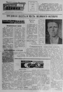 Орган Северного райкома К П С С и районного Совета депутатов трудящихся Новосибирской области № 62 (2 7 6 7 ) 5 ноября 1965 Г . П ятница Цена 2 коп. Трудящиеся Советского Союза! Развитие и укрепление экономики к о л хозов и с о в х о з о в — дело всей партии, всего народа! Настойчиво боритесь за претворение в ж и з н ь разработанных м артовским Пленумом ЦК К П С С неотложных мер по дальнейшему р а з в и т и ю сел ьс ко го хо зя й с тв а ! ( И з Призывов Ц К К П С С к 48-й годовщине О к тя б р я ) ТРУДОВАЯ ВАХТА В ЧЕСТЬ ВЕЛИКОГО ОКТЯБРЯ Опережающие время Н а п ер во е н о я б р я к о л х о з им. К а р л а М а р к с а д о с р о ч н о вып о лнил г о д о в о й план п р о д а ж и м о л о к а г о с у д а р с т в у . Р е д а к ц и я с в я з а л а с Ь по т е л е ф о ну с б у х г а л т е р о м к о л х о з а Е в д о к и е й Е л и с е е в н о й С а в а с т е е в о й . В о т ч т о она с о о б щ и ла: — Н а конец о к т я б р я наши Ж и в о т н о в о д Ы не т о л Ь к о в ы п о л н и л и план прод аЖи м о л о к а г о с у д а р с т в у , но и продали с в е р х э т о г о 680 ц е н т н е р о в . С л у ч ш и м и п о к а з а т е л я м и в т р у д е п о д ошл и к п р а з д н и к у ич- калинцЫ ( з а в е д у ю щ и й ф е р м о й И. И. П о д ъ я - в а ] . Г о л о в о е о б я з а т е л ь с т в о — получи гпЬ по 1800 к и л о г р а м м о в м о л о к а о т к о р о в Ы — п е р е к р Ы т о з а д е с я т Ь м е с я ц е в п о ч т и на цент н е р . Н а м н о г о о пере дила в р е м я д о я р к а э т о й ф е р м Ы М а р и я И в а н о в н а П о д ъ я в а . На к а Ж д у ю к о р о в у ею н а доено 2366 к и л о г р а м м а. Т р ёх к и л о г р а м мов не д о т я н у л а до 22 ц е н т н е р о в М а р и я Л о г и н о в н а А г а п о в а . Б о л е е ч е м по 20 цен т н е р о в на к о р о в у п о л у ч и л и А н н а Григор Ь- е вна П а н т е л е е в а и Е в д о к и я И в а н о в н а Г о л о в и на . М А С Л О Д Е Л Ы — С Т Р А Н Е К празднику 48-й годовщины Великого Октября коллектив рабочих головного маслозавода подходит е выполнением годового плана заготовок молока на 101,8 процента, в том ч и с ле по индивидуальному с е к т о р у— на 143 процента. Годовой план по выработке масла выполнен на I ноября на 102,2 и казеина —на 115,9 процента. Первенство в соревновании по заготовкам молока от населения держит з а ведующая Долго Гривен- ским сепараторным отделением т. Корнякова. Зад а ние по заготовкам молока она выполнила на 183 процента. На 175 процентов выполнил задание завед у ющий Канашинским сепараторным отделением тов. К у д р я ш о в . А . С . Б рыл ёва (Досинское сепараторное отделение) заготовила на корову от населения по I I центнеров молока. П о ч ти такой же показатель у С. И. Долотова (Сургутов- ское сепараторное отделение). Добросовестная работа многих заведующих сепараторными отделениями даст возможность заводу выработать сверх плана зоо центнеров масла. Заготовлено и переработано молока за Ю месяцев почти на 12 т ы с я ч центнеров больше, чем за этот же период прошлого года. В . Б а г р о в , председатель рабочкома головного маслозавода. Лампочки Ильича Д о нынешнего года в н аш е м колхозе о с т а в а л с я не э л е к т р и ф и ц и р о в а н н ы м пос ё л о к Досино. Недавно м ы п о с т а в и л и в нём н еб о л ь ш ую э л е к т р о с т а н ц и ю . Сей час и д у т п о д г о т о в и т е л ь ные р а б о т ы для её пусна . В б л и ж а й ш и е дни в домах досинсних нолхознинов в м е с т о нвросинон з а ж г у т с я л а м почни Ильи ча . А с у р г у т о в ц а м г о т о в и т с я н годовщине О к т я б р я другой подарок — нлуб. 5 ноября б у д е т п о л н о с т ь ю за к он чен а его о т д е л к а и праздник он