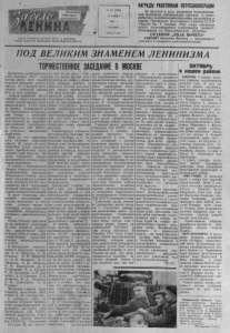 № 64 (2769) 12 ноября 1965 г. Пятница Цена 2 коп. Орган Северного райкома К П С С н районного Совета депутатов трудящихся Новосибирской области НАГРАДЫ РАБОТНИКАМ ПОТРЕБКООПЕРАЦИИ З а засл у ги в деле р а з в и т и я к о о п е р а т и в ной т о р г о в л и , организации з а к у п о к и перер а б о т к и с е л ь с к о х о з я й с т в е н н ы х п р о д у к т о в и сЫрЬя, Президиум В ерхо вно го С о в е т а С С С Р У к а з о м о т 5 ноября 1 9 6 5 года наградил особо о т л и ч и в ш и х с я р а б о т н и к о в п о т р е б кооперации по Новосибирской о б л а с т и ; О РД ЕН ОМ „ З Н А К ПОЧ Е ТА * Л А Ш Н Е ВИ Ч А н а с т а с и ю Ивановну — продавщицу раймага Северного р а й п о т р е б с о ю з а . ПОД В ЕЛ И КИ М ЗНАМ ЕН ЕМ Л ЕН И Н И ЗМ А ТОРЖЕСТВЕННОЕ ЗАСЕДАНИЕ В МОСКВЕ Дыханием незабываемых дней Октября 1917 года всегда овеян этот самый большой праздник нашего народа. Но у каждой из годовщин советской власти есть и свои приметы. Доброй приметой 48-го Октября стало социалистическое соревнование в честь предстоящего X X I I I съезда партии. Коммунисты -и все трудящиеся в преддверии съезда с энергией, деловитостью и энтузиазмом борются за выполнение решений сентябрьского Пленума Ц К К П С С , за успешное завершение семилетки. Ещё на год приблизилось 50-летие советской власти. И , думая об этом, советские люди подводят итоги пройденному пути, сверяют свой курс по Ленину, неуклонно следуя бессмертному учению марксизма-ленинизма. 6 ноября в Кремлёвском Дворце съездов состоялось торжественное заседание Московского Совета депутатов трудящихся и городского комитета К П С С , посвящённое 48-й годовщине Великой Октябрьской социалистической революции. В зале — новаторы московских предприятий и строек, инженеры и техники, деятели науки и культуры, воины, сельские труженики Подмосковья, ветераны революционных боёв. Наша столица пригласила на праздник делегации из всех союзных республик, присутствуют зарубежные гости и главы дипломатических представительств, аккредитованные в С С С Р . В президиуме торжественного заседания товарищи Л. И. Брежнев, Г. И. Воронов, А. П. Кириленко, А. Н. Косыгин, К . Т. Мазуров, А. И. Микоян, Н. В. Подгорный, Д. С. Полянский, М. А. Суслов, Н. М. Шверник, А . Н . Ше- лепип, В. В. Гришин, II .Н . Демичев, Ф . Д. Кулаков, Б. Н. Пономарёв, А. П. Рудаков. Заседание открыл председатель исполкома Моссовета В. Ф_ Промыслов. С докладом «48-я годовщина Великой Октябрьской социалистической революции» выступил член Президиума Ц К К П С С , первый заместитель Председателя Совета Министров С С С Р Д.С. Полянский. Вот у ж е 48 лет отделяют нас от тех дней, говорит он, когда партия коммунистов во главе ш. Лениным подняла рабочих и крестьян России на победный штурм капитализма. Это был могучий революционный шквал, который опрокинул строй, основанный на эксплуатации. В о з никло государство нового типа —социалистическое государство. Для народов многонациональной Р о с сии, для всего человечества занялась новая заря, открылась новая страница истории. Характеризуя всемирно- историческое значение Великого Октября, Д. С. Полянский подчёркивает, что теперь у ж е не капитализм, а мировая система социализма и народы, ведущие борьбу против империалистического гнёта, не бурж уазия, а международный рабочий класс, силы, борющиеся за социалистическое переустройство, —вот кто определяет главное направление и особенности развития современного чело