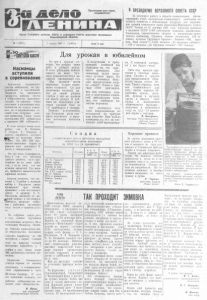 v m ш м гЛ Пролетарии всех стран, соединяйтесь! Орган Северного райкома КПСС и районного Совета депутатов трудящихся Новосибирской области № 4 ( 2951) « 5 0 - ^ еоветши ш с т й 7 я н в а р я 1967 г. С у б б о т а Цена 2 коп. В ПРЕЗИДИУМЕ ВЕРХОВНОГО СОВЕТА СССР З а у с п е ш н у ю р а б о т у в о б л а с т и п л а н и р о в а н и я , ф и н а н с и р о в а н и я , у ч е т а , м а т е р и а л ь н о - т е х н и ч е с к о г о с н а б ж е н и я н а р о д н о г о х о з я й с т в а и м о б и л и з а ц и ю р е с у р с о в д л я в ы п о л н е ния з а д а н и й с е ми л е т н е г о пл а н а П р е з и д и у м В е р х о в н о г о С о в е т а С С С Р У к а з о м о т 31 д е к а б р я 1966 г о д а н а г р а д и л о р д е н а м и и м е д а л я ми С С С Р 3 . 4 6 5 р а б о т н и к о в п л а н о в ы х , ф и н а н с о в ы х , б а н к о в с к и х , с т а т и с т и ч е с к и х о р г а н о в и м а т е р и а л ь н о - т е х н и ч е с к о г о с н а б ж е н и я . О р д е н о м Л е н и н а н а г р а ж д е н о 152 ч е л о в е к а , о р д е н о м Т р у д о в о г о К р а с н о г о З н а м е н и — 438 , о р д е ном, , З н а к п о ч е т а " — 1 . 22 3 , м е д а л ь ю „ З а т р у д о в у ю д о б л е с т ь " — 815 и м е д а л ь ю „ З а т р у д о в о е о т л и ч и е " — 837 ч е л о в е к . К а с м а н ц ы в с т у п и л и в с о р е в н о в а н и е К о л л е к т и в К а с м а н с к о г о у ч а с т к а н е б о л ь ш о й , н о т р у д о л ю б и в ы й и н а с т о й ч и в ы й . Н е с м о т р я на и м е ю щ и е с я т р у д н о с т и , р а б о ч и е ч е с т н о и д о б р о с о в е с т н о в ы п о л н я ю т з а д а н и я , не с н и ж а ю т темпы з а г о т о в о к и р а с п и л о в к и л е с а К о л л е к т и в не т о л ь к о в ы п о л н и л , н о и п е р е в ы п о л н и л ю д о в о й п л а н з а г ц т о в о к д е л о вой д р е в е с и н ы . С в е р х п л а н а з а г о т о в л е н о 8 70 к у б о м е т р о в и в ы в е з е н о 6 0 6 к у б о м е т р о в В э т о м з а с л у г а т а к и х л е с о р у б о в , к а к В. К л е в ц о в , Г. П е т р о в , К. Н и к и т и н и д р у г и х , в ы р а б о т к а к о т о р ы х д о х о д и т д о п о л у т о р а но р м в щ е н ь . Н а 120 — 1 3 0 п р о ц е н т о в в ы п о л н я е т н о р м ы на в ы в о з к е л е с а т р а к т о р и с т В. Б а с о в и п и л о р а м щ и к и . Н о т у т н а д о о г о в о р и т ь с я . Б е д а в том, что п и л о р а ма т р е б у е т р е м о н т а , ч а с т о п р о с т а и в а е т не по вине р а б о ч и х , а и з - з а т о г о , ч то н е т н у ж н ы х з а п ч а с т е й . Т у т , в и д и м о , т р е б у е т с я в м е ш а т е л ь с т в о д и р е к ц и и л е с х о з а . Х о ч е т с я о т м е т и т ь , ч то л е с ничий т . Г о л у б е в и м о л о д о й м а с т е р т . Б а с т р и к о в у м е л о о р г а н и з у ю т т р у д л юд е й , п р о я в л я ю т о них п о с т о я н н у ю з а б о т у . А п р о ф о р г Е. К. Н и к о л а е в а , н е с м о т р я на п о д м о й в о з р а с т и п о с т о я н н у ю з а н я т о с т ь , п р о в о д и т с о б р а ния с р а б о ч и м и , о р г а н и з у е т д о с у г л юд е й в к р а с н о м у г о л ке. На с о б р а н и и з а ш л а р е ч ь о т о м , к а ки м и т р у д о в ы м и п о к а з а т е л я м и в с т р е т и т ь 5 0 - ю г о д о в щ и н у В е л и к о г о О к т я б р я . Р а б о ч и е е д и н о д у ш н о в з я ли о б я з а т е л ь с т в о е ж е д н е в н о д о в о д и т ь в ы р а б о т к у д о 130 п р о ц е н т о в к н о р м е , г о д о в о й план по в ы п у с к у г о т о в о й п р о д у к ц и и в ы п о л н и т ь к 7 н о я б р я и д а т ь с в е р х пл а н а 3 0 0 к у б о м е т р о в д е л о в о й д р е в е с и н ы . К о л л е к т и в К а с м а н с к о г о у ч а с т к а п е р вы м по л е с х о з у в к л ю ч и л с я в с о ц и а л и с т и ч е с к о е с о р е в н о в а н и е в че с т ь 5 0 - л е т и я О к т я б р я . И е с т ь все о с н о в а н и я п о л а г а т ь , ч т о р а б о ч и е д о б р о с о в е с т н о в ы п о л н я т с в о и о б я з а т е л ь с т в а . И . Л а п и н , з а м . с е к р е т а 