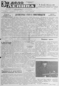 2 « З А Д Е Л О Л Е Н И Н А » 14 марта 1 9 6 7 г о д а С ТЕПЛОМ И РАДУШИЕМ * 5 0 -ДЕТИЮ лъсГ -л м | в с т н ы й р а д и о у з е л о б ъ я в и л , ч т о в к о л х о з „ Б о р ь б а з а м и р " п р и е з ж а е т Т и т С т е п а н о в и ч М о т о р и н — о д и н и з п а р т и з а н о в о т р я д а И . С. Ч у б ы к и н а , б о р о в ш е г о с я с б е л о г в а р д е й ц а ми н а т е р р и т о р и и н а ш е г о р а й о н а . А ч е р е з н е к о т о р о е в р е мя к з д а н и ю п р а в л е н и я к о л х о з а с т а л и с х о д и т ь с я л ю д и . И в о т в д а л и п о к а з а л а с ь л е г к о в а я а в т о м а ш и н а . В с ё п р и ш л о в д в и ж е н и е . О ж и д а ю щ и е в ы с ы п а л и н а у л и ц у , ч т о б ы в с т р е т и т ь д о р о г о г о г о с т я . „ Г а з и к " о с т а н о в и л с я , , и и з н е г о в ы ш е л н е в ы с о к о г о р о с т а п л о т н ы й п о ж и л о й ч е л о в е к . К н е м у п о д х о д и т б ы в ш и й п а р т и з а н П . И . Н и к у л и н . О н ' п о д н о с и т г о с т ю х л е б - с о л ь . П а р т и з а н ы у з н а ют д р у г д р у г а и, о б н я в ш и с ь . н е н а х о д я с л о в , в б е з м о л в и и с т о й т п о с р е д и л ю д с к о г о к р у г а . Т . С . М о т о р и н у з н а е т и д р у г и х т о в а р и щ е й . И , н е с м о т р я н а м о р о з , н а у л и ц е , п р я м о у м а ш и н ы , н а ч и н а ют с я в о с п о м и н а н и я о д а л ё к и х и г о р я ч и х п а р т и з а н с к и х б у д н я х . З а т е м г о с т я п р и г л а ш а ю т в ш к о л у , г де с н е т е р п е н и е м ж д у т е г о у ч и т е л я и у ч а щ и е с я . Вы н о с и т с я п и о н е р с к о е з н а мя . О д н а и з у ч е н и ц п о в я з ы в а е т п о ч ё т н о м у г о с т ю к р а с н ы й г а л с т у к . Т и т С т е п а н о в и ч с в о л н е нием б л а г о д а р и т р е б я т . А з а т е м н а ч и н а е т р а с с к а з о п а р т и з а н с к о м д в и ж е н и и в г о д ы г р а ж д а н с к о й в о й н ы , о с в о и х т о в а р и щ а х , к о т о р ы е не щ а д я ж и з н и , б о р о л и с ь в о имя с ч а с т ь я и с в о б о д ы л ю д е й . П о в е д а л Т и т С т е п а н о вич и о б о е в о м п у т и о т р я д а И. С. Ч у б ы к и н а , в ( к о т о р о м н а х о д и л с я и о н . А в з а к л ю ч е н и е Т . С . М о т о р и н с к а з а л : — Р е б я т а ! Мы о т в о е в а л и в а ш е б у д у щ е е , а т е п е р ь п е р е д а е м е г о в и а ши р у к и . Т а к б у д ь т е ж е д о с т о й н ы т е х , к т о б о р о л с я з а в а ш е с ча с т ь е ! П о с л е т о р ж е с т в е н н о й ч а с т и в с е н а п р а в л я ю т с я к п а м я т н и к у п а р т и з а н а м , п о г и б шим о т р у к к о л ч а к о в ц е в в 1919 г о д у . Т и т С т е п а н о в и ч в о з л а г а е т в е н о к . С о б р а в ш и е с я м и н у т о й м о л ч а н и я п о ч т и л и п а мя т ь б о р ц о в з а д е л о р е в о л ю ц и и . Т о р ж е с т в е н н у ю т и ш и н у н а р у ш а ю т д е т с к и е г о л о с а . Р е б я т а к л я н у т с я не з а б ы в а т ь име н а т е х , к т о о т д а л ж и з н ь з а их с ч а с т л и в о е н а с т о я щ е е и б у д у щ е е . З а т е м Т и т С т е п а н о в и ч п о б ы в а л в И ч е , г де п р о ш л и м н о г и е г о д ы е г о ж и з н и . И з д е с ь в с е ж и т е л и р а д о с т н о в с т р е ч а ю т ж е л а н н о г о г о с т я . У ч а с т н и к В е л и к о й О т е ч е с т в е н н о й в о й н ы Д . И. С т а р ц е в п р е п о д н о с и т п а р т и з а н у х л е б - с о л ь и г о в о р и т : „ В с е мы р а д ы в с т р е т и т ь В а с , н а ш е г о д о р о г о г о з е м л я к а " . З а т е м х о з я е в а и г о с т и и д у т в б р и г а д н ы й к л у б , где п р о х о д и т м и т и н г . И с н о в а Т . С . М о т о р и н р а с с к а з ы в а е т о г о р я ч и х д н я х г р а ж д а н с к о й в о й н ы , ’ к о г д а р е ш а л а с ь с у д ь б а м о л о д о г о с о в е т с к о г о г о с у д а р с т в а . П о с л е э т о г о он п о в с т р е ч а л с я с п а р т и з а н с к о й в д о в о й ^ У л ь я н о й Ф е д о р о в н о й П ь я н к о в о й , м у ж к о т о р о й б ыл з 
