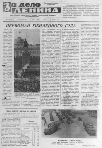 П р о л е т а р и и в с е х стран , с о е дин я йт е сь ! Орган С е в ер н о г о райкома КПСС и р а йон но го С овета д еп у т а т о в т р у д я щ и х с я Н о в о с и б и р с к о й о б л а с т и № 5 5 ( 3 0 0 2 ) Г о д и з д а н и я 3 2 - й 6 мая 1 9 6 7 г. С у б б о т а Цена 2 к о п . Т р у д ящ и е с я С о в е т с к о г о С о ю з а ! Б о р и т е с Ь з а у с п е ш н о е вы п о л н е н и е с о ц и а л и с т и ч е с к и х о б я з а т е л ь с т в в ч е с т Ь 5 0 - л е т и я С о в е т с к о й в л а с т и , з а д а л ь н е йш и й п о д ъ е м п р о м ы ш л е н н о с т и и с е л Ь с к о г о х о з я й с т в а ! П о в Ь ш т й т е э ф ф е к т и в н о с т ь п р о и з в о д с т в а , л учш е и с п о л Ь з у й т е капиталЬнЫ е влоЖения, б Ы с т р е е о с в а и в а й т е новЫе м о щ н о с т и ! т е м а о ф о р м л е н и я п о ч т и в с е х з а в о д с к и х к о л о н н , в ы ш е д ш и х н а п е р в о м а й с к у ю д е м о н с т р а ц и ю . В м и н у в ш е м к в а р т а л е п о н о в о й э к о н о м и ч е с к о й с и с т е м е в М о с к в е р а б о т а л о 198 п р о и з в о д с т в е н н ы х к о л л е к т и в о в . Д о к о н ц а ю б и л е й н о г о г о д а к н им п р и с о е д и н я т с я е щ ё 3 7 5 з а в о д о в и ф а б р и к . Г о р я ч и м о д о б р е н и е м в с т р е т и л и с о в е т с к и е л ю д и д о к у м е н т ы к о н ф е р е н ц и и е в р о п е й с к и х к о м м у н и с т и ч е с к и х и р а б о ч и х п а р т и й п о в о п р о с а м б е з о п а с н о с т и в Е в р о п е . „ З а м и р и б е з о п а с н о с т ь в Е в р о п е ! " , „ К р е п и т ь б о е в у ю с о л и д а р н о с т ь с б о р ю щ и м с я В ь е т н а м о м ! " — т р а н с п о р а н т ы с э т и м и с л о в а м и в ы с о к о п о д н я т ы н а д р я д а м и д е м о н с т р а н т о в . М о с к в и ч и в ы р а ж а ю т р е ш и т е л ь н ы й п р о т е с т п р о т и в м а с с о в ы х р е п р е с с и й и п р е с л е д о в а н и й д е м о к р а т о в и п а т р и о т о в в Г р е ц и и . . . . И д у т р а б о ч и е и с л у ж а щ и е п р е д п р и я т и й , с т р о е к , у ч р е ж д е н и й с т о л и ц ы . В п р а з д н и ч н ы х к о л о н н а х — у ч ё н ы е , р а б о т н и к и к у л ь т у р ы , с т у д е н т ы , у ч а щ и е с я . П е р в о м а й с к о е ш е с т в и е в с т о л и ц е о т р а з и л о г о р я ч е е с т р е м л е н и е с о в е т с к и х л ю д е й о т м е т и т ь ю б и л е й н ы й г о д н о в ым и д о с т и ж е н и я м и в о с л а в у Р о д и н ы . Ж * ж Т о р ж е с т в е н н о в с т р е т и л и П е р в о м а й т р у д я щ и е с я Л е н и н г р а д а , К и е в а , М и н с к а , В л а д и в о с т о к а , Т б и л и с и и д р у г и х г о р о д о в с т р а н ы . Т А С С . В С о в е т е М и н и с т р о в СССР Сов е т М и н и с т р о в С С СР п о с т а н о в и л п е р в н е с т и д е н ь о т д ы х а с в о с к р е с е н ь я 7 м а я н а п о н е д е л ь н и к 8 м а я 1 9 6 7 г о д а . П о с о с т о я н и ю на 4 мая к о л х о зы р а й о н а п р а к т и ч е с к и з а к о н ч и ли п р и б и в к у влаI и. Эт а р а б о т а в б о л ь ш и н с т в е к о л х о з о в в ыпо л н е н а б е з о п о з д а н и й и с в ыс о к и м к а ч е с т в о м . О д о в р е м е н н о и д ё т в е с н о в с п а ш к а . П р а в д а , в с п а х а т ь п р е д с т о и т in б о л ь ш и е п л о щ а д и . Н о м е х а н и з а т о р ы к о л х о з о в им. XXI I с ъ е з д а К П С С , „ П а м я т ь Л е н и н а " , „ З а в е т ы Ил ьича" и д р у г и х в е д у т п а х о т у в ы с о к и м и т е м п а м и . В с е к о л х о з ы в е а у т п р о т р а в л и в а н и е с е м я н . Н а 4 мая п р о т р а в л е н о о к о л о 2 6 т ыс я ч ц е н т н е р о в . Э т а р а б о т а м е д л е н н о и д ё т в к о л х о з а х им. М. Г о р ь к о г о , . П у т ь к к о м м у н и з м у " и „7 - й с ъ е з д С о в е т о в " . Н и ж е п е ч а т а е т с я с в о д к а о х о д е в е с н о в с п а ш к и и с е в а . К п о с е в у р а н н и х к у л ь т у р — п о д с о л н е ч н и ка на с и л о с и д р у г и х — п р и с т у п и л о 6 к о л х о з о в . Н е к о т о р ы е х о з я й с т 