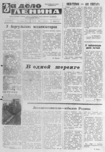 -4 rr - Пролетарии всех страп, соединяйтесь! Орган Северного райкома К П С С и районного Совета депутатов тр уд ящ ихся Новосибирской области № 59 (3006) Год издания 32-й 16 мая 1967 г. Вторник Цена 2 коп. У бергульских механизаторов У к о л х о з н и ко в , с п е ц и а л и с т о в , р у к о в о д и т е л е й ко л х о з а им. К . М а р к с а одно с т р е м л е н и е — к а к д р у ж н е е и о р г а н и з о в а н нее п р о в е с т и в е с е н н и й сев. В п р о ш л о м г о д у а р т е л ь по у р о ж а й н о с т и з а н я л а т р е т ь е м е с т о в р а й оне. И н ы н ч е полеводы в з я л и о б я з а т е л ь с т в о — по л у ч и т ь с г е к т а р а по 13 центнеров з е рн о вы х . Н а в е с е н н и й период с о с т а в л е н ч ё т к и й план р а б о т ы , з а к а ж д ы м сея- тел ьным а г р е г а т о м з а к р е п л е н ы о т в е т с т в е н н ы е . М е х а н и з а т о р ы знаю т свои з а д а ч и , о бъём и место р аб оты . Е щ ё до н а с т у п л е н и я м а й с к и х дней они ^закрыли в л а г у , о ч и с т и л и поля от п р ош л о г о д н е й с о л о м ы ' и н а ч а л и п р е д п о с е в н у ю о бр аб о тк у п о ч в ы . А когда п р и ш л а п о ра, а г р е г а т ы в ы ш л и на сев ранних к у л ь т у р . З а т р и - ч е т ы р е р аб о ч и х дня м е х а н и з а т о р ы р а з м е с т и л и п о д с о л н е ч н и к на площ ад и 203 г е к г а р а , горох — н а 6 8 , з а с е я л и т а к ж е с в ы ш е 3 0 0 г е к т а ров овсом. Х о р о ш о т р у д я т с я на под ра бо т ке п о ч в ы т р а к т о р и с т ы В л а д и м и р Г а й д у ков, Ф и л и м о н Ф е д о т о в , н а с е в е — к о м м у н и с т Я к о в В а с и л ь е в и ч Х м е л ё в и з Б е р г у л ь с к о й т р а к то р н о й б р и г а д ы . В м е с т е с с е я л ь щ и к о м Е г о р о м К у з ь м и - ч ё м Х м е л ё в ы м они е ж е см енн о з а с е в а ю т по 36 — 38 ге к т а р о в при н ор ме 17. По и то гам п е р в ы х дней п о с е вны х работ л у ч ш ие м е х а н и з а т о р ы к о л х о з а — Ф . Ф е д о т о в , В . Г а й д у к о в , А . Р о м а н ц а н и д р у г и е — п р е м и р о в а н ы , а т р а к т о р и с т а м С е м ё н у И в а н о в у , А л е к с а н д р у М и х а й л о в у и М и х а и л у С а в а с т е е в у в р у ч е н ы п е р е х о д я щ и е кр а с н ы е ф л а ж ки . Одновременно с севом ранних к у л ь т у р ве д ё т с я весновспашка . У ж е в с п а хано более 200 гектаров. — В ч е р а , — г о в о р и т п р е д с е д а те л ь ар т е л и Д . В . Б е л о в , — м ы п р и с т у п и л и к с е в у п ш е н и ц ы . 9 0 0 г е к т а р о в з е м л и , о т в е д ё н ной под э т у к у л ь т у р у , д у м а е м з а с е я т ь з а 4— 5 рабочих дней . Е с т ь в с е г а р а н т и и т о м у , ч то с л о в о сво|} п о л е воды с е л ь х о з а р т е л и сд ер ж а т . М. С е р г е е в . ВШЕСТЕРОМ — 412 ГЕКТАРА Говорят, в поле что в хоре — запевала в почёте. Таких запевал соревнования за высокие темпы и безупречное качество сева, которые личным примеров у в лекают за собой отстающих, у нас в колхозе немало. В одной лишь Ново-Тронцкой бригаде можно насчитать по меньшей мере шесть лучших трактористов, чьи трудовые успехи заставляют подтягиваться остальных механизаторов. С первых дней посевной выдвинулись вперёд водители колёсных трак т о р о в И. Кочережко, Г. Новиков, А. Соколов, 11. Буглеев. За последние четверо суток каждый из них поднял дневную выработку в два с лишним раза, засевая пшеницей по 26— 29 и больше гектаров при норме 13. До 43 и болео гектаров засевают за смену сцепом двух сеялок,1 буксируемых трактором «ДТ-54», М. Ларченко с напарником П. Бородихи- иым. Это почти вдвое превышает сменное задание. Эта группа передовиков прекрасно понимает, что JB о д н о й ш е р е н г е В период сева мы почему- то в первую очередь замечаем и вы