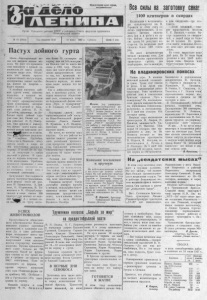 ~ - Л 1 П р о л е т а р и я в с е х с т р а н , с о е д и и я н т е с ь ! О р г а н С е в е р н о г о р а й к о м а К П С С и р а й о н н о г о С о в е т а д е п у т а т о в т р у д я щ и х с я Н о в о с и б и р с к о й о б л а с т и № 8 5 ( 3032) Г о д и з д а н и я 32-й 15 и ю л я 1967 г. С у б б о т а Це на 2 коп. П а сту х дойного г у р т а И ю л ь — б л а г о п р и я т н ы й м е с я ц д л я в ы с о к и х н а д о е в м о л о к а . Н о р о с т е г о п р о и з в о д с т в а н а х о д и т с я в п р я м о й з а в и с и м о с т и о т т р у д а л ю д е й , к о т о р ы е п а с у т с к о т . О б ъ я с н и т ь э г о м о ж н о п р о с т о : х о р о ш о п о п а с ё т п а с т у х к о р о в , с в о е в р е м е н н о с м е н и т п а с т б и щ е , н а п о и т их в о в р е м я — б у д е т м о л о к о . К п о д б о р у п а с т у х о в д о й н ы х г у р т о в о ч е н ь с е р ь е з н о о т н е с л и с ь в к о л х о з е им. XXI I с ъ е з д а К П С С . К о р о в т у г п а с у т п р е и м у щ е с т в е н н о т а к и е к о л х о з н и к и , к о т о р ы е и м е ю т 3 — 4 - л е т н и й и б о л ь ш и й с т а ж р а б о т ы . П . И . С у г л о б о в , н а п р и м е р , и з Ко - б а т о в о п а с е т д о й н ы й г у р т у ж е с е м ь л е т . П я т ы й г о д с ним р а б о т а е т И . Е . П и н т у - с о в . О н и п р и ш л и к в ы в о д у , ч т о л у ч ш е в с е г о п а с т и ж и в о т н ы х в о л ь н о к р у г л ы м и с у т к а м и Ш ^ г о н я т ь и х в з а г о н . Э т о ^ ^ Э х р р о ш и е р е з у л ь т а т ы . т о в а р и щ и С у г л о б о в , П и н г у с о в и В и н н и к о в о б е с п е ч и л и н а д о й в и юн е по 4 0 2 к и л о г р а м м а м о л о к а на к о р о в у . А н а д о й п о и х г у р т у з а п о л у г о д и е — с а мы й в ы с о к и й в р а й о н е . В с р е д н е м о т к о р о в ы п о л у ч е н о по 1 7 4 3 к и л о г р а м м а . П р и б а в к а м о л о к а по с р а в н е н и ю с э т и м ж е п е р и о д о м п р о ш л о г о г о л а с о с т а в и л а п о ч т и п я т ь с п о л о в и н о й ц е н т н е р о в . З а с л у ж и в а е т б л а г о д а р н о с т и р а б о т а п а с т у х о в Г р а ж д а н ц е в - с к о й ф е р м ы э т о г о ж ё к о л х о з а Н . А ф а н а с ь е в а , А , З а й ц е в а , И . Ш у р м е л е в а , В . Т о - м а ш е н к о и Н . Ш т р а у б , п о л у ч и в ш и х в и ю н е с в ы ш е 3 8 0 к и л о г р » * - ^эв м о л о к а о т к а ж д о й А с н а ч а л а г о д а н а д ^ Щ ) и х г у р т у с о с т а в и л б о л е е 1 6 ц е н т н е р о в н а к о р о в у и л и н а 5 3 3 к и л о г р а м м а б о л ь ш е , ч е м з а ш е с т ь м е с я ц е в в 19 6 6 г о д у . О б е с п е ч и л и о н и т а к о е р е з к о е п о в ы ш е н и е п р о д у к т и в н о с т и с к о т а т е м , ч т о п р а в и л ь н о и с п о л ь з у ю т в о з м о ж н о с т и п а с т б и щ н о г о п е р и о д а , д о м и н и м у м а с в е л и л и ш н и е е г о п е р е г о н ы . К а к о д о б р о с о в е с т н ы х л ю д я х , в н а д е ж н ы х р у к а х к о т о р ы х н а х о д и т с я о б щ е с т в е н н ы й с к о т , о т з ы в а ю т с я д о я р к и К о р д о н о в с к о й ф е р м ы к о л х о з а „ П у т ь к к о м м у н и з м у " о В . Г а п о н ь к о и Е . С а в а с т е - е в е . М а с т е р а м и с в о е г о д е л а з а р е к о м е н д о в а л и с е б я п а с т у х и Н о в о - Н и к о л ь с к о й ф е р м ы к о л х о з а „ П а м я т ь Л е н и н а " М . К у з н е ц о в и М. Н а з а р о в , е ж е г о д н о о б е с п е ч и в а ю щ и е в ы с о к и е н а д о и . Н е л е г о к , н о п о ч е т е н т р у д п а с т у х а . О т е г о р а б о т ы в о м н о г о м з а в и с и т р е ш е н и е з а д а ч и у в е л и ч е н и я п р о и з в о д с т в а п р о д у к т о в ж и в о т н о в о д с т в а , в ы п о л н е н и е р а й о н н о г о о б я з а т е л ь с т в а - п р о д а т ь г о с у д а р с т в у 8 5 т ы с я ч ц е н т н е р о в м о л о к а . У с л о в и я д л я п о л у ч е н и я в ы с о к и х н а д о е в и м е ю т с я п о в с е м е с т н о , н у ж н о т о л ь к о п о л н о с т ь ю , и х и с п о л ь з о в а т ь . Э т о с е й ч а с о д н а и з в а ж н е 