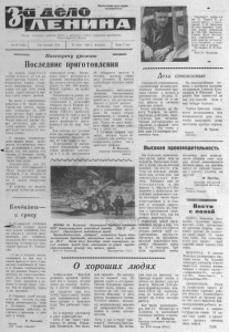 « З А Д Е Л О Л Е Н И Н А » 18 июля 1967 года В с е о б щ е е о д о б р е н и е НА ПАРТИЙНЫХ м ш п н а х У М О Л О Д Ё Ж И О С Т Я П К А В партийных организация х района продолжается обсуждение итогов июньского Пленума ЦК КПСС. На днях состоялись собрания коммунистов колхозов «Борьба за мир», «Восход», «П у т ь к коммунизму», им. X X I I съезда КПСС. С докладами в ы с т у п и л и члены бюро райкома партии — зав. орготделом райкома П. I I . Колмаков, председатель комитета народного контроля Я . Т. Извеков и секретари райкома И. 11. Константинов и I I . И. Игпа- товский. 14 июля состоялось собрание коммунистов колхоза им. К. Маркса. .Здесь доклад об итогах июньского Пленума ЦК КПСС сделал секретарь райкома партии П. Ф . Емельянов. В ы с т у п а я в прениях, коммунисты учитель К . I I . Его ров, механик колхоза М. В. Ж у р а в л ё в , предсе д а т е л ь Бергульского се льсо в е т а 11. М. Данилов, директор во- сьмилетней школы Л. I I. Юревич, председатель профв о а о ш э а с ш о о с ш а а о а а с ш о а а с ш а п с к „ С Е В Е Р - 1 9 " Г О Т О В И Т С Я в п у т ь В З Ч е н и н г р а д е н а ч а л о с ь сн а р я ж е н и е в А р к т и к у в ы с о к о ш и р о тн о й экспедиции „С е в е р - 19 ". С пом ощ ью одного из м ощ ны х л е д о к о ло в предстоит о р г а н и з о в а т ь примерно в 8СО кило м е т р ах к с евер у от о с т р о ва В р а н г е л я н о в у ю дрейфу к вду ю с танцию „ С е в е р н ы й полюс- 1 6 " , д о с т а в и т ь в её ледовый л а г е р ь нау чное о бор уд о ва ние , п р о д о в о л ь с т в и е и г о рю ч ее . кома В. Д. Клещенко и другие высказывали единодушную поддержку и одобрение политике ЦК нашей партии по Ближнем у Востоку , клеймили позором израильских агрессоров и их покровителей — американских и английских империалистов. Собрание единогласно приняло резолюцию, в которой одобрило политическую ли нию и практическую деятельность Политбюро ЦК КПСС в борьбе с израильской агрессией против арабских стран. Коммунисты решили также повести широкую разъяснительную работ у среди населения по Тезисам ЦК КПСС «50 лет Великой Октябрьской социалистической революции». Комсомольцы организации ВЛКСМ колхоза «Борьба за мир»-— народ боевой, энергичный. В этом году они не только прославили себя в проведении общественных мероприятий, по и в труде. Сейчас, когда приближ а е т с я горячая' иора ж а т вы хлебов, идёт сенокосная страда, комсомольцы не дремлют. Недавно у них было собрание, на котором решены многие вопросы. Так, например, решено создать агитбригаду, организовать комсомольско-молодёжные звенья по уборке сена, намечены вечера: поэзии, вальса и другие. — Это собрание у нас бы ло особенно бурным, — говорит член комитета П. Дгр- гачё ва .— Ребята сами выдвигали многие интересные д□□□□□□□□□□□□□□□□□□□□□□□□□□□и■ предложения, спорили и Собрание а к т и в а районной комсомольской организации 1 1 £июля в районном Д о ме пионеров с о с т о я л о с ь с о б рание акти ва С еверной районной к ом сомо л ьск ой о р г а низации. С докладом „ О б т о г а х ию н ь с к о г о Пл ен ума Ц К К П С С и задачах район ной к о м со м о л ь с к ой органи- »ации* вы с т у п и л первый с е к ретарь райкома К П С С И . П . Кон с та н ти н ов . В прениях по д о кл аду выс- гупили П . П р у д н и к о в — с е к ретарь к о м с о м о л ь с к о й о р г а низации райкомхоза, М . Де- нисюк — с е к р е т а р ь к о м со м о л ь ск ой организации „ С е л ь х о з т е х н и к и " , А . Б а л а ш о в — главный инженер управления с е л ь с к о г о хозяй