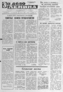 Пролетария всех стран, соединяйтесь! В с е с и л ы и т е х н и к у — п а з а г о т о в к у к о р мов? С и л о с у ем е с т е с т в е н н ы е травы О р г а н С е в е р н о г о р а й к о м а К П С С н р а й о н н о г о С о в е т а д е п у т а т о в т р у д я щ и х с я Н о в о с и б и р с к о й о б л а с т и № 9 4 ( 3041 ) Г о д и з д а н и я 33-й 5 а в г у с т а 1967 г . С у б б о т а Цена 2 к о п . В о б к о м е К П СС , о б л и с п о л к о м е и о б л с о в п р о ф е ПАМЯТНЫЕ ЗНАМЕНА ПЯТИДЕСЯТИЛЕТИЯ О бк о м КПСС, облисполком и президиум облпрофсовета учредили памятные знамёна в честь 50-летия Великой Октябрьской социалистической революции. Городам, районам, коллективам предприятий, совхозов и колхозов, удостоенным памятных знамён, выдаются денежные пре ми и в размерах, установленных при награждении переходящими Красными знаменами обкома КПСС, облисполкома и президиума облсовпрофа. Памятные знамёна присуждаются совместным решением обкома КПСС, облисполкома и президиума облсовпрофа городу, району по лундинской, Барабинской и Восточно-Центральным з онам, ' совхозам, . колхозам, промышленным предприятиям, сельским Советам, строительным трестам, предприятиям железнодорожного, воздушного, водного и автомобильного транспорта — победителям в соревновании. П ри присуждении городам, р а й о н а м , а т а к ж е предприятиям и колхозам памятных знамён по итогам социалистического соревнования в честь 50-летия Великого Октября учитываются их ре волюционные заслуги в деле социалистического строительства в нашей стране. Вручение памятного знам ен и победителям в соревновании в честь 50-летия Великого Октября будет производиться на торжественных заседаниях, собраниях, митингах. Памятные знамена остаются на вечное хранение и как символ трудовой доблести устанавливаются в специально отведенных местах для всеобщего обозрения. Рекомендуется устанавливать на предприятиях и Ч а с т ые д о ж д и в п о с л е д н юю н е д е л ю не д а в а л и к а к с л е д у е т п о д с ы х а т ь н а к о ш е н н о й т р а в е . Ве с т и р а б о т ы по у б о р к е с е на б ы л о н е л ь з я . Н о б р и г а д и р ы т т . П о р т н о в , М а т в е е в и д р у г и е н е т е р я л и п о п у с т у д о р о г о е в р е мя . Они о р г а н и з о в а л и люд е й на з а к л а д к у с и л о с а из д и к о р а с т у щ и х j p a e . М у ж ч и н ы , ж е н щ и н ы в ы к а ш и в а л и в р у ч н у ю у ч а с т к и о к о л о п р о к о п о в , по б о л о т а м . З е л е н а я м а с с а т у т ж е у к л а д ы в а л а с ь в т р а к т о р н ы е т е л е ж к и и о т в о з и л а с ь к п о д г о т о в л е н ны м т р а н ш е я м и я мам. Т а м е ё х о р о ш о т р а м б о в а л и и , к о г д а з а п о л н я л а с ь т р а н ш е я , у к р ы в а л и . В с е г о по к о л х о з у т а к и м с п о с о б о м у ж е з а л о ж е н о 170 т о н н с и л о с а . Н. Тарасов, з о о т е х н и к к о л х о з а „ Н о в а я ж и з н ь " . НЕ ЦЕНЯТ Д О Р О Г О Е В Р Е М Я На стоянку, где безвыезд- g но живут члены механизи- § рованного звена по заготовке в колхозах, получивших на о ко рм ов колхоза «Борьба за м ир », мы подъехали под вечер. К ро ме повара, здесь В с е уехали убирать се- а но, — сказала она и показала, в каком направлении Одновременно учреждается областная книга трудолетия с о дня рождения В. И. Ленина. В СКИРДАХ 3500 ЦЕНТНЕРОВ Есть годовой план! ! Ф Р а б о т н и к и ж и в о т н о в о д с т в а ! н а ш е г о к о л х о з а , с о р е в н у я с ь з а Ф д о с т о й н у ю в с т р е ч у 5 0 - л е т и я * В е л и к о г о О к т я б р я , к 1 а в г у - Ф с т а в ы п о л н и л и г о д о в о й п л а н * п р о д а ж и м о л о к а г о с у