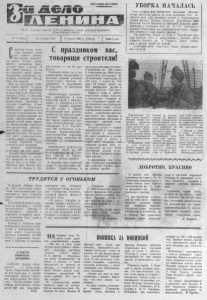 П р ол е т ари и в с е х ст ран , со е д и н я й т е с ь ! Ор г а н С е в е р н о г о р а й к о м а К ПС С и р а й о н н о г о С о в е т а д е п у т а т о в т р у д я щи х с я Н о в о с и б и р с к о й об ла с т и № 9 7 ( 3 0 4 4 ) Го д и з д а н и я 33- й 12 а в г у с т а 1967 г. С у б б о т а •Це на 2 коп. С Каждым годом меняется, хорошеет облик сёл нашего района. Всё больше появляется новых жилых домов, клубов, магазинов, школ, детских садов и яслей. II нет такого колхоза, где бы не строилось новое животноводческое помещение, зерносклад, ремонтные мастерские и ли гаражи. Всё это— результат заботы нашей партии и правительства о росте экономики и культуры села. После мартовского (1965 г. ) Пленума ЦК К П С Сзаметно возросли капитальные вложения в сельское хозяйство. В последи н е годы значительно улучшилась организ а д н я сельского строительства. Всё большее распространение получает прогрессивный подр ядн ый способ работ. Окрепла межколхозная строительная организация, которая в , этом году выполняет подрядным способом 60 процентов всех строительно-монтажных работ в районе. Завтра строители будут отмечать свой праздник. Какими показателями встречают он и этот день? Годовой план строительно- монтажных работ в колхоз а х выполнен за семь месяцев на 71, 4, а в таких , х о зяйствах, как «Заветы Ильича», им. К. Маркса и « П о - С праздником вас, товарищи строители! вая жизнь», — на 90 процентов. Отличного качества и перевыполнения ежедневных и месячных заданий добились строительные бригады М. Гришковец, А. Арсамакова, К . Ходзиева, П. Нальчиева и другие. Межколхозная строительная организация к Дн ю строителя сдала в эксплуатацию в сельхоз а р т е л и «Восход» типовой коровник на 200 голов с полной механизацией всех рабочих процессов. На монтаже механического оборудования в нём хорошо поработала бригада «Сельхозтехники», воз главляемая Г. Л. Суглобо- в ы м. Она установила в помещении кормораздатчики, павозоуборочные ленточные транспортёры, мехдойку, автопоилки и отопительную систему. Замечательно трудится на возведении клуба на 200 мест в колхозе им. М. Горького бригада В. Дурова. Качество работы хорошее. В текущем году строители сдадут в эксплуатацию следующие хозяйственные и культурно-бытовые объекты: 3 коровника на 600 голов, 6 телятников на 1000 голов, 2 ремонтные мастерские на 75 тракторов, зерносклад на 500 тонн, 2 клуба на 350 мест, 10 жилых домов на 5 2 0 квадратных метров и детские ясли на 110 мест. Наряду с этим, в работе строителей нужно отметить и недостатки. Главный из н их— нарушение сроков ввода объектов в эксплуатацию. Имеют место также случаи недоброкачественного выполнения строительно-монтажных работ, что приводит к дополнительным расходам и удорожает сметную стоимость строительства. Начался август — самый напряженный и ответственн ый период у строителей. Им надо закончить в условленные сроки и ввести в строй много объектов. Всё внимание должно быть с о средоточено на том, чтобы достойными делами встретить 50-ю годовщину Советской власти. С праздником вас, сельские строители! Дальнейших вам успехов! Стройте быстро, дешево, прочно! Т Р У Д Я Т С Я с огоньком В колхозе «Память Ленина» идёт деятельная подготовка животноводческих помещений к зиме. Строятся новые и ремонтируются с т а р ые . В Больших Куликах соору- "Жается коровник с полной механизацией. Бригада т. Гадаборшова трудится с подъёмом н к первому о