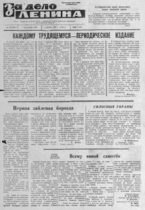 Пролетарка всех стран, соединяйтесь! Орган Северного райкома К П С С и районного Совета Депутатов трудящихся Новосибирской области № Ю6 (3053) Гол издания 33-й 2 сентября 1967 г. Суббота Цена 2 коп. Х а б а р о в с к и й к р а й в ы п о л н и л п л а н з а к у п о к з е р н а Ра зв е р н у в социалистическое соревнование в честь 50-летия Великого Октября* труженики сельского хозяйства Х А Б А Р О В С К О Г О К Р А Я значительно перевыполнили план продажи зерна как по общему объему, т а к и по продовольственным и фуражным культурам. Продажа зерна государству продолжается. ТАСС КАЖДОМУ ТРУДЯЩЕМУСЯ—ПЕРИОДИЧЕСКОЕ ИЗДАНИЕ В тезисах ЦК КПСС «50 лет Великой Октябрьской социалистической революции» говорится: «Партия придаёт первостепенное значение марксистско-ленинскому образованию коммунистов,... улучшению идейно-воспитательной работы среди населения. Она неустанно совершенствует систему партийного образования, а также такие массовые средства идейно-политического и нравственного воспитания, как печать, телевидение, радио, кино». Печать--дело партийное, и о том внимании, которое ей уделяет Коммунистическая партия нашей страны, можно судить даже по тому, что число газет и ж у р налов увеличивается с каждым годом, растёт их тираж. В настоящее время в Советском Союзе издаётся 7700 газет и 4 тысячи журналов общим тиражом в 240 ял-ионов экземпляров. Большое значение придаётся районным г а зетах!. Так, если в 1929 году в стране издавалось 309 районных газет с тиражом 800 тысяч экземпляров, то в настоящее время число районных газет выросло до 3130 с общим разовым тиражом 20 миллионов экземпляров. Такого количества периодической печати не издаётся ни в одной стране мира. Сейчас практически невозможно найти человека, который не читал бы газет. Ж у р нал, газета прочно вошли в жизнь советских людей, как лучшие друзья и советчики. Улучшается работа и нашей районной газеты «За дело Ленина». Растёт её тираж. В 1965 году у газеты было 1260 подписчиков, а нынче 1720. Первого сентября открылась подписка на периодические издания на 1968 год. Это— большая политическая кампания. Необходимо её провести иод лозунгом: «Периодическое издание — каждому трудящемуся». На организацию подписки следует обратить внимание партийным, профсоюзным и комсомольским организациям. Опыт прошлых лет показал, что там, где хорошо налажена работа общественных распространителей, где руководители парторганизаций ход подписки держат под постоянным контролем, там дело идет удовлетворительно, все трудящиеся получают возможность своевременно подписаться на газеты и журналы. Но в прошлом году общественные распространители печати работали только на предприятиях и в учреждениях райцентра. При отделениях связи их не было. Нынче эту ошибку необходимо обязательно исправить. Парткомы, партбюро, секретари партийных организаций должны позаботиться о том, чтобы при каждом отделении связи были созданы группы общественных распространителей, а при партийных организациях— советы по пропаганде и распространению периодических изданий. В состав советов ввести лучших распространителей, представителей общественности. В текущем году газеты и ж ур налы в районе получают 702 человека из каждой тысячи населения. Выписывается 29 наименований газет и 268 наименований журналов. А всего 10720 экземпляров. Это хорошо. Но задача состоит в том, 
