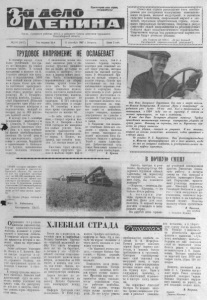 Пролетарий всех страа, соединяйтесь! Орган Северного райкома К П С С и районного Совета депутатов трудящихся Новосибирской области Советская страна располагает всем необходимым для построения коммунизма: замечательными кадрами, мощной индустрией и развитым сельским хозяйством, современной наукой и техникой, передовым общественным строем, огромными природными богатствами. Энергия и разум советских людей направляются на решение новых больших задач коммунистического строительства. Творчеством народа под руководством партии эти задачи б уд ут успешно решены. №>.110 (3057) Год издания 33-й 12 сентября 1967 г. Вторник Цена 2 коп. ( И з Тезисов Ц К К П С С „50 Лет Великой Октябрьской социалистической революции"). ТРУДОВОЕ НАПРЯЖЕНИЕ НЕ ОСЛАБЕВАЕТ Ж В сентябре погода стала более устойчивей, что сраз у же оказалось _на темпах полевых гработ. ’ В первой пятидневке в колхозе им.М. Горького скосили всю к у к у р у з у и подсолнечник. 5000 тонн зелёной массы у л о ж е но в бурты. Силос для скота заготовлен преимущественно качественный. В этом надо отдать должное механизатору Н . Г . Пузырёву. Б у к с и р у я комбайн, упр а вля емый гидравликой, (Николай Григорьевич один убрал почти 10 гектаров к у к у р у з ы и подсолнечника, каждый из которых дал по 300 центнеров зелёной массы. К исходу дня 5 сентября федоровские комбайн е р ы ^1. Алексеев, Н. Тимофеев и Липатов закончили убор- у ржи и с ходу перешли на прямое комбайнирование пшеницы. На третий день к ним присоединились сургу- товцы II рязанцы. Ведущими в соревновании А. Елизаров и П. Хрущев, выполнившие более половины сезонного задания. 120.000 гектаров занимает люпин в колхозах и с о в х о з а х Брянской области. На каждом из них эта кормовая культура дает по 200-300 центнеров зеленой м ассы ,в то же время способствует увеличению плодородия почв. В передовом колхозе „Больше&ик“ (Климовский район) на каждую корову будет заложено до 8-9 тонн силоса люпина. С окончанием посева озимых, косовицы ржи и силосных трудовое напряжение на нолях не только не ослабло, а наоборот, в с т у пило в период нового подъёма. Ч а с т ь механизаторов переключилась на уборку соломы, другие стали [пах а т ь зябь. На заготовку земли появилась возможность поставить^ высвободившиеся гусеничные машины. Всего теперь работает 10 тракторов. Е 237 гектарам зяби, показанным в сводке на 10 сентября, в настоящее время ежедневно приб а в л я е т с я не меньше 60. — З а зябь сейчас я спокоен,— говорит агроном колхоза Н. А. Панарин .— План 1250 гектаров мы выполним без особых усилий. Б о л ь шинство трактористов на подъёме зяби перевыполняет нормы. А Первов, на пример, при сменном задании 5,6 гектара пашет до 8. Уместным будет с к а з а т ь , что основу будущего урож а я в колхозе видят к а к в заготовке земли, так и в семенах. Агроном заранее подобрал для семенных целей такие у ч а с т ки , которые давали бы высокой натуры зерно. В Федоровской бригаде их начали убирать в первую очередь. Семена при поступлении на ток под наблюдением агронома очищают и сортируют. Бол ьшую помощь в этой работе оказывают колхозникам горожане. В Су ргутах шестеро пареньков явл яю т с я полными хозяевами на току. Они разгружают привезённое зерно от комбайнов, следом очищают, влажное подсушивают на с уш и лк е и отправляют государству или в склад. В Р я з а н с к е ток н а зы в а ют семейным. Здесь все операции с зерном, в