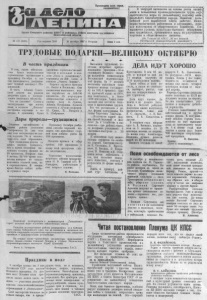Пролетарий в сех стран, соединяйтесь! О р г а н С е в е р н о г о р а й к о м а К П С С и р а й о н н о г о СГойета д е п у т а т о в т р у д я щ и х с я Н о в о с и б и р с к о й о б л а с т и № 122 (3069) | ■ » " т—1 Год издания 33-й 10 октября 1967 г. Вторник Цена 2 коп. В тек ущ ей п ятил етке на осн ове р оста э к о н о - £ мики и повышения прои зв одительн ости т р у д а о с у щ е с т в л яю т с я меры по д а л ь н е й ш е м у п о д ъ е м у мате-*} ри альн о го б л а г о с о с т о я н и я н ар о д а . Н ам ечен дал ь -* нейший рост за р а б о т н о й платы р а б о ч и х , и н ж е - j н е р н о -т ехни ч е ск и х работников и с л у ж а щ и х , д о х о -J дов колхозников от общ ест в ен н о го х о з я й с т в а . П о -$ вышается уровен ь к ул ьт ур н о -бы т о во го о б с л у ж и в а -J ния тр у дящ их ся , принимаются меры по у л у ч ш е н и ю \ т орговли и общ еств енн о го питания . ф* (И з Тезисов ЦК КПСС „50 л е т Великой Октябрьской социалистической революции*). Т РУ ДО ВЫ Е П О Д А Р К И — ВЕЛИКОМУ ОКТЯБРЮ В честь п р а з д н и к а О т о м , как ие о б я з а т е л ь ст ва б р а л а м е ж к о л х о з н а я с т р о и т е л ь н а я о р г а н и з а ц и я к п р а з д н и к у О к т ябр я и как они в ы пол няю т ся , р а с с к а з ы вает главный и н ж е н е р т . П а - ш к о в с к и й . В ч е с т ь ю би л е я С о в е т с к о й в ла с ти мы р еш и л и д о с р о ч н о с д а т ь в э к с п л у а тац ию н е с к о л ь к о о б ъ е к т о в . Чт о ж е с д е л а н о ? С д а н ы в э к с п л у а т а ц и ю три ж и л ы х д о м а , в к о л х о з е „ В о с х о д " п о с т р о е н ы к о р о в н и к и т е л ят н и к . К п р а з д н и к у б у д е т з а к о н ч е н о с т р о и т е л ь с т в о м аст е р с к о й и к о т е л ь н о й в к о л х о з е ^П уть к к о м м у н и з м у " , к о р о в н и к а на 2 0 0 г о л о в в к о л х о з е „Память Л е н и н а " . Х о р о ш о т р у д я т с я б р и г а д ы т т . Л ю с т а и В а с и л ь е в а . Они е ж е м е с я ч н о в ы п о л н яю т н о р мы в ы р а б о т к и на 1 6 0 - 1 8 0 п р о ц е н т о в . И з ш т у к а т у р о в д о б р о с о в е с т н о о т н о с я т с я к с в о е м у д е л у тт . Л у н ё в а , А б а е в а , П е ч у р к и н а . Х о ч е т с я о т м е т и т ь и л у ч ш и х ш о ф е р о в : Н . С м ы к , В . Н а з а р ю к и Б . Ш а б у н е в и ч . Дары природы— трудящимся Н е д а в н о о р г а н и з о в а н о в наш ем р а й о н е о т д е л е н и е ^ о с п р о м х о з а . З а дв а г о д а о н о е щ е м а т е р и а л ь н о н е с о в сем о к р е п л о . Н о в к о л л е к тиве е с т ь св ои п е р е д о в и к и . П ри п о д в е д е н и и и т о г о в за д е в я т ь м е с я ц е в о к а з а л о с ь , ч т о в ц е л о м о т д е л е н и е вы п о л н и л о г о д о в о е з а д а н и е на 6 0 п р о ц е н т о в . В п е р е д и ещ е 3 м е сяц а . З а э т о время к о л л ектив н а м е р е н не т о л ь к о выполнить г о д о в о й пл ан , н о и п е р е в ы п о л н и т ь . В з и м н е е время б ы с т р о п о й д е т д о б ы ча п у ш н о г о з в е р я . П р а з д н и к у О к т я б р я р ы б о ловы с д е л а л и х о р о ш и й п о д а р о к : о н и выполнили г о д о в о й план д о б ы ч и рыбы на 1 8 0 п р о ц е н т о в . Н е п л о х о п р о ш е л и с б о р гр и б о в : 1 0 0 п р о ц е н т о в к п л а н у э т о й п р о д у к ц и и с д а ли з а г о т о в и т е л и . Х о р о ш и м и пок а за т ел ям и в с т р е ч а ю т ю би л е й п р о м ы с л о вики И . В . Гавырин и П . Ф. М а н с у р о в , р а б о т а ю щ и е в с ч е т в т о р о г о з а д а н и я . В . В о л о д и н . Высокими трудовыми у с пехами встречает приближающийся праздник—50-ю годовщину Великого Октябр я коллектив животноводов Веселовской молочнотоварной ф ерм ы. За 9 месяцев веселовцы выполнили план продажи молока государству на 1 0 2 , 4 процента, сдав на приёмный пункт не 4968, как намечалось, а более 5100 центнеров. Т
