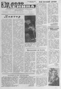 т шщ?л П р о л е т а р и и в с е х с т р а й , с о е д и н я й т е с ь ! О р г а н С е в е р н о г о р а й к о м а К П С С и р а й о н н о г о С о в е т а д е п у т а т о в т р у д я щ и х с я Н о в о с и б и р с к о й о б л а с т и № 142 (3 0 8 9) Год и з да ни я 33-й 28 н о я б р я 1967 г. Вторник, Це н а 2 коп. Л е к т о р Р о л ь и з н а ч е н и е л е к ц и о н н о й п р о п а г а н д ы в о з р а с т а е т . Е е з а д а ч а д о в е с т и д о с о з н а н и я л ю д е й т е и з м е н е н и я , к о т о р ы е п р о и з о ш л и в ж и з н и н а р о д а , с т р а н ы з а г о д ы С о в е т с к о й в л а с т и . С п е ц и ф и к а и д е о л о г и ч е с к о г о в о з д е й с т в и я л е к ц и й с о с т о и т в т о м , ч т о и д е й н а я у б е ж д е н н о с т ь с л у ш а т е л е й ф о р м и р у е т с я б л а г о д а р я г л у б и н е и у б е д и т е л ь н о с т и д о в о д о в , л о г и ч н о с т и и в с е с т о р о н н о с т и а р г у м е н т а ц и и . Ч т о б ы э т о г о д о б и т ь с я , л е к т о р д о л ж е н о в л а д е т ь и с к у с с т в о м у б е ж д а т ь , д о к а з ы в а т ь , с т р е м и т ь с я к м а к с и м а л ь н о й в ы р а з и т е л ь н о с т и у с т н о й р е ч и , с о о б щ а т ь н а и б о л е е с в е ж и й и и н т е р е с н ы й м а т е р и а л , п о в ы ш а т ь и д е й н у ю н а п р а в л е н н о с т ь л е к ц и й . Н а у ч и т ь с я л е к т о р с к о м у м а с т е р с т в у п р и ж е л а н и и н е т а к у ж т р у д н о , ч т о п о д т в е р ж д а е т п р а к т и к а л у ч ш и х л е к т о р о в р а й о н а . А . И . Ж у р а в л е в , н а п р и м е р , л е к ц и я м и „ Х а р а к т е р и о с о б е н н о с т и с о в р е м е н н о й в о й н ы " , „ 5 0 л е т В е л и к о й О к т я б р ь с к о й с о ц и а л и с т и ч е с к о й р е в о л ю ц и и " в ы з в а л б о л ь ш о й и н т е р е с к з а т р о н у т ы м п р о б л е м а м у м е х а н и з а т о р о в о б ъ е д и н е н и я „ С е л ь х о з т е х н и к и " , у р а б о ч и х М е р е т с к о г о л е с п р о м х о з а , у п е д а г о г о в и у ч а щ и х с я Н о в о - Т р о и ц к о й с р е д н е й ш к о л ы , у с о т р у д н и к о в м и л и ц и и . Т р у ж е н и к и р а й о н а с у д о в о л ь с т в и е м с л у ш а ю т в ы с т у п л е н и я л е к т о р а - м е ж д у н а р о д - н и к а Г. Г. М а м о н о в а , к о т о р ы й п р о ч и т а л з а г о д с в ы ш е 5 0 л е к ц и й н а с а м ы е з л о б о д н е в н ы е т е м ы ж и з н и з а р у б е ж н ы х с т р а н . Т р у д я щ и е с я о х о т н о и д у т п о с л у ш а т ь В. Л . К о в а л е в а , Т . А . В е р б и ц к у ю , Е . К. П о п л а в с к у ю и д р у г и х ч л е н о в Н о в о - Т р о и ц к о й л е к т о р с к о й г р у п п ы , н а с ч е т у к о т о р о й ч и с л и т с я с в ы ш е 7 0 п р о ч и т а н н ы х з а г о д л е к ц и й с а м о г о р а з н о о б р а з н о г о х а р а к т е р а . Т о ж е м о ж н о с к а з а т ь о р а б о т е Ч у в а ш и н с к о й и Г р а ж д а н ц е в с к о й л е к т о р с к и х г р у п п , р у к о в о д и м ы х 3 . Н . Г о л у б е в о й и М. М. С м ы к . В т о й и д р у г о й л е к т о р ы у м е л о , о б р а з н о р а с с к а з ы в а ю т л ю д я м о г е р о и ч е с к о м п у т и с о в е т с к о г о н а р о д а , п о м о г а ю т к а ж д о м у ч е л о в е к у о т ч е т л и в е е п р е д с т а в и т ь с е б е в е л и ч и е н а ш и х п о б е д . К с о ж а л е н и ю , д а л е к о не в е з д е л е к ц и о н н а я п р о п а г а н д а п о с т а в л е н а н а у р о в е н ь с о в р е м е н н ы х т р е б о в а н и й . Ч е г о г р е х а т а и т ь : и н о г д а л е к ц и и ч и т а ю т с я б е з д о л ж н о г о о г о н ь к а , п р и с л а б о м э м о ц и о н а л ь н о м в о з д е й с т в и и на с л у ш а т е л е й , с к у ч н о , о д н о о б р а з н ы м и ф о р м а м и и м е т о д а м и . М о ж е т , о т ч а с т и п о э т о м у т а к с л а б о в е д у т р а б о т у л е к т о р с к и е г р у п п ы М е р е т с к о г о л е с п р о м х о з а и к о л х о з а „ 7 й с ъ е з д С о в е т о в " , в о з г л а в л я ю т к о т о р ы е Г . А . Б у я н о в и М. И . Я з и к 