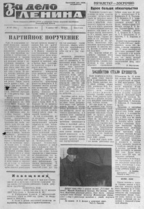 Пролетарии в сех страа, соединяйтесь! О р г а н С е в е р н о г о р а й к о м а К П С С и р а й о н н о г о С о в е т а д е п у т а т о в т р у д я щ и х с я Н о в о с и б и р с к о й о б л а с т и № 146 (3093) Г о д и з д а н и я 3 3 - й 8 д е к а б р я 1967 г, Пя т н и ц а Ц е н а 2 коп. ПА Р ТИЙНОЕ ПОРУЧЕНИЕ П Я Т И Л Е Т К У — Д О С Р О Ч Н О Вдвое больше обязательства Одно из непременных ус ловий повышения активности коммунистов состоит в том, чтобы разумно и целенаправленно распределить между ними партийные поручения в соответствии с наклонностями и уровнем подготовки каждого. Член или кандидат партии с энтузиазмом возьмётся за любое дело, если будет хор ошо знать, ради чего ему надо отдать дополнительные силы и время. Н е просто, конечно, добиться равной степени активности и равноценного участия всех коммунистов в общественной работе. Такую задачу нельзя решить с ходу, на- скд'-&;;. Для этого потребуе т е » немало времени "и в^Гчивого, кропотливого труда, известной перестройки стиля работы б юр о или парткома. Многое в этом отношении делается в партийной организации колхоза им. X X I съезда КПСС. Вопросы активного участия коммунистов в ее жизни, повышения ответственности каждого за порученное дело постоянно волнуют членов парткома и секретарей бригадных парторганизаций. Различные фор мы и методы применяют они, чтобы увеличить долю того или другого коммуниста в решении задач, стоящих перед коллективом. Так, партком не ^| либся в выборе, назначив Жгарейшего механизатора артели Ф. Ф. Тарасенко ответственный за заготовку кормов в Малиновской бригаде: их малиновцы запасли больше всех. А осенью ему поручили возглавить в бригаде ремонт сельскохозяйственной техники. Фала- лей Филаретович и к этому заданию отнесся столь же добросовестно. Он не только организовал подготовку к весне машин и инвента- ря, но I сам в свободное о т работы на водокачке время помогает ремонтникам быстрее привести технику в порядок. Или вот другой пример. Н а период вспашки зяби лучшего тракториста А. И. Юркина коммунисты села Гражданцево избрали партгрупоргом звена ме х а низаторов, занятых на зяблевой нахоте. Доверие товарищей он оправдал: зябь в бригаде была заготовлена полностью, в срок и х о рошего качества. Повышение общественной активности коммунистов стало предметом особой з а боты и членов партбюро колхоза «Новая жизнь». Например, с приходом к руководству профсоюзным комитетом коммуниста В. П. Слепченко заметно улучшилась организация соревнования в бригадах и ' на фермах, поднялась роль членов союза в решении очередных хозяйственных задач. Комсомольскую организацию возглавляет кандидат в члены КПСС М. Н. Ильдеров. По его инициативе комсомольцы не раз выступали зачинателями добрых дел, оживили воспитательную работу среди несоюзной молодежи. Но так, к сожалению, дело поставлено далеко не везде. Некоторые секретари парторганизаций привыкли опираться на силы небольшой группы активистов. Поэтому в распределении поручений у них не чувствуется достаточной осмысленности, целеустремленности, зачастую отсутствует контроль за их выполнением. Бесконтрольность же порождает безответственность, подрывает у людей i веру в полезность их о б- I щественной деятельности. А ведь чем лучше человек справляется с общественным и обязанностями, тем чаще возникает у него потребность поделиться мыслями, наблюдениями, в 