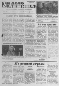 Пролетария в с е х стран, соединяйтесь! О р г а н С е в е р н о г о р а й к о м а К П С С и р а й о н н о г о Совета депутатов тр у д ящ и х с я Н о в о с и б и р с к о й области № 152 (3099I Г о ! изгания 33-й 21 декабря 1967 г. Четверг Цена 2 коп. Больше л е с а новостройкам Строители иыП сезон завершился. Сейчас всё внимание должно быть направлено на заготовку строительных материалов к а к привозных, так и местных. Одним из основных материалов я в л я е т с я древесина. На объём строительства будущего года колхозам нужно около 10 т ы с я ч к у бометров леса хвойных и лиственных пород. Бо л ьш ая ч а с т ь его должна быть з а готовлена в четвертом квартале нынешнего и первом квартале 1968 года. Погодные условия нынче, к а к никогда,, благоприятствуют развертыванию лесоза- этовок. Поэтому совершен- непонятно, почему руководители таких колхозов, Тсак «7-й съезд Советов» и им. X X I I съезда КПСС до сих пор не укомплектовали бригады лесорубов и не направили их на деляны. В первом еще и разговора на э т у тему не вели, а во втором только начали и с ка ть лесосеки. А ведь сельхозар гель им. X X I I съезда КПСС н в 1967 году не выполнила плана лесозаготовок, в результате чего было сорвано намеченное строительство. К этому же может привести и нерасторопность с заготовкой в 1968 году. коммунизму» и «Восход» значительно перевыполнили квартальные задания. Б л и з ки к выполнению плава и лесорубы артели «Борьба за мир». В третьем году пятилетки объем строительства в полтора раза больше, чем в нынешнем. Большие работы Остальные колхозы к руб- буд ут проведены по монта ке леса уж е приступили ж у линий электропередач и или начнут в ближайшие капитальному ремонту здадни. Сформированы бригады ний и сооружений, лесорубов, подготовлены Товарищи лесорубы! Устранспортные средства. В пех строительства будет затех хозяйствах, где лес висеть в первую очередь от будет готовиться вдали от выполнения плана заготовок поселков, оборудуются трак- деловой древесины. Поэтому торные вагончики и избуш- шире развёртывайте соревки для жилья. - нование, чтобы дать больНаиболее организованно ше леса новостройкам! начали заготовку леса колхозы «Восход», «Борьба за мир» и «П у т ь к коммунизму». Только эти три хозяй ства заштабелевали уж е около 1300 кубометров из плана на четвёртый квартал 3720. Колхозы «П ут ь к И. Ш олохов , главный инженер-строитель ; Производственного управления. Б о л е в 2 4 м и л л и о н о в р у б л е й б у д е т в ы п л а ч е н о в 1 9 6 8 г о д у к о л х о з н ы м п е н с и о н е р а м Н у р с н о й о б л а с т и . В с е л ь х о з а р т е л и „ Р о с с и п “ С о л н ц е в с к о г о р а й о н а п е р с о н а л ь н ы е к о л х о з н ы е п е н с и и б у д у т п о л у ч а т ь б р а т ь я Б е л к и н ы , п р о р а б о т а в ш и е в а р т е л и с о д н я е ё о р г а н и з а ц и и . Н а с н и м н е : п о ч ё т н ы е к о л х о з н ы е п е н с и о н е р ы ( с л е в а н а п р а в о ) В а с и л и й З а х а р о в и ч , И л ь я З а х а р о в и ч и Н и к о л а й З а х а р о в и ч Б е л к и н ы . Фото О. Сизова, Фотохроника Т А С С '>ООООООООООФООООФОООФОООООФООО<>Ф<>ФОФОО<>ОФФ<>С>ФФООо Чтоб лучше родила земля Нынешнее з а с у ш л и вое лето ни для кого не делало поблажки. И всё- таки механизаторы и колхозники сельхозартели „Н о в а я ж и ш ь “ с каждого гектара собрали на круг' по 8 центнеров зерна. А н а л и з и р у я с в о и ошибки и промахи, хлеборобы сделали вывод, что одним из слабых звеньев в растениеводстПервый год работает дояркой на Вес