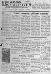 П р о л е т а р и и в с е х с т р а н , со е д и н я й т е с ь ! Н о в о с и б и р с к —Р о д и н е О р г а н С е в е р н о г о р а й к о м а К П С С и р а й о н н о г о С о в ета д е п у т а т о в т р у д я щ и х с я Н о в о с и б и р с к о й о б л а с т и № 154 (3101) Год издания 33-й 26 декабря 1967 г. Вторник Промышленность города Новосибирска досрочно в ы полнила план 1967 года к а к по общему о б ъ ё м у производства, т а к и по в ы п у с к у б о л ьш и н ст в а в а ж н е й ш и х и з делий. Выдано сверхплановой продукции более ч ем на 60 миллионов рублей; з а с ч ё т с н и ж е н и я себестоимости получено более 20 миллионов рублей* с в е рх п л а н овы х на« коплений. Цена 2 коп. | ^ е р е х о д на п я т и д н е в н )ю р а б о ч у ю неделю п р е д о с т а в л я е т труд ящ и м с я ш и р о ки е в о з м о ж н о с т и для у ч ё б ы , о тды ха, за нятий л ю б и мым делом. П о э т о м у с е г о д ня вопрос у л у ч ш е н и я к у л ь т у р н о г о о б с л у ж и в а н и я н а с е ления до лж ен нах оди ться в центре внимания не т о л ь к о р а б о т н и к о в к у л ь т у р ы , но и п ар т и й н ы х , с о в е т с к и х и п р о ф со ю з ны х о ргано в . В н о вы х у с л о в и я х ра бо та к л у б о в и б и б л и о т е к т а к ж е д о лж н а б ы т ь перестроена по н о в ом у . Э т а п ере стройка т р е б у е т о т к у л ь т п р о с в е т р а б о т н и к о в н е малой ги б к о с т и и и з о б р е т а т е л ь н о с т и . Чем б о л ь ш е у них буд ет вы д ум к и и инини- в н , тем богаче станет ар- •-нал во с п и т а т е л ь н ы х средств Ь ^ р е ж д е н и й к у л ь т у р ы . Чем з а н я т ь ч е л о в е к а ? К а к ра зумнее о р г а н и зо ва т ь его с вободное в р е м я ? К а к и е фор мы р а б о ты сл е д у е т и с п о л ь з о в а т ь р у к о в о д и т е л ям к л у б о в и б и б л и о т е к ? С е й ч а с э т о проблемные в о п р о с ы , Т е м более, что для д е я т е л ь Условия изменились, требования повысились ности у ч р е ж д е н и й к у л ь т у р ы н е в о з м о ж н о подобра ть к а кой-то единый рецепт, ибо воспи тательн ая работа ч р е з вы чай н о многогранна. И она немыслима без у ч ё т а м е с т н ы х у с л о в и й . О б з о р ы л и т е р а т у р ы , ч и т а т е л ь с к и е конференции, т е м а т и ч е с к и е вечер а, к о н к у р с ы на л у ч ш у ю с т е н н у ю г азету , к о л л е к т и в н о е чтение с последующ им о бсуждением п р о ч и т анного , д и с п у т ы — вс е эти м ероприятия сл ед у ет чаще п рим ен ять в повседневной ж и зн и б и б л и о т е к . С е й ч а с , к а к никогда ранее, н е о б х о димо ещ ё шире р а з в и в а в так и е формы к л у б н о й р а б о т ы , к а к лекции , у с т н ы е ж у р н а л ы , „ к о л х о з н ы е о г о н ь к и * , в с т р е ч и с ветеранами г р а ж д ан ской и О тече с тве нн о й войн, праздники тр уд ов ой с л а в ы , м ас со вы е праздники, новые о бряды , ве чер а о т д ы ха, к и н о ф е с ти в а л и , вечера во п р о со в и о т в е т о в и т . д. В вы ходны е дни с у т р а и до вечера д о л ж н ы б ы т ь рас п а х н у ты двери у чр ежд е ни й к у л ь т у р ы . К у с л у г а м одних м о ж н о п р е д о с т а в и т ь ш а х м а т ы , ш а ш к и , с в еж и е газеты , ж у р н а л ы . Д р у г и х афиши п р и г л а с я т на лекцию , у с т н ы й ж у р н а л , к онц е рт х у д о ж е с т венной с а мод е ятел ьнос ти или ч и т а т е л ь с к у ю конференцию . Н о ч т о б ы д о б и т ь с я всего э т о г о , р у к о в о д и т е л я м к л у б о в и б и б л и о т е к сл е д у е т б о л ьш е о п и р а т ь с я на о бщ е с т в е н н о с т ь , ш ире п р и в л е к а т ь к работе у ч р е ж д е н и й к у л ь т у р ы ак ти в : м о л о д ё ж ь , спец иа ли сто в, ин т ел ли ге нц ию . В е д ь в любом селе е с т ь люди, спо соб ны е п о с т а в и т ь с п е к т а к л ь , р а з у ч и т ь с хором пе