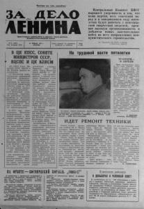 Пролетарии всех с тран, соединяйтесь! Д Е Л О Ор ган Северного райкома КПСС н районного Совета депута тов трудящи хся Новосибирской области № 6 (4201) 14 ЯНВАРЯ 1975 г. Г а з е т а в ы х о д и т п о в т о р н и к а м , Год издания 40-й ВТОРНИК ч е т в е р г а м и с у б б о т а м Цена 2 коп. Центральный Комитет КПСС выражает уверенность в том, что наша партия, весь советский н а род и в завершающем году п я т и летки будут работать с н еи ссяка емой творческой энергией, прояв я т высокую организованность и добьются новых замечательных побед на всех направлениях коммунистического строительства. (Из Обращения ЦК КПСС к партии, к советскому народу) . В ЦК КПСС, СОВЕТЕ МИНИСТРОВ СССР, г ВЦСПС И ЦК В Л К С М ЦК КПСС, Совет Ми. иистров ССС Р , ВЦСПС и ЦК ВЛКСМ прин яли пос тановления: «О Всесоюзном соци а листическом соревновании работников п р омы ш л ен ности, с троител ьства , тран сп о р та за досрочное выполнение нар о д н о х о зяй ств енного п л ана на 1 9 7 5 год и успешное з а в е р ш е ние девятой п я т и л е т к и » ; ' «О Всесоюзном с оциа листич еском с о р е в н о в а нии работников сел ьско го х о з яй ст ва з а ув е ли ч ен и е производств а и заготовок продуктов з е м л е д е л и я и животноводства в 1 9 7 5 году и успешное з а в е р ш е ние де вя той п я ти л е тк и » . В 1 9 7 5 году будет продолжено Всесоюзное с о циалистическое сорев нование союзных и автономных р еспублик , кр а ев и обл астей з а досрочное выполнение нар о д н о х о зяй ств енного п л ана и у спеш ное за ве рш ен и е де вя той пяти л етки предп ри яти ям и промышленности , с ел ьс к о - гр хо з я й с т в а , с тр о и тел ь ств а, транспорта с в р у ч е нием победител ям 5 8 пер е х о д ящ и х К р асн ы х з н а мен ЦК КПСС, Совета Министров ССС Р , ВЦСПС и ЦК ВЛКСМ с ди пл ом а ми, в том числе 8 —д л я союзных р е сп ублик и 5 0 — д л я автономных р е с публик , к р а ев и областей. Д л я н а г р аж д е н и я к о л л ек ти в о в предприятий , производс тв ен ны х Объединений, к о лхо зов , совхозов, строек , н а у ч н о - и с с л е - ' д о в а т е л ь с к и х и других о р ганизаций у ч р еж д е н Памятный знак ЦК КПСС, Совета Министров СССР , В Ц С П С ' и ЦК ВЛКСМ « З а тр удовую доблесть в девятой пятил е т к е » . Памятным знаком будут н а г р а ж д а т ь с я кол лективы , которые добились наиболее высоких п о к а з а т е л е й в вы полн е нии девято го пятилетнего плана, повышении э ф ф е к тивности производства, улучшении ка ч е ст ва и по итогам Всесоюзного социалистического с о р е в н о в а ния за 1 9 7 5 год удостое ны п ереходящ их Красных знамен ЦК КПСС, Совета Министров СССР , ВЦСПС и ЦК ВЛКСМ. Колле кти вы , н а г р а ж денные П амятны м знаком ЦК КПСС, Совета Министров С СС Р , ВЦСПС и ЦК ВЛКСМ , з а н о с я т с я на Всесоюзную доску почета на ВДНХ СССР. П остановление «О Всесоюзном социалистическом соревн ов ан и и работников промышленности , строите л ьс тв а , тран сп о р та за досрочное выполнение народнохо зяйств е н н о г о п л ан а на 1 9 7 5 год и ус пешное за в е р ш е н и е д е в я той п ятил етки» и постановление «О Всесоюзном с о циалистическом сорев новании работников с е л ь ского х о з я й с т в а з а у в е ли чение п рои зводс тв а и з а готовок продуктов з е м л е д е ли я и животноводства в 1 9 7 5 году и успешное з а в е р ш е н и е д е вя то й пятил етки» публи кую т ся в цен тр а л ьн о й и областной печати. На трудовой вахте пятилетки на снимке: Николаи Васильевич Якутии, шофер колхоза «Путь к коммунизму». В хозяйстве он — о