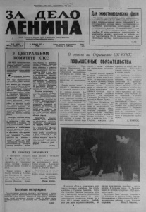 Пролетарии всех стран, с оед иняйтесь ! "ЗЩ f ' З А Д Е Л О О р ган С ев е р н о го райкома КПСС и р а й о н н о г о Совета депутатов тру д ящ и х с я Н о в о с и б и р с к о й области Для животноводческих ферм На з а в о д е с е л ь с к о х о з я й с т в е н н о г о м а ш и н о с т р о е н и я в Е л га ве (Л а т в и й с к а я С С Р ) в с т у п и л в с т р о й н о в ы й п р о и з в о д с т в е н н ы й к о р п у с п л о щ а д ь ю 8 т ы с я ч к в а д р а т н ы х м е т р о в . З д е с ь и з г о т а в л и в а ю т с я с к р е б к о в ы е т р а н с п о р т е р ы , и с п о л ь з у е м ы е на ж и в о т н о в о д ч е с к и х ф е р м а х . В з а в е р ш а ю щ е м г о д у п я т и л е т к и к о л л е к т и в з а в о д а о т п р а в и т к о л х о з а м и с о в х о з а м 29 т ы с я ч к о м п л е к т о в т р а н с п о р т е р о в . На п р е д п р и я т и и н а ч а л а с ь п о д г о т о в к а к в ы п у с к у н о в ы х т р а н с п о р т е р о в У С - 1 0 , п р е д н а з н а ч е н н ы х д л я м е х а н и з а ц и и к р у п н ы х ж и в о т н о в о д ч е с к и х КОМПЛекЧ Ю В . Т А С С № 9 (4204) 22 ЯНВАРИ 1975 г. Газета выходит по вторникам , Цена - издания 40-й СРЕДА четвергам и с убботам 2 коп. ч ** В ЦЕНТРАЛЬНОМ КОМИТЕТЕ КПС В ответ на Обращение Ц К КПС'С ПОВЫШЕННЫЕ ОБЯЗАТЕЛЬСТВА ЦК КПСС принял п ос тан о в , ление «О д в иж ен и и м е х ан и . г а то р о в сельс.уэго хозяйства за д о с т и ж е н и е наивысшей п ро извод ительнос ти труд а, максимальное использование технических в о зм о ж н ос те й машин». В Постановлении о тм ечает , ся, что р азв е рн увш е е ся в 1974 го д у социалистическое со ревнование .с р ед и т р у ж е н и ков села, явилось новым м о щ ным р ы ч а гом для при ве д е ни я в д ействие в ну тренних р е з е р вов колхозов и с овхозов . В ходе соревнования получила4' ш и р о к о е расп ро с тра не ни е про гре сси в н ая ф орм а бо р ьб ы за повышение эффективности производства — д в и ж е н и е за ма ксимальное использование технических в о зм о ж н ос те й машин , дос тиж ен и е наивысшей производ и те л ьн ос ти при работе на тракторах, к о м б а й . нах, гр у з о в ы х автомоЬилях, механизмах и агрега тах, п е р евы полнение д невных норм , значительное повышение с е зо нн ой выработки в сжатые с р ок и при вы со ком качестве работы. Новаторы с е л ь с к о го х о з я й . ства, доби вш и еся в ы д а ю щ и х ся резул ьтатов в 1974 году , обр ащ аю тся с п р и зы в о м ко всем механизаторам страны: закрепить -все то лучшее, что д о с т и гн у т о в использовании техники, сделать этот опыт в з а вершающ ем г о д у пятилетки ^ с т о я н и е м всех т р у ж е н и ков, р аб отающ их на м а ш и , нах, развернуть массовое д в иж ен и е под д е в и з ом — «Се год ня р е к о р д н а в а т о р | , завтра — н ор м ы для всей). Центральный Комитет КПСС реко м е нд о в а л ЦК компартий сою з н ых респ убл и к , к р а й к о . На линейку В м а стерской « С е л ь х о з - технищ*» мы отремонтировали этой зимой л ишь один « Б е л а р у с ь » и тракторный мотор. Готовим машины в основном своими сил ами на месте. Р ем о н т прошли тяг ачи А н д р ея П ерцева и А л е к с а н др а Гри горьева . В н астоя щее в р е м я на выходе т р а к торы А н атолия Матвеева , А р к а д и я Я к о в л е в а , Владимам, о б к о м а м и р айкомам партии. Советам М и ни с тр ов р ес п у ол и к , и с п ол к о м а м к р а евых, областных и районных Советов де путатов т р у д я щ и х , ся. М и ни с те рс тву с ельско го хозяйства СССР и е го местным о р ганам , п ро ф с ою з ны м и к о м с о м о л ь с к и м о р г а н и з а циям вс е м е р н о подд ерж ива ть инициативу механизаторов, направленную на р еш и те л ь ное у лучшени