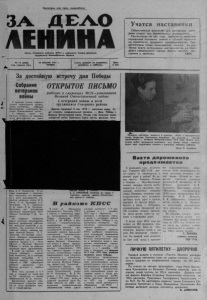 Пролетарии всех стран, соединяйтесь! Д Е Л О Орган Северного райкома КПСС и районного Со вета депутатов трудящихся Новосибирской области У ч а т с я н а с т а в н и к и Общественный ф а к у л ь т е т для наставника молодежи открыт при К ем еров ск ом университете. Рассчитанная на два года про грамма вооружит слушателей основами знаний в области педа гоги ки, психологии, тр удо в о го за конод а тель ства . П р е дусмотрены также практические занятия по и з у чению опыта организации наставничества на п е р е довых предприятиях города. Двести человек приступили к занятиям. Т А С С № 13 (4208) 30 ЯНВАРЯ 1975 г. Газета выходит по вторникам, Цена № Год издания 4 0 . й и ЧЕТВЕРГ четвергам и субботам 1 коп. 4 Г i З а достойную в стр еч у д н я Победы Собрание ветеранов войны В к р а с н о м у г о л к е м е ж к о л х о з н о й с т р о и т е л ь н о й о р г а н и з а ц и и с о с т о я л о с ь с о б р а н и е ф р о н т о в и к о в , у ч а с т н и к о в В е л и к о й О т е ч е с т в е н н о й в о й н ы . С к а ж д ы м г о д о м в с е м е н ь ш е о с т а е т с я на п р е д п р и я т и я х ф р о н т о в и к о в , но зд |е сь О Т К Р Ы Т О Е ПИСЬМО раб о чи х и служащих МСО—участников Великой Отечественной войны к ветеранам войны и всем трудящимся Северного района Дирогие товарищи! 9 мая 1 9 7 5 г . с о в е т с к и й народ б у дет отмечать знамена тельный праздник — День Победы в В еликой О те ч е с тв е н н о й войне. Че ты р е года полыхало пламя свящ енной войны С о в е т с к о г о Союза п р о тив фашизма , ч е ты - с т а в е и н ж е н е р н о _ т е х н и ч е с к о г о п е р с о н а л а , ч т о н а з ы в а е т с я у р у л я п р о и з в о д с т в а , н а х о д я т с я в е т е р а н ы в о йн ы Ф . 3 . Р о г о в , И . М , Б о н д а р е в , А . С . Г р и г о р ь е в , И. П. С а в и ц к и й , И. Д . Г а в и н , В . Д . Г р и н ь к о в . Н е с к о л ь к о л е т в о з г л а в л я е т п а р т и й н у ю о р г а н и з а ц и ю М С О г л а в н ы й б у х г а л т е р Г. Д . Б у _ р е н к о . Н а с о б р а н и и в е т е р а н о в в о й н ы в ы с т у п и л п р е д с е д а т е л ь р а й к о м а п р о ф с о ю з а р а б о т н и к о в с е л ь с к о г о х о з я й с т в а и з а г о т о в о к , с а м у ч а с т н и к О т е ч е с т в е н н о й в о й н ы , к а в а л е р о р д е н а К р а с н о й З в е з д ы П . С . А л е к с е е в . О н п р и з в а л у ч а с т н и к о в с о б р а н и я о з н а м е н о в а т ь з а в е р ш а ю щ и й г о д п я т и л е т к и у д а р н ы м т р у д о м , а в ч е с т ь ю б и л е я — 3 0 - л е т и я В е л и к о й П о б е д ы — в с т а т ь на у д а р н у ю т р у д о в у ю в а х т у ф р о н т о в и к о в . В о т в е т на п р и з ы в М . П. О с и п о в о б я з а л с я г о д о в о й п л а н в ы п о л н и т ь з а 3 м е с я ц е в . Б р и г а д и р л е с о р у б о в И , Т . Н о в и к о в з а в е р и л , ч т о г о д о в о е з а д а н и е — 1500 к у б о м е т р о в д е л о в о й д р е в е с и н ы — е г о б р и г а д а в ы п о л н и т в п е р в о м к в а р т а л е . П л а н п я т и м е с я ц е в — к 9 м а я , а г о д о в о й н е н и ж е , ч е м на 130 п р о ц е н т о в — т а к о в ы о б я з а т е л ь с т в а Ф . Д . Л о м о в а . Е д и н о г л а с н о п р и н я т о п р и с у т с т в у ю щ и м и о т к р ы т о е п и с ь м о к о в с е м в е т е р а н а м в о й ны и труда^ р а й о н а . А . С . ГРИГОРЬЕВ, инженер по труду и зарплате, кавалер ордена О течес твен , ной войьы И степени В р а ш к я с о м е М И С С В о т в е т на О б р а щ е н и е Ц е н т р а л ь н о г о К о м и т е т а К П С С к п а р т и и , к с о в е т с к о м у н а р о д у , п о с т а н о в л е н и й Ц К К П С С ' , С о в е т а М и н и с т р о в С С С Р , В Ц С П С и Ц К В Л К С М о В с е с о ю з н о м с о ц и а л и с т и ч е с к о м с о р е в н о в а н и и к о л л е к т и в ы п р е д п р и я т и й м е с т н о 