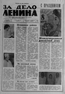 Пролетарии все» стран, соединяйтесь! Д Е Л О Орган Северного райкома КПСС и районного Совета депутатов трудящихся Новосибирской области № 29 (4224) Год издания 40.Й 8 М А Р Т А 1975 г о д а С У Б Б О Т А Газета выходит по вторникам, Цена четвергам и субботам 2 коп. На снимке: Валентина Не- замова, телеграфистка р а й о н ного у з л а с в я з и, Стаж у нее не так уж ве лик , но р яо ом с ней работают такие ветераны -наставники, к а к А н н а А л е к са ндровна Теменева и Е в д о к и я Я к о в л е в н а М акарев ская . Профес сия эта такая, что у телеграфного аппарата нужно дежурить к р у г л ы е сутки, в б у д н и и праздники... Вот и се го д н я , в день 8 Марта, тел е г р а м м у з а телеграммой п р и нимает Валентина Н е за м о в а , Фото П. Смелова. Никому не нужно о б ъ я с нять, в чем зак лючае тся в а ж ность и необходимос ть п р о фессии п родавца. Е ж е д н е в но д о тысячи людей з а п о л н я ет Северный комиссионный м а газин продовольственных т о варов, и продавцы М ари я ЯковлевнаНикити на и Галина П е тровна П о та по в а в ним ательно их принимают, п омогают выбрать т о в а р , быстро и точно взвешивают и о п р ед ел яю т стоимость. П окупатели из этого м а га зи на всегда у х о д я т довольными. З а 1974 год они сд али вы ручки 339,5 тысячи рублей. Н а гр у з к а при этом на один кв адратны й метр п роизвод ст венной площади соста вила 7544 рубля . Это самый высокий п о к а з а т е л ь в районе. П лан ' т о в а р о о б о р о т а з а я н в ар ь и ф ев р ал ь 1975 года м а газином т а к ж е перевыполнен. Н а снимке: п рода вец Г. П. П о тапо в а , Женщинам района Дорогие товарищи! и б р а т ь я м и о н и с т р о и л и Р а й о н н ы й к о м и т е т К П С С с о в е т с к о е г о с у д а р с т в о , и и с п о л к о м р а й о н н о г о г е р о и ч е с к и з а щ и щ а л и е г о С о в е т а д е п у т а т о в т р у д я - о т в р а г о в , с в о и м с о з и д а - щ и х с я с е р д е ч н о п о з д - т е л ь н ы м т р у д о м у м н о - р а в л я ю т вас с М е ж д у н а - ж а ю т е г о б о г а т с т в а и р о д н ы м ж е н с к и м д н е м 8 м о г у щ е с т в о . М а р т а — п р а з д н и к о м 8 М а р т а с т а л о к р а с н ы м е д и н с т в а и с о л и д а р н о с т и д н е м к а л е н д а р я д л я все- т р у ж е н и ц в с е й п л а н е т ы . т о с о в е т с к о г о н а р о д а . За Н ы н е ш н и й , 1975 -й г о д с а м о о т в е р ж е н н у ю л ю - п о р е ш е н и ю Г е н е р а л ь - б о в ь к Р о д и н е , за н е у - н о й А с с а м б л е и О О Н т о м и м о с т ь в т р у д е , за о б ъ я в л е н М е ж д у н а р о д - м а т е р и н с к у ю з а б о т у о н ы м г о д о м ж е н щ и н . Э т о с е м ь е , о д е т я х ч е с т в у ю т с в и д е т е л ь с т в у е т о т о й в э т о т д е н ь т е б я Ж е н щ и - б о л ь ш о й , о т в е т с т в е н н о й на, М а т ь , Т р у ж е н и ц а , ж е н щ и н ы в э к о н о м и ч е с к о м , с о ц и а л ь н о м и к у л ь т у р н о м р а з в и т и и о б щ е ства , о п р и з н а н и и в а ж н о ст и в с е в о з р а с т а ю щ е г о в л и я н и я ж е н щ и н в р а з в и т и е д р у ж е с т в е н н ы х о т н о В э т о т с в е т л ы й п р а з д н и к р а й о н н ы й к о м и т е т К П С С и и с п о л к о м р а й о н н о г о С о в е т а д е п у т а т о в т р у д я щ и х с я ж е л а ю т в а м , д о р о г и е ж е н щ и н ы , к р е п к о г о з д о р о в ь я , б о л ь ш о г о ш е н и й и с о т р у д н и ч е с т в а с ч а с т ь я в д е т я х , с е м е й - м е ж д у г о с у д а р с т в а м и , в н ы х р а д о с т е й в ж и з н и у к р е п л е н и и м и р а . С о в е т с к и е в н е с л и н е о ц е н и м о б о л ь в с е о б щ е г о н о в ы х т р у д о в ы х у с п е х о в в з а в е р ш а ю щ е м г о д у пя - ж е н щ и н ы т и л е т к и . С л а в а т е б е , с о в е т с к а я ш о и в к л а д в р а з в и т и е и ж е н щ и 