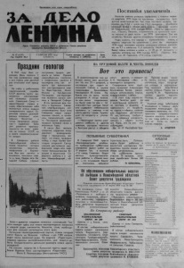 O p ra h С ев е р н о го р а й к о м а КПСС и р а й о н н о г о Совета депутатов • тру д ящ и х с я Н о в о с и б и р с к о й области № 42 (4237) 5 АПРЕЛЯ 1975 года Газета выходит п о в то рн и ка м , Год издания 40-й С У Б Б О Т А четвергам и субб отам Цена 2 ко п . П о с т а в к и увеличен!» Ко л х о з ы р а й о н а у с п е ш н о с п р а в и л и с ь с п л а н о м п е р в о г о к в а р т а л а 1 9 7 5 - г о д а п о п о с т а в к а м г о с у д а р с т в у п р о д у к т о в ж и в о т н о в о д с т в а . Та к , пла н п о с т а в о к м о л о к а в ы п о л н е н на 113,0 и м я с а — на 112,1 п р о ц е н т а - О с о б е н н о в е с о м ы й в к л а д в о б щ е е д е л о в н е с л и к о л х о з ы и м е н и М- Г о р ь к о г о , и м . X X I I с ъ е з д а К П С С , « П у т ь к к о м м у н и з м у » , « П а м я т ь Л е н и н а » , о т п р а в и в ш и е на п р и е м н ы е п у н к ты м о л о к а о т д в у х т ы с я ч д о 3 7 7 0 ц е н т н е р о в . Э ти ж е х о з я й с т в а б о л ь ш е д р у г и х о т п р а в и л и г о с у д а р с т в у и м я са - Н а д о с к а з а т ь , ч т о н а р я д у с в ы п о л н е н и е м п л а н а , в п е р в о м к в а р т а л е п о с р а в н е н и ю с э т и м ж е п е р и о д о м 1974 г о д а п о с т а в к и м о л о к а к о л х о з а м и р а й о н а у в е л и ч е ны на 9,7 и мяса:— на 11,4 п р о ц е н т а . Н а и б о л ь ш у ю п р и б а в к у с д а ч и м о л о к а и м я с а — о т 20 д о 61 п р о ц е н т а — с д е л а л и к о л х о з ы им- X X I I с ъ е з д а К П С С , « З а в е т ы И л ь ича», им . М Г о р ь к о г о , « 7 й с ъ е з д С о в е т о в » - Праздник В 1965 г о д у б ы л у ч р е ж д е н Д е н ь г е о л о г а - С т е х п о р р а з в е д ч и к и н е д р и вся с т р а н а у ж е д е с я т ы й ■ф р а з о т м е ч а ю т э т о т п р а з д ник - На с ч е т у у р а б о т н и к о в г е о л о г и ч е с к о й , с л у ж б ы СССР д е с я т к и т ы с я ч в ы я в л е н н ы х м е с т о р о ж д е ний п о л е з н ы х и с к о п а е м ы х . С о в е т с к и й С о ю з — е д и н с т в е н н а я с т р а н а в м и р е , о б е с п е ч и в ш а я с е б я п о л н о с т ь ю в с е м и в и д а м и м и н е р а л ь н о г о с ы р ь я . О г р о м н ы е з а п а с ы р а з н о о б р а з н ы х п о л е з н ы х и с к о п а е м ы х , б о г а т с т в о и м о щ ь п р и р о д н ы х р е с у р с о в — н а д е ж н а я б а з а д л я р а з в и т и я п р о м ы ш л е н н о с т и во в се х р а й о нах н е т о л ь к о ССС Р, н о и в с е г о с о ц и а л и с т и ч е с к о г о л а г е р я - В С е в е р н о м р а й о н е Н о в о с и б и р с к о й о б л а с т и т а к ж е т р у д я т с я с е г о д н я к о л л е к т и в ы г е о л о г о в , г е о ф и з и к о в и б у р о в и ко в - Все о н и з а н я т ы , в о с н о в н о м , п о и с к а м и н е ф ти и г а з а . Н е д р а ю г а З а п а д н о й С и б и р и с л о ж н о геологов п о с т р о е н ы , т р у д н о р а с к р ы т ь их т а й н ы . О д н а к о н о в о с и б и р с к и м г е о л о г а м и г е о ф и з и к а м у д а л о с ь в п о с л е д н и е п я т ь ле т о т к р ы т ь т р и п р о м ы ш л е н н ы х м е с т о р о ж д е н и я н е ф т и : В е р х Т а р с к о е , М а л о - И ч с к о е и Тай Д а с с к о е - П о с л е д н е е м е с т о р о ж д е н и е я в л я е т с я с а м ы м ю ж н ы м в З а п а д н о й С и б и р и - В эти в е с е н н и е д н и г е о л о г и и б у р о в и к и С е в е р н о й н е ф т е р а з в е д к и , с е й с м о р а з в е д ч и к и б а з ы села С е в е р н о е в е д у т н а п р я ж е н н ы е п о и с к и , в о с н о в н о м , п а л е о з о й с к о й н е ф ти. П о с л е д н и е з а в е р ш а ю т т р у д н ы й п о л е в о й с е з о н в в е р х о в ь я х Та ры . В к а н у н Д н я г е о л о г а с е в е р я н е с е р д е ч н о п о з д р а в л я ю т р а з в е д ч и к о в н е д р с п р а з д н и к о м , ж е л а ю т и м н о в ы х т р у д о в ы х п о б е д и е щ е б о л е е б л е с т я щ и х о т к р ы т и й - С е г о д н я ш н и е д о с т и ж е н и я р а з в е д ч и к о в н е д р — э т о н е ф т я н о е п р о м ы ш л е н 