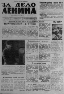 П ро л е та р и и всех стран, с о е д и н я й т е с ь ! ЗА . Д Е Л О О р г а н С е в е р н о г о р а й к о м а КПСС и р а й о н н о г о Совета депу татов т р у д я щ и х с я Н о в о с и б и р с к о й области № 46 ( 4 2 4 1 ) 15 А П Р Е Л Я 1975 года Газета вы х о д и т п о в т о р н и к а м , Цена Год и зд а ни я 40.Й В Т О Р Н И К ч е т в е р г а м и с у б б о т а м 2 к о п . Северному району-первое место Бюро Новосибирского об ком а КПСС, исполком областного Совета депутатов трудящихся и президиум обл- совпрофа подвели итоги социалистического соревнования районов области по увеличению производства и заго тово к продуктов животноводства в первом квартале 1975 года. ^ «*' В постановлении отмечено, что районы области пр о дали сверх плана 15,6 тысяч тонн молока, 2,8 тысячи тонн мяса и более 6 миллионов ш тук яицПобедителями в соревновании признаны: по Кулун- динской зоне — Баганский район; по Барабинской зоне — Северный район; по Центрально-Восточной зоне — Ко - лыванский районРайонам-победителям присуждены переходящие Красные знамена о б к ом а КПСС, облисполкома и обл- совпрофа. Т Р У Д О В А Я В А Х Т А В Ч Е С Т Ь 3 0 - л е т и я ВЕЛИКОЙ П О Б Е Д Ы П О Л У Г О Д О В О Й — К 9 М А Я Коллектив головного маслозавода успешно выполняет социалистические обязательства, принятые на 1975 год- Так, план первого квартала выполнен по всем показателям. Сливочного масла выработано 981 центнер- Это 122,6 процента к заданию- 650 центнеров сдано высшим сортом. Цельномолочной продукции при плане 550 произведено 697 центнеров- Значительно перекрыты планы по выработке казеина и творога. Валовой продукции предприятию надо было за первый квартал произвести на 330 тысяч рублей- Ф а ктич е ски ее произведено на 355 тысяч. Квартальный план реализации продукции выполнен на 109,4 процентаВ перевыполнении задания по выработке сливочного масла и повышении его качества — большая заслуга мастеров Валерия Павловича Петраченко и Петра Коростелева- На вывозке сливок с сепараторных отделений хорошо потрудились шоферы тт. Легачев и Хмелев- Яков Хмелев та к же вместе -с Василием Ивановичем Гордеевым перевыполняли нормы на доставке готовой продукции в го род По-ударном у поработали в молочном цехе старейшие работницы Татьяна Ма каро в на Никитина и Полина Егоровна Паршина. Их еж е д невная выработка составля ла 130-140 процентовСейчас коллектив маслозавода прилагает все усилия к тому, чтобы полугодовой план по выработке основной продукции — сливочного масла — выполнить ко дню Победы над гитлеровской Германией. Государству будет отправлено всего к празднику 2300 центнеров маслаБ. АЛЕКСЕЕВ Алексей Николаевич Сметанин в числе лучших м еханизаторов колхоза «Память Ленина»- Основная пр о фессия у него — тракторист. Однако с успехом он справляется и с работой комбайнера- Прошедший у б о рочный сезон для него был тринадцатым. После убор ки А- Н- Сметанина направили на ответственный участок — ремонтировать тракторные двигатели. Трактористы оценивают его работу на отличноНа снимке: А. Н- Сметанин включает очередной м о тор на приработкуМоханйзатор ы с д аю т э к з а мо н м ф П о с ле прох ож дени я с т о ч а с о - нон прогр аммы по повышению к л а с с н о с т и , экзам е ны от м е х а н и з а т о р о в к о л х о з а им. X X I I с ъ е з д а К П С С приняла а т т е с т а ционная комиссия. О б с т о я т е л ь н ы е , точные о т в е ты на вопросы по билетам и на д ополнительные вопросы д али Петр Х ар ит