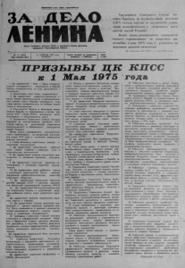1 Пролетарии все х стран, со единяй тесь ! Д Е Л О Трудящиеся Советского Союза! А к тивно боритесь з а осуществление решений X X IV с ъ е з д а партии, за дальнейшее у к р е п ление экономического и оборонного м о г у щества нашей Родины! Выше знамя всенародного социалисти- •ческого соревнования з а досрочное вы полнение плана 1 9 7 5 года и усп еш н ое заО р га н С е в е р н о г о райкома К П С С и р ай он но го С о в е т а деп утатов т р у д ящ и х с я Н ов о си би р с к ой области вершение девятой (И з П ризывов пятилетки! ЦК КПСС к 1 Мая 1976 года). № 47 (4242) Год издания 4 0 .й 17 АПРЕЛЯ 1975 года ЧЕТВЕРГ Г а зе та выходит по вторникам, ч е тв ер гам и су бб о там Цена 2 коп. П Р И З Ы В Ы Ц К К П С С к 1 М ая 1 9 7 5 г о д а 1- Д а з д р а в с т в у е т 1 М а я — Д е н ь м е ж д у н а р о д н о й с о л и д а р н о с т и т р у д я щ и х с я в б о р ь б е п р о т и в и м п е р и а л и з м а , за м и р , д е м о к р а т и ю и с о ц и а л и з м ! 2. П р о л е т а р и и в с е х с т р а н , с о е д и н я й т е с ь ! 3, Д а з д р а в с т в у е т м а р к с и з м - л е н и н и з м — в е ч н о ж и в о е р е в о л ю ц и о н н о е и н т е р н а ц и о н а л ь н о е у ч е н и е , з н а м я б о р ь б ы т р у д я щ и х с я в с е х с т р а н п р о т и в и м п е р и а л и з м а , за п о б е д у с о ц и а л и зм а и к о м м у н и з м а ! 4- К о м м у н и с т ы ! Б у д ь т е в а в а н г а р д е в с е н а р о д н о й б о р ь б ы за п р е т в о р е н и е в ж и з н ь р е ш ен ий X X I V с ъ е з д а К П С С , а к т и в н ы м и о р г а н и з а т о р а м и и в о с п и т а т е л я м и м а с с ! 5- Т р у д я щ и е с я С о в е т с к о г о С о ю з а ! А к т и в н о б о р и т е с ь за о с у щ е с т в л е н и е р е ш е н и й X X I V с ъ е з д а п а р т ии , з а д а л ь н е й ш е е у к р е п л е н и е э к о н о м и ч е с к о г о и о б о р о н н о г о м о г у щ е с т в а н а ш е й Ро д и ны ! В ы ш е з н а м я в с е н а р о д н о г о с о ц и а л и с т и ч е с к о г о с о р е в н о в а н и я з а д о с р о ч н о е в ы п о л н е ние п ла н а 1975 г о д а и у с п е ш н о е з а в е р ш е н и е д е в я т о й п я т и л е т к и ! 6- С л а в а в е л и к о м у с о в е т с к о м у н а р о д у — с т р о и т е л ю к о м м у н и з м а ! 7. Д а з д р а в с т в у е т г е р о и ч е с к и й р а б о ч и й к л а с с с т р а н ы С о в е т о в — в е д у щ а я с ил а в с т р о и т е л ь с т в е к о м м у н и з м а ! 8. Д а з д р а в с т в у е т с л а в н о е к о л х о з н о е к р е с т ь я н с т в о — а к ти в н ы й с т р о и т е л ь к о м м у н и зм а ! 9 Д а з д р а в с т в у е т с о в е т с к а я н а р о д н а я инт е л л и г е н ц и я — а к ти в н ы й с т р о и т е л ь к о м м у н и з м а ! 10 Д а з д р а в с т в у е т с о ю з р а б о ч е г о к л а с с а и к о л х о з н о г о к р е с т ь я н с т в а ! П у с т ь к р е п н е т н е р у ш и м о е и д е й н о - п о л и т и ч е с к о е е д и н с т в о с о в е т с к о г о о б щ е с т в а ! 11. Д а з д р а в с т в у е т н е р у ш и м а я б р а т с к а я д р у ж б а н а р о д о в С С С Р — в е л и к о е з а в о е в а ние л е н и н с к о й н а ц и о н а л ь н о й п о л и т и к и К П С С ! 12. Д а з д р а в с т в у е т К о м м у н и с т и ч е с к а я п а р ти я С о в е т с к о г о С о ю з а — и с п ы т а н н ы й а в а н г а р д р а б о ч е г о к л а с с а , в с е г о с о в е т с к о г о н а р о да! Д а з д р а в с т в у е т в е л и к о е н е р у ш и м о е е д и н с т в о п а р т и и и н а р о д а ! 13- Д а з д р а в с т в у ю т С о в е т ы д е п у т а т о в т р у д я щ и х с я — о р г а н ы п о д л и н н о н а р о д н о й в л а сти! П у с т ь р а з в и в а е т с я и к р е п н е т с о ц и а л и с т и ч е с к а я д е м о к р а т и я , ш и р и т с я у ч а с т и е т р у д я щ и х с я в у п р а в л е н и и г о с у д а р с т в о м ! 14- Г р а ж д а н е С о в е т с к о г о С о ю з а ! А к т и в н о у ч а с т в у й т е в и з б и р а т е л ь н о й кампании! И з б е р е м в В е р х о 