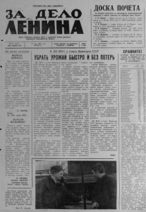 Пролетарий всех стран, соединяйтесь! Орган С е в е рно го райкома К П С С и районного Совета депутатов трудящихся Новосибирской области № 62 ( 4 2 5 7 ) 22 мая 1975 г о д а Газета выходит по вторникам, Цена Год издания 4 0 . й Ч Е Т В Е Р Г четвергам и субботам 2 коп. ДОСКА ПОЧЕТА За высокие показатели по производству животноводческой продукции в апреле занося тся на районную доску Почета : 3. И. Попова — доярка колхо за им. М. Горького, надоившая за 4 месяца 1 9 7 5 года по 1 0 8 3 килограмма молока н а корову. Н. Н. Б а л к и н а — доярка ко лхоза им. К . Маркса, надоившая по 1 0 7 1 килограмму молока на корову. Л. В . Шкарина — т е л я т н и ц а ко лхоза им. X X I I съезда К П С С , получивш ая су то чн ы й привес по 1 3 8 6 граммов на одного те л е н к а . М. Е . Дыдикова — т е л я т н и ц а из колхоза им. М. Горького, получившая суто ч н ы й привес по 1 2 1 0 граммов на одного т е л ен ка . П. Т . Сивакова — те л я т н и ц а из колхо за « П а м я т ь Л ени н а » , получивш ая су то чн ы й привес на каждого те л е н к а по 1 1 9 2 грамма. Па п о л я х к о л х о з о в ПЕРВАЯ БОРОЗДА В ЦК КПСС и Совете Министров СССР УБРАТЬ УРОЖАЙ БЫСТРО И БЕЗПОТРЕЬ Много лет наши земледельцы не помнят такой запоздалой, холодной и дождливой весны, к а к а я выдалась ны н че. Только седьмого мая гражда нцевский механизатор Петр Харитонович Павленко смог вы ве сти в поле свой К - 7 0 0 и проложить первую борозду. В это т же день опробовали пахо тные а гр е г а т ы Васи ли й Семенович. Аленни- ков и Иван Сергеевич Б а г ров. Но выпавший внезапно снег и прошедшие затем дожди нарушили все планы . Работу пришлось приостанов и т ь . За .созреванием почвы установлено наблюдение. При первой же возможности пахотные а гр е г а т ы снова вы й ду т в поле. В . Ш А У Р Н О . Колхоз им. X X I I съезда К П С С . НАЧАЛО . ПОЛОЖЕНО ' Первым в нашей 'бригаде сделал пробный выезд в поле на К - 7 0 0 старейший механиза тор Иван Ильич Ко вя - зин. Он и положил начало весновспашке. Нам требуется в с п а х а т ь под яровой клин всего сто ге к таров . О стальная площадь — зябь . Посоветовавшись , решили организовать д в у х сменную работу т я г а ч е й . Трактористов х в а т а е т . К а к подсохнет после дождя земля, включим в полевые работы К - 7 0 0 , два Т - 4 и . столько же « К а з а х с т а н ц е в » . В ночную смену все п я т ь тракторов буд у т п а х а т ь , а днем готовить землю под посев. С пахотной рассчитываем р а з дела ться са мое большое за три смены. То гда ос та н е т ся только подр аб аты в а т ь поля и следом, не д о п уская р азрыв а , с е я т ь . ' М. Ш Р Е Й Д Е Р , бригадир Забоевской * тракторной бригады. Колхо з « П а м я т ь Ленина» Д л я П е т р а Кирилловича Мо- сия в ич а ( н а снимке с л е в а Ц т р а к т о р и с т а к о л хо з а «7-й с ъ е з д С о ветов», нынеш няя в ес енняя п о с ев н а я б у д е т д в а д ц а т о й . Д а в н о у ж е г о то в его а г р е г а т выйти в поле, но он еще и еще раз о с м а т р и в а е т т р а к т о р и с е я л к у , д а е т последние у к а з а н и я с е я л ьщ и ку. Ф о то П. С м е л о в а . Ц К К П С С и Совет Министров СССР приняли Постановление «О мерах по обеспечению уборки урожая и заготовок сельскохоз я й с тв е н н ы х продуктов в 1 9 7 5 г о д у » . Постановление обязывает партийные и советские ор ганы, минис терс тва и ведомства, р у ко водителей колхозов, совхозов, з а го тови тельны х и тр ан сп о р тн ы х организаций обеспечить своевременную подготовку предприятий и х о з я й с тв к - э т о й , важнейшей ка мпании . В постановлении говори тся, в ч 