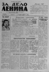 2 ЗА ДЕЛО Л Е НИНА . . . „ ....... ................ . 7 июня 1 9 7 5 года | «1ТП1111НШ111111111ПМШ1Н1Ш11||1Ш11ШШ1Ш1111111111ШШ111111Ш!Ш11Ш11111Ш1Ш1ШШ1Ш1111Ш11| 41m i l ........... . К а н д и д а т ы в депутаты р а й о н н о г о Совета Нраскопьи Нладимпропна К О Н Д Р А Т Ь Е В А Тимофеи Ф и линИ О Н И Ч АВЕРЬЯНОВ Станционный монтёр цеха № 4 ЭТУСа ка н д и д а т в д е п у т а т ы С е в е р н о г о р а й о н н о г о Сопата д е п у т а т о в т р у д я щ и х с я по З е л е н о м у и з б и р а т е л ь н о м у о к р у г у № 2 Прасковья Владимировна Кондратьева родилась в 1 95 2 году в деревне Мало-Карагаевка Бергульского. сельского Совета, Северного района. Окончила 10 классов Северной средней школы в 1 97 0 году и поступила учиться в Куйбышевское профтехучилище Л: 8, где получила специальность станционного монтера. При распределении II- В- Кондратьева; изъявила желание работать в своем родном районе, на новой АТС- Прасковья Владимировна хорошо освоилась с обязанностями, старается, как можно быстрее ликвидировать возникающие неисправности й обеГиочить устойчивую связь. Комсомолка И. В. Кондратьева активно участвует в жизни коллектива. Успешно выполняет обязанности общественного распространителя периодической печати, является к а з начеем цехкома профсоюза. Общим собранием коллектива' рабочих и служащих Северного районного узла связи Прасковья Владимировна Кондратьева выставлена кандидатом в депутаты Северного районного Совета депутатов трудящихся по Зеленому избирательному округу № 2. Товарищи избиратели! В день выборов -— 1 5 июня 1 9 7 5 года — все, к а к один, отдадим свои голоса за достойного нандидата народного блока коммунистов и беспартийных Прасковью Владимировну Кондратьеву! Слесарь „Сельхозтехники" ка н д и д а т и д е п у т а т ы С е и е р н о г о р а й о н н о г о Со ве^а д е п у т а т о в т р у д я щ и х с я по Чап а е в с к ому и з б и р а т е л ь н о м у о к р у г у № 16 Тимофей Филиппович Аверьянов родился в 1 95 0 году в д. Платоновна Северного района в . семье колхозника. После окончания 10 классов до призыва в ряды Советской Армии работал в колхозе им. К. Маркса- После увольнения из армии в запас поступил в Куйбышевское ГПТУ-8, получил специальность радиомеханика- По направлению училища некоторое время работал в Ордынском районе- В августе 1973 года вернулся в Северный район, поступил слесарем н районное объединение «Сельхозтехника». Гпмофей Филиппович проявил себя как добросовестный труженик, ежедневно перевыполняет сменную норму, работу сдает с хорошим качеством. Одновременно он является заочником третьего курса Куйбышевского сельхозтехникума. В коллективе Тимофей Филиппович пользуется заслуженным авторитетом. Товарищи избрали его членом рабочкома. Коммунисты «Сельхозтехники» рекомендовали кандидатом в члены КПСС. На общем собрании коллектива рабочих и служащих районного объединения «Сельхозтехника» т. Аверьянов единодушно назван кандидатом в депутаты Северного районного Совета депутатов трудящихся но Чапаевскому избирательному округу Л1» 10. Товарищи избиратели! В день выборов— 15 июня 1975 года— все, к а к один, отдадим свои голоса за достойного кандидата народного блока коммунистов и беспартийных Тимофея Филипповича Аверьянова! Накануне Приближается день выборов в Верховный Совет РСФСР и местные Советы депутатов трудящихся. Этот день трудящиеся встречают как большой праздник, к нему готовятся, ему посвящают свои трудовы