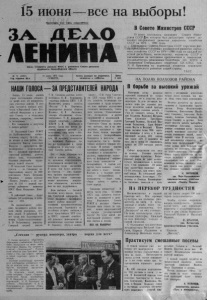 15 июня в с е на в ы б о р ы ! Про л е та ри и всех стран, соединимтесь! О р ган С е в е р н о г о р ай ко м а КПСС и р а й о н н о г о Совета де путатов т р у д я щ и х с я Н о в о с и б и р с к о й области № 72 (4267 ) 14 июня 1975 года Газета выходит по в торникам , Це на Год издания 4 0 . й СУББОТА ч е тв е р га м и с у б б о та м 2 коп. В Совете Министров СССР 10 июня с остоялось з а с еда ние Сове та Ми н и - стров СССР, ? на котором был ра с с мот ре н прое кт о с новных направлений развития народног о хоз яйства СССР на 1976 - 1980 годы. Пр е з иди у му Совета Министров СССР пор у че но р а с смотреть прое кт основных направлений развития н а р о д ного хоз яйства СССР на 1976—1980 годы по каждой с о юзной республике , министерству, ведомству С СС Р и высказ анные на з а с е да нии п р е д л оже н ия и з а ме ча ния , руководс тв уясь р еше ниями Политбюро ЦК КПСС и ука з ания ми Генеральног о с екре т а ря ЦК КПСС тов. Л. И. Бр е жн е в а по коренным вопросам социально- экономиче ског о ра з вития нашей страны. ■ ТАСС НА ПОЛЯХ КОЛХОЗОВ РАЙОНА НАШИ ГОЛОСА— ЗАПРЕДСТАВИТЕЛЕЙ НАОРДА Завтра, 15 июня, ранним утром гостеприимно откроются двери всех 24 избирательных участков района- В этот день состоятся выборы депутатов в Верховный Совет Российской Федерации и в местные Советы — в областные, краевые, городские, сельские и поселковые. Кто кандидаты в депутаты в нашем районе? В Верховный Совет РСФСР по Куйбышевскому избирательному округу .\» 516, куда входит и наш район, баллотируется Виктор Андреевич Филатов — председатель Новосибирского облисполкома.. Это — крупный партийный и советский работник, деятель нового типа, пользующийся большим уважением трудящихся нашей области. В областной Совет баллотируются — по Северному избирательному округу № 309 комсомолка Ольга Петровна Южанина — доярка колхоза «Память Ленина», а по округу А» 310 — первый секретарь районного комитета КПССИван Федорович Денисов. В районный Совет будет избрано 50 депутатов, в сельские — 320. На предвыборных собраниях трудящиеся района назвали имена передовых, лучших людей. В районный Совет среди них баллотируются шофер «Транссельхозтехники» В. И Бобровников, директор Северной средней школы Т- М. Сазонова, рабочая хлебокомбината В. И- Безроднова, секретарь райкома КПСС Г. И- Ивашкевич, доярка колхоза «Восход» Г- Ф. Бережная, председатель колхоза «Заветы Ильича» М. П- Ляхнович, слесарь объединения «Сельхозтехники» Т. Ф. Аверьянов, первый секретарь райкома ВЛКСМ А. И Коновалов и другие. Среди них почти половина рядовые рабочие и колхозники, одна треть — беспартийные, 8 — комсомольцев, 44 процента кандидатов — женщины. Примерно такое же соотношение и среди кандидатов в депутаты сельских Советов района. Это — люди, отдающие все силы и (знания общему, делу, активные общественники, пользующиеся авторитетом и уважением среди населения- 1 когда они будут депутатами Советов — этих подлинных органов народовластия— они будут также самоотверженно выполнять депутатские обязанности, возложенные на них трудящимися. День выборов — большой праздник всего народа, праздник Советской демократии- К этому празднику трудящиеся нашего района приходят с хорошими производственными показателями. Соревнуясь за достойную встречу выборов, в честь предстоящего XXV съезда КПСС, хороших показателей добились животноводы и механизаторы колхозов имени М Горького, «Пут