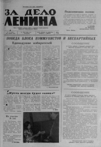 Пролетарии всех стран, соединяйтесь! Подсолнечник посеян По состоянию на 17 июня мы закончили плановый сев подсолнечника на силос. Посеяно 1 0 0 гектаров. Па посеве были заняты тр актористы Павел Антипов и Александр Симаев. Сейчас продолжаем размещать овес на зеленый корм. Сеют его Демьян Краснов, Ва силий Колупаев и Валерий Р а т ников- В последние дни каждый из них при норме 1 2 ,5 гектара засевает по 15 и более. Овсом на зелецку занято 173 гектара. В. БАРАНОВ, ' зав- Чебаковским производственным участком Колхоз «Восход» № 74 (4269) 20 июня 1975 года Газета выходит по вторникам, Цена Год издания 40 .й ПЯТНИЦА четвергам и субботам 2 коп. П О Б Е Д А Б Л О К А К О М М У Н И С Т О В И Б Е С П А Р Т И Й Н Ы Х Е д и н о д у ш и е и з б и р а т е л е й Шесть часов утра. На 136 избирательном участке по выбо рам в Шрховиый Совет РСФСР и м е с я ц е Советы деп утато в трудящихся все готово к голосованию. В эти минуты сюда п о дошло уж е несколько человек. Одним из первых получае т бюллетени ветеран войны, бывший гвардеец, ка валер ордена К р а с ного Знамени и нескольких медалей з а боевые и трудовые заслуги Василий Иванович Агрызков. — Я голосую за верных сы новей и дочерей н арода ,— го-, ворит он.— Надеюсь, что наши ув аж а емы е кандидаты оправдают высокое доверие, которое мы им оказываем. Вот к избирательной урне п од ходит пенсионерка Мария Михайловна Ж д ан о в а . Ей вспоминаются далекие уже , самые пер вые выборы. — В 1937 году это было,— р а с сказывает женщина.— С туденткой я была, училась в Л ен и н г р а де. Помню, за композитора — Д м и т р и я Дмитриевича Ш остак о вича голосов ала. На встрече с нами, студентами, он свои про изведения играл... И сейчас о т даю свой голос з а достойных лю дей, тружеников, передовиков производства. А народ все идет и идет. Семьями, в одиночку, с друзьями, подругами. Перед столом комиссии з авуч Северной средней школы Иван Никифорович Пинчуков. — Накануне я с вниманием слушал яркую речь Леонида Ильича Брежнева . В ней мне хо телось бы выделить основные темы: з а б о т а о мире д л я всех пародов, з а б о т а о б лагосостоянии советских людей и, что особенно важно , к а к мне показа лось, остро поставлен вопрос о д а л ь нейшем развитии бла госостояния сельских жителей. Д л я нас, сельчан, это самое главное. Голосуют супруги Тимкины. Николай—шофер «Транссельхоз- техиики», Маша — будущий фельдшер. Сейчас она па п ракти ке в районной больнице. Опускают бюллетени Муж и ж ена Черные. Николай Максимович тр ак торист колхоза имени XXII съ езда КПСС, М ари я Пар - феновна — санитарка больницы. Сегодня, в 'день выборов в Верховный Совет РСФСР и местные Советы депутатов т р у д ящ и х ся, мы отдаем свои голоса за лучших сынов и дочерей нашей Родины. Я голосую з а нашу Советскую Родину, за мир па зем- $е. Мне, как и моим товарищам но работе, отрадно встречать день выборов. К этому в сен арод ному празднику я подошел с неплохими показателям и в труде. Еще в октябре 1974 года сп р а вился со своим пятилетним п л а ном. К 30-летию Победы в В еликой Отечественной войне брал обязательство выполнить полугодовой план, Слово с д е рж а л . Р а с считываю годовой план выполнить к седьмому ноября — годовщине Великой Октябрьской социалистической революции. Это — сл ова известного т о к а ря «Сельхозтехники» ударника коммунистического т р у д а Ивана Александровича Кайгородова. В фойе Д о м а культуры идет голосов