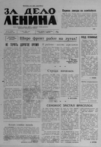 Пролетарии всех стран, соединяйтесь! Д Е Л О О р г а н С е в е р н о г о р а й к о м а К П С С и р а й о н н о г о С о в е т а д е п у т а т о в т р у д я щ и х с я Н о в о с и б и р с к о й о б л а с т и Первые звезды на к о м б а й н а х Ниев. На нивах У кр аи ны ширитс я социалистическое соревнование механизаторов за лучшее использование техники , проведение уборки зерновых скоростными методами и без потерь. Страда называет первых героев « ж а т в ы - 75» , на комбайнах которых уже появилось по т р и— четыре красные звездочки: каждая из н и х означает ты с я ч у центнеров намолоченного зерна. В колхозе «Дружба народов» Крымской области комбайнер М. В. Боденко вместе с помощником — сыном Юрием за 2 0 часов работы комбайном «Колос» намолотил с 27 гектаров 1 1 8 0 центнеров зерна. Всего же на счету передового механизатора 4 0 5 0 центнеров намолоченного хлеба. ТА С С Ле 81 (4276) 5 июля 1975 года Г а з е т а в ы х о д и т п о в т о р н и к а м , Ц е н а Год издания 40-й СУББОТА ч е т в е р г а м и с у б б о т а м 2 к о п . МЕСЯЧНИК ПО ЗАГОТОВКЕ КОРМОВ Ш и р е ф р о н т р а б от на л у г а х ! НЕ ТЕРЯТЬ ДОРОГОЕ ВРЕМЯ В р а б о т е— шесть агрегатов У тружеников колхозов района на сту пила ответственная к а м пания — сенокос. На заготовку сена, да и др уги х кормов, в наших условиях времени очень мало. Каждому механизатору и работнику полеводства должно быть ясно, что главное сейчас— k не у п у с т и т ь сроки, использовать хорошую погоду для быстрого и организованного накопления витаминного сена и закладки сенажа из естественных и сеяных трав. В выигрыше останется тот, кто не опоздает, ш и роким фронтом развернет в период ударною) месячника сеноуборочные работы и заготовит для общественного „ скота не меньше 8 0 — 8 5 процентов грубых кормов от общей потребности. Первыми вывели сенокосилки на естественные угодья .и сеяные травы механизаторы колхоза Аим. М. Горького, которые уже 30 июня начали скирдовать сено. На сегодня здесь заскирдовано около полутора тысяч центнеров. Организованно включились в сенокос два механизированных звена в колхозе «Восход». По состоянию на 2 июля они скосили на Российском болоте 3 4 0 гектаров сеяных трав. После чего 12 агрегатов начали косовицу естественного травостоя. 1 июля перебросили сеноуборочную т е хни ку на Потюканов- ские л у га в колхозе «П уть к коммунизму». В Кордоновской бригаде этого хозяйства на неудобных местах организовали ко сови цу трав вручную. П устили в работу шесть сенокосильных аг регатов в колхозе «Заветы И л ь и ча», косят травы в колхозе имени X X I I съезда КПСС. К сожалению, так по ступили не везде. Непростительную медлительность и нера'зворотливость допускают в колхозе им. Карла' Маркса. Самоуспокоенность р у ководителей и специалистов пр и вела к тому, что здесь оказались перед фактом неподготовленности к сенокосу. В с я к и м и отговорками пы таются оправдать свою неповоротливость и в ряде других колхо зов. Например, в колхозах «Борьба за мир» и «7-ой съезд Советов». • У п у с к а т ь благоприятное время — значит заведомо ставить под угрозу срыва планы по накоплению кормов, обрекать животноводство на голодную зимовку. Допусти ть этого ни в коем случае нельзя. Надо принять все меры для того, чтобы развернуть сенокоч шение повсеместно. Важно вклю чить в работу не только всю технику , но и поставить дело так, чтобы высокопроизводительно использовалась каждая машина. В райо