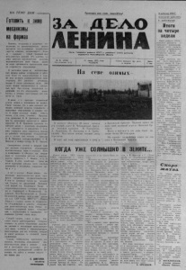 31 июля 19 75 года ЗА ДЕЛО ЛЕНИНА 3 т*ш1ш1 1мш11 1Ш11 11 1М1 11М11нш1111М11Ш11И1Ш11Ш1!Ш111111И1Ш1ШШ1М1П11Н1Ш11НШ1Ш1ИП' mi i i i i i mt i i i nn i i i i i t HHmt nnt mnt m»wn>iwmwwwwHii« m nw w ww w i «*мм11»и»м»»ииим1Н»шмш* В ы с о к и м и т р у д о в ы м и п о к а з а т е л я м и р е ш и л в с т р е т и т ь о ч е р е д н о й XXV с ъ е з д К П С С к о л л е к т и в с т о л я р н о г о ц е х а м е ж к о л х о з н о й с т р о и т е л ь н о й о р г а н и з а ц и и . В с о ц и а л и с т и ч е с к и х о б я з а т е л ь с т в а х е г о с к а з а н о : « Д а т ь с в е р х п л а н а р а з л и ч н о й п р о д у к ц и и п а т ы с я ч у р у б л е й . В ы п о л н и т ь г о д о в о й п л а н к 27 д е к а б р я » . Ц е х о м р у к о в о д и т д е п у т а т р а й о н н о г о С о в е т а И в а н Ф е д о р о в и ч И в а н о в ( н а с н и м к е — ‘в ц е н т р е ) . Б л а г о д а р я с п л о ч е н н о с т и к о л л е к т и в а , ч е т к о й о р г а н и з а ц и и т р у д а , в ы с о к о й к в а л и ф и к а ц и и т е к о н т р о л ь н ы е ц и ф р ы , к о т о р ы е о п р е д е л е н ы п р е д с ъ е з д о в с к и м и о б я з а т е л ь с т в а м и , з н а ч и т е л ь н о п е р е в ы п о л н е н ы . Н а с н и м к е : к о л л е к т и в с т о л я р н о г о ц е х а М С О . Ф о т о И . С м е л о в а . НА ДОСТИГНУТОМ НЕ ОСТАНОВИМСЯ Дал слово -сдержи! ВО ГЛАВЕ СОРЕВНОВАНИЯ Когда приезжают в колхозы р айона трактористы из машинно- мелиорати вного отряда , поля с тановятся чшце и плодороднее. Только в нынешнем году механизато ры провели химическую прополку на сотнях; ты сячах г е к т а рах в ко лхозах «Путь к коммунизму», имени К. Маркса,^ имени XXII с ъ е з д а КПСС, «Борьба з а мир». Тысячи топи органических и минеральных удобрений вывезено на поля. И это все сделано звеньями комсомольца Тимофея Ив анов а и Н. С Коржова. По сути, они выполняют одну и ту же работу: если сегодня звено Тимофея об р а б а ты в а е т посевы ядохимикатами , то в о зм ож но з ав тр а это будут д е л а т ь и корж овцы. Единство цели и определило общий настрой в со циалистическом соревновании, нашло отраж ен ие в принятых о бязате льс тва х . Р оди лась и о б щая цель: добиться досрочного выполнения пятилетпего плана, повышения . производит ельности т руда и улучшения эксплуатации доверенной техники. Коллективы звеньев успешно берут намеченные . рубежи. Е ж е дневная выра ботк а каж д о го мех ан и з ато р а составляет 120—130 процентов в среднем. Порою же нормы перекрываю тс я в д в а —три раза . Во главе соре внов ания идут сами звеньевые. Оба -работают уж е в. счет 1976 года. Гимофей Иванов , к а к передовик произв одства и активный комсомолец получил почетное право одним из первых в районе обмен ять к ом сомольский билет. .Сейчас в .машинно -мелиоративном о тряде со зд ае тся комсомольское звено, и в о з гл ав ля ть его будет он, передовик социалистического соревнования , молодой механиза тор Тимофей И в а нов. На снимках: звеньевые ММО Т. Иван ов и Н. С. Коржов. Фото Щ, Смел ова Д о ' недавнего времени*, наш леспромхоз выполнял небольшой объем работ. При этом .за д ан и я по за готовке около десяти- тысяч кубометров д е ловой древесины часто не выполнялись, Не справлялось предприятие и с распиловкой леса. Отсюда срывались п ланы реализа ции товарной продукции. Б л а г о д а р я повседневной заб оте нашей партии и советского государства , с каж дым годом укрепляется м а т е р и а л ь но-техническая база леспром хозов, в том числе и нашего: Только з а последнее время мы получили более десяти новейших трак торов, в том числе три К-700, несколько мотопил « Д р у ж б а -4 » , разные погрузчики, две новых п