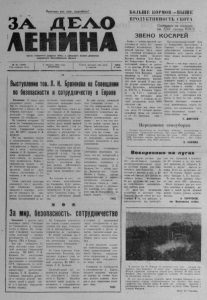 Пролетарии всех стран, соединяйтесь! О р га н С е в е р н о г о р ай ко м а КПСС и р а й о н н о г о Совета депутатов т р у д я щ и х с я Н о в о с и б и р с к о й области № 93 (4288) 5 а в г у с т а 1975 года Газ е т а выходит три ра з а Ц е н а Год из да ния 41-й В Т О Р Н И К в неделю 2 к о п . Выступление тов. Л. И. Брежнева на Совещании по безопасности и сотрудничеству в Ервоеп Хельсинки. 31 июля здесь продолжало работу совещание по безопасности и сотрудничеству в Европе. На Совещании выступают главы делегаций — высшие руководители 35 государств. На утреннем заседании 31 июля на Совещании выступил главаделегации Советского Союза Генеральный секретарь ЦК КПСС товарищ Л И. Брежнев. Все' мы, принимая участие в заключительном этапе Совещания по безопасности и сотрудничеству в Европе, заявил в своем выступлении товарищ Л. И. Брежнев, ощущаем необычный характер этого события, его политическуюмасштабность. Можно с уверенностью сказать — это же чувствуют миллионы и миллионы людей-во всех Странах, участвующих в Совещании, и не только в этих странахГлава советской делегации подчеркнул, что с резул ьтатами Совещания связаны ожидания и надежды, которые не порождала ни одна другая коллективная акция в период, последовавший за и з вестными совместными союзническими решениями послевоенного времени. Советский Союз, сказал далее товарищ Л. И. Брежнев, рассматривает результаты Совещания не просто как- подведение необходимого ’ политического итога второй мировой войны. Это вместе с тем осмысливание будущего применительно к реальностям сегодняшнего дня и многовекового опыта европейских народов. Особое политическое значение и моральная сила достигнутых на Совещании договоренностей в том, что они будут скреплены подписями высших руководителей государств — участников- Придать полную действенность этим договоренностям — это наша общая важнейшая задача. Мы исходим из того, что все страны, представленные на Совещании, будут претворять в ’жизнь достигнутые договоренности. В том, что к а сается Советского Союза, tfo он будет действовать именно так, На наш взгляд, суммарный итог Совещания состоит в том. что международная разрядка во все большем объеме наполняется конкретным материальным содержанием. Именно материализация разрядки — вот в чем суть всего, что должно сделать мир в Европе действительно прочным и незыблемым. И во главу угла мы ставим при этом задачу прекращения гонки вооружений, достижения реальных результатов в деле РазоруженияРезультаты состоявшихся длительных переговоров таковы, что нет победителей и побежденных, приобретших и потерявших, подчеркнул в - заключение товарищ Л. И. Брежнев. Это — победа разума. Выиграли все: страны Востока и Запада, народы социалистических и капиталистических государств — участников союзов и нейтральных, малых и крупных. Это выигрыш всех, кому дороги мир и безопасность на нашей планете. . ТАСС # За мир, безопасность, сотрудничество Х ельсинки. 1 августа здесь завершило работу Совещание по безопасности и сотрудничеству в Европе. На заседаниях Совещания выступили главы делегаций — высшие руководители 35 государств Европы, США и Канады. Как уже сообщалось, 31 июля выступил глава советской делегации Генеральный секретарь ЦК КПСС Л- И. Брежнев. Это выступление (транслировалось -всеми радиостанциями и телецентрами СССР, передавалос