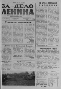 КрбЛётарйи всех стран, соединяйтесь! З А Д Е Л О Орган С ев е рно го райкома К П С С и районного Совета депутатов трудящихс я Новосибирской области № 95.90 (4290-91) Год издани я 41-й 9 августа- 1975 года СУББОТА Г аз е та выходит три р а з а в неделю Цена 2 коп С п л а н о м с п р а в ш ж с м Нашей бригаде по п л а ну надо заготовить пять тысяч центнеров сена. На первое августа з а с кирдовали более трех тысяч. На тысячу центнеров имеется скошенной травы. Сейчас кроме колесных тракторов с косилками КС-2,1 на свал будут работать еще два самоходных комб айна с навесной жаткой ЖВН- 6. Если погода не даст собрать на сено, то эти валки после к омб айнов будем собирать и з а к л а дыв а т ь на сенаж. На комбайнах будут р а ботать опытные механизаторы Семен Иванов и Николай Шевченко. С первого дня сеноуборки замечательно трудятся механизаторы Петр Григорьевич Ар- манчев, Василий Ле он тьевич Архипов. Они ежедневно перевыполняют дневную норму. А вот Николай Урсаев тоже был направлен на косовицу на тракторе МТЗ-50, но к работе от носился спустя рукава. В хорошую погоду пропьянствовал шесть дней. Пришлось его лишить работы на тракторе. Стара тельно трудится на покосе Александр Григорьевич Асанов. Он на тракторе Т-40 с боковыми г раблями вы полняет по полторы нормы в день. Не отстает от, него Василий В а сильевич Брицев. На копнообразователях хорошо управляются с д е лом Александр Тимофеевич Михайлов и Николай Степанович Кириллов. На стогомете вот уже несколько сезонов работает Юрий Александрович Гайдуков. Нынче он сметал более 2,5 тысячи центнеров сена. В первой декаде а в г уста план выполним и будем вести сверхплановую заготовку сена. П. МАМАКОВ, бригадир Ичкалинской бригады колхоз а им. К. Маркса. Д е л а и лю д и Витинбригады ОБ ИТОГАХ СОВЕЩАНИЙ В Х Е Л Ь С И Н К И Политбюро ЦК КПСС, Президиум Верховного Совета С С С Р и Совет Министров СССР , рассмотрев итоги Совещании по безопасности и сотрудничеству в Европе, отметили, что эта беспрецедентная в истории встреча руководящих деятелей 33 европей ских государств, СШ А и Канады стала событием огромного международного значения. Она положила начало новому .этапу разрядки напряженности. явилась важным шагом на пути закрепления принципов мирного сосущес твования и налаживания отношений равноправного сотрудничества между государствами с различным общественным строем. Оценивая результаты Совещания, Политбюро ЦК КП С С , Президиум Верховного Совета С С С Р и Совет Министров С С С Р подчеркнули в этом документе в ы дающийся вклад Леонида Ильича Брежнева в осуществлении внешнеполитического к ур са Ком мунистической партии и Советского государства, в выработку, и реализацию Программы мира, что сыграло огромную роль в деле достижения разрядки напряженности. Его целеустремленная и движимая не устанной заботой о мире на 'земле деятельность имела важное значение для созыва и у спеха общеевропейского Совещания. Наша партия, советский народ высоко ценят эту активную самоотверженную деятельность и выраж аю т ' полное одобрение в ы ст у пл е ни я Л. й , Брежнева на Совещании в Х е л ь синки. В заключение документа говорится: Политбюро ' Ц К - КП С С , Президиум Верховного Совета СССР , Совет М инистров С С С Р обращают внимание Всех парти й ны х и советских организаций , всех со ветских людей на то, что закрепление и развитие разрядки на европейском