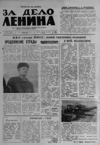 П р ол е т ар ии всех с тр а н , соединяйтесь! О р г а к С е в е р н о г о р айком а КПСС и р а й о н н о г о Совета депутатов тр у д ящ и х с я Н о в о с и б и р с к о й обпасти № 118 (4313) 30 сентября 1975 года Газета выходит три раза й ВТОРНИК в неделю Цена 2 коп . ПРИЁМ ТОВАРИЩЕМ Л . И. Б РЕЖ НЕВЫМ ВЕТЕРАНОВ СТАХАНОВСКОГО Д В И Ж Е Н И Я Генеральный секретарь Ц К КПСС товарищ Л , И . Брежнев принял в Кремле группу зачинателей стахановского д вижения в стране. Л ео н ид Ильич тепло поздравил их со знаменательной д а т о й 40-летия стахановского движения . Трудовой подвиг стахановцев , сказал товарищ Л . 'И. Брежнев, высоко ценят советский н а р о д . Коммунистическая партия. Товарищ Л . И; Б режнев д а л е е отметил важное значение стахановских традиций для развития массового социалистического соревнования, для воспитания м олодой смены рабочего класса. Ныне в нашей стране миллионы людей участвуют в соревн ова нии в движении за коммунистическое отношение к труду. Товарищ Л. И. Брежнев рассказал участникам встречи, над какими вопросами р абот ает Центральный Комитет партии в п р е д дверии XXV с ъ е з д а КПСС. Ветераны стахановского движения горячо поблагодарили Центральный Комитет партии, лично Л е о н и д а Ильича Брежнева за большое внимание к ним, з а повседневную з а б о т у о повышении благосостояния советских лю дей , з а н еутомимую д ея т ел ь ность на бл аго мира и процветания нашей Родины, X X V съеажтгК П С С н а ш и ------------------------------------------ * ---------------------------------: ' ~ ПРОДОЛЖЕНИЕ СТРАДЫ Позолотила осень березы, надвинула на небеса серый холст ^ л а к о в , то и дело посылает на * .дю холодный дождь. Земля уже давно промокла, не принимает влагу, а на нее все льет и льет. В таких условиях об уборке зерновых и мечтать не приходи тся. Разве только вести закладку силоса. Под него пущены посевы однолетних трав, и сейчас мехаНе хотелось останавливать аг регат, да пришлось. Пять минут остановки7"Короткий разговор с трактористом, шофером, и снова ушли машины в даль. Оказалось, что Иван Захарович лишь перед обедом. то есть ч а са в два дня, подключился в общую работу. До этого он убирал силосные на полях Веселовской полеводческой бргады. Там им вместе с другими комбайнерами низаторы колхоза «Путь к коммунизму» Е. Л- Дроздов, А- В. Соболев, И. 3. Харитонов, В. ЛИванов ведут комбайны по полям, засеянным горохо-овсяной смесьюДень клонился к концу, когда от агрегата, которым управлял Иван Захарович Харитонов отошла очередная автомашина, наполненная тяжелой зеленой массой. Тут же под рукав транспортера подошла д р у г а я . ' Вновь мотор трактора загудел натужно, басовитобыли убраны силосные J, площади 2 7 0 гектаров. Счет убранных гектаров еще не закрыт: — Работаем допоздна. Со временем не считаемся,— рассказывал И. 3. Харитонов. Да это понятно: время торопит- В колхозе уже заложено более 9 4 0 0 тонн силоса. Только для Биазинской фермы три бурта. В одном — около двух с половиной тысяч тонн, два других, пожалуй, не меньше- Здесь работают трактористы Иван Прокопьевич Евдокимов и Алексей Константинович Лукьянов. — Когда работа ладится, времени для перекуров не остается: автомашины с силосной массой подходят через каждые пять — десять минут,— говорит И. П. Евдокимов. — Сегодня хотя и нагрузка меньше, но отдыхать не приходится,— добавляет второй тракторист.— Шоферы хорошо работают. Шоферов здесь семеро из десяти, п