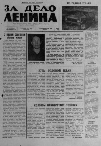 Иропетарии всех стран, соединяй тесь! з л Д Е Л О ПО РОДНОЙ С Т Р А Н Е О р ган Северного райкома К П С С и районного С о ве т а д е п у та то в тр у д ящ и х ся Новосибирской облас ти № 138 (4333) 13 ноября 1975 года ’ Г а з е т а выходит три раза Цена Год издания 41-й I В Т О Р Н И К в неделю 2 коп. О нашем советском образе жизни Се го д н я , н а к а н у н е X X V с ъ е з д а , К П С С , вы дающиеся у с п е х и н ашей с тр а н ы в обл а с т и р а з в и т и я экономического и д у х о в ного по те нци а л а на фойе г л у б о к и х к р и з и с н ы х я в л е н и й , о х в а т ы в аю щ и х эконом и к у , п о л и т и к у , к у л ь т у р у бу ржу азно го общ е с т в а , вновь убедительно с в и д е т е л ь с т вуют- о п р е и м у щ е с т в а х соци али зм а , н е и с черпаемых во зм ож н о с тя х , которы е он о т к р ы в а е т ч е л о в е ч е с тв у . В э т и х у с л о в и я х пропага нда советского образа жи зн и я в л я е т с я вы сокой и почетной миссией Лекто ров общества « З н а н и е » . И вс е лее о преим у щ е с т в а х и в е л и ч а й ш и х з а в о е в а н и я х сове тского народа л ек ц и й ч и т а е т с я недоста точно Сейчас первичным организациям общес т в а « З н а н и е » необходимо организова ть чтение ц и к л а лек ц и й « С о в е т с к и й образ ж изн и» - Об этом все л ек т о р ы района уж е знаю т и в ряде п е р в и ч ны х органи заци й многое сделано п р а к т и ч е с к и Н апример, в Б и а з и н с к о й органи заци и разработаны л ек ц и и из этого ц и к л а н а 12 тем- Л е кци и пр о читаны на собраниях лекторов — р а ботников средней и с п ециа льно й ш ко л . Через некоторое время лекции б у д у т ч и т а т ь с я перед населением . Из ц и к л а « С о в е т с к и й образ ж и з н и » разработано и прос л уш а но несколько лек ц и й и бесед в к о л л ек т и в е у ч и т е л е й Ново-Троицкой средней ш к о л ы . После э то гв л ек т о р ы б у д у т в ы с т у п а т ь в к о л л е к т и в а х животноводов, м е х а ни заторов и т . д. Необходимо, чтобы во в с е х п е р в и ч ны х о р г а н и з а ц и я х общества « З н а н и е » по ц и к л у « С о в е т с к и й образ ж и з н и » были р а з работаны л е к ц и и , примерно, по т а к и м т е мам: х а р а к т е р н ы е ч е р ты с о ц и а л и с т и ч е с к о г о образа ж и з н и ; разви тое с о ц и а л и с т и ч е с к о е общество и к омм ун и с ти ч е ск о е воспи- Г т а н и е ; социально-экономические проблемы соц и а л и ст и ч е ск о го образа ж и з н и ; т р у д и трудовое в о с п и т а н и е ; правовы е и н р а в с т венны е а с п е к т ы со ц и а л и с т и ч е с к о го образа ж и з н и ; с е м ь я , б ы т , свободное в р ем я ; к р и т и к а б у р ж у а з н ы х и р е в и з и о н и с т с к и х ф а л ь с и ф и к ац и й с о ц и а л и с т и ч е с к о го образа ж и з н и и др у ги м . Л у ч ш е , если определенна я г р у п п а лекторов буде т с п е ц и а л и з и р о в а т ь с я по э тим проблемам- .Но д л я у л у ч ш е н и я лекционной пропаг анды вообще и по т е м а т и к е сов е т ско го образа ж и з н и , в ч а с т н о с т и , должно бы ть обязательное единое планирование- В а ж но, ч тоб ы к а ж д ы й лектор з н а л заранее т ем у своего в ы с т у п л е н и я , ау ди то рию и время в ы с т у п л е н и я - В свою очередь с л у ш а т е л и т а к ж е заранее д о л ж н ы б ы т ь о св е домлены о з ап л а н и р о в а н н ы х в и х к о л л е к т и ве и ли сел ь ском Доме к у л ь т у р ы л е к ц и я х , д о к л а д а х , беседах и м а с с о в ы х мероп р и я т и я х . С этой целью п л ан лекционной п р о п аган ды надо в ы в е ш и в а т ь в к р а с н ы х у г о л к а х на фермах , в м а с т е р с к и х , клуб ах - Л е к ц и о н н а я пропаганда — большое и очень важное дело. И оно по 