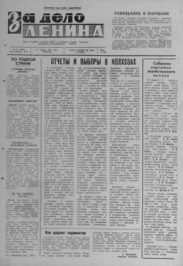 П ролетарии всех с т р а н , соединяйтесь ! Орган Северного р айком а КПСС и районного Совета депутатов тр удящихся Новосибирской области № 14 (4365) 31 ян в ар я 1976 года Газета выходит три раза Цена Год издания 41-й СУББОТА в неделю 2 коп СОВЕЩАНИЕ В В А РШ А В Е 26 января в В аршаве состоялось очередное совещ ание секретарей Центр альных Комитетов коммунистических и р а бочих партий социалистических стран по м еж дуна родны м и идеологическим вопросам. Совещание открыл член Политбюро , се кретарь ЦКПОРГ1 Я. Шидляк . Н а совещании выступили;' от Б К П — А. Л и лов, от В С Р П — М, О в ар и , от С Е П Г — К. Хагер, от КП Кубы — Р. Гарсиа Пелаес, от М Н Р — Д . Чим и д до рж , от ПО РП — Я. Шидляк, от Р К П — Ш. Андрей, от КПСС — Б , Н. Пономарев, от КПЧ — И , Гав лин, Участники совещания обменялись мнениями об а к т у а л ь ных вопросах идейно _ политической раб о ты с учетом пр о б лем современного этапа борьбы з а углубление р а з р я д к и м е ж дународной напряженности, итогов сющеевропейского совещания государств. ВЫБОРЫ В КОЛХОЗАХ ПО РОДНОЙ С ТР АН Е СТАЛЬНЫЕ МУСКУЛЫ „КИРОВЦА" Елец. (Липецкая обла сть ). П ервая партия пидроцилиндров с повышенным сроком службы ) д ля т рак торов K-7Q1 отп рав лен а в Ленинград с з а в о д а т р а к то р ных гидроагрегатов. Эти механизмы применяются для управления машиной, приводят в действие различные прицепные агре гаты, Моторесурс цилиндров увеличен с пяти до восьми тысяч часов, ОБНОВЛЕННЫЕ „РЕКОРДЫ" Воронеж, К аждую минуту с конвейера з-авода «Электросигнал» сейчас сходят три телеви зора — па два больше, чем в первом году девятой пятилетки . Предприятие, к а к и п редусма т ривалось социалистическими обязательствами в честь XXV съезда КПСС, полностью перешло на серийный выпуск новых «Рекордов» моделей «В-308» п «В-310», удостоенных Государственного знака качества. Они отличаются увеличенной д а л ьн о стью приема, улучшенным изо бражением и чистотой з в у к а , меньше потребляют энергии. ПРЕДПОЧТЕНИЕ - УРОЖАЙНЫМ ГИБРИДАМ Д непроп етров ск . Селекционный центр по. самой вы с окоурож ай ной культуре — кукурузе создан при Всесоюзном НИИ ку к урузы - Ученым предстоит преж де всего со зд ать новые ги бри ды , способные д а в а т ь в различных поч- венно - климатических условиях высокие урож аи зерна и силосной массы. З а д е л обеспечен неплохой: з а годы ' девятой пятилетки выведено и передано на государственные испытания 18 гибридов. Сейчас на опытных полях центра «в работе» находится 500 новых гибридов, а в течение года их число достигнет 800. Из них будут тщательно выбирать ся лучшие, персп ективные сорта , НА ЧТО СПОСОБЕН ГЕКТАР? Р я з ан ь 338 рублей и 19 р у б лей. Первое число — столько продукции д а л в минувшем году каждый мелиорированный гектар в совхозе «Макеевский?) в Клепиковском районе. Второе — такой была «урожайность» здешних заболоченных торфяни ков в начале минувшего п яти л етия. Совхоз — хозяйство рас тущее . Здес ь стали получать до 30 центнеров зерн а с г е к т а р а . По д в а—три укоса даю т многолетние сеяные травы. Большое с т а до полностью обеспечено корм ами. Все это — р езу л ь тат освоения зем ел ь. В совхозе уже надежно «р аб отают» 2200 гектаров полей, культурных пастбищ и сенокосов. Д ей ств у ет первая очередь одной из крупнейших в Нечерноземье мелиоративных систем «Большая Пра », По сообщениям корр, ТАСС, ОТЧЕТЫ И В соответствии с Уставом, в февр